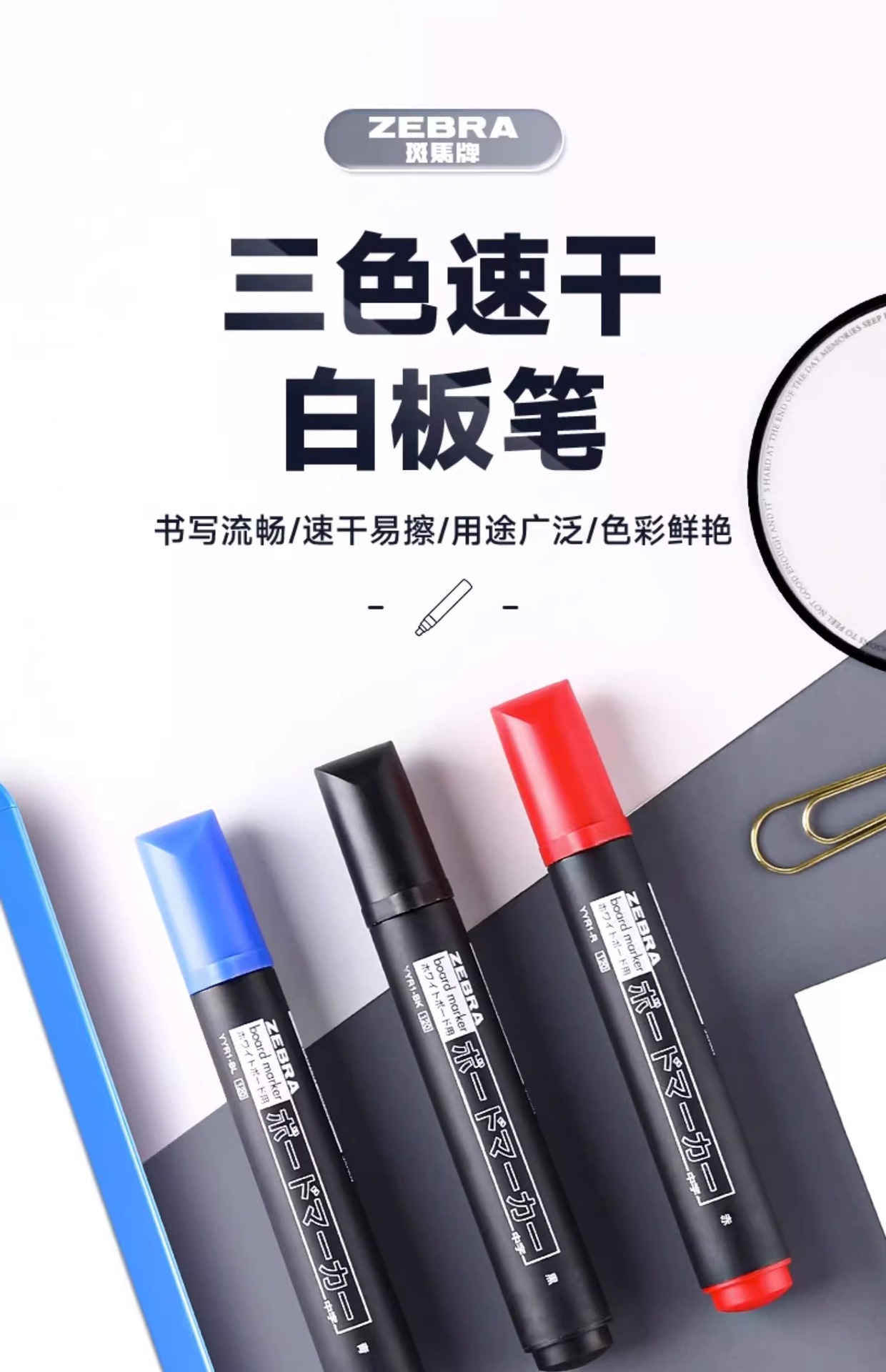 Japón ZEBRA marca Zebra lápiz de pizarra de secado rápido YYR1 lápiz de pizarra grande caracteres borrables reunión de oficina