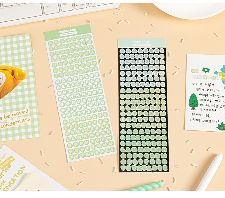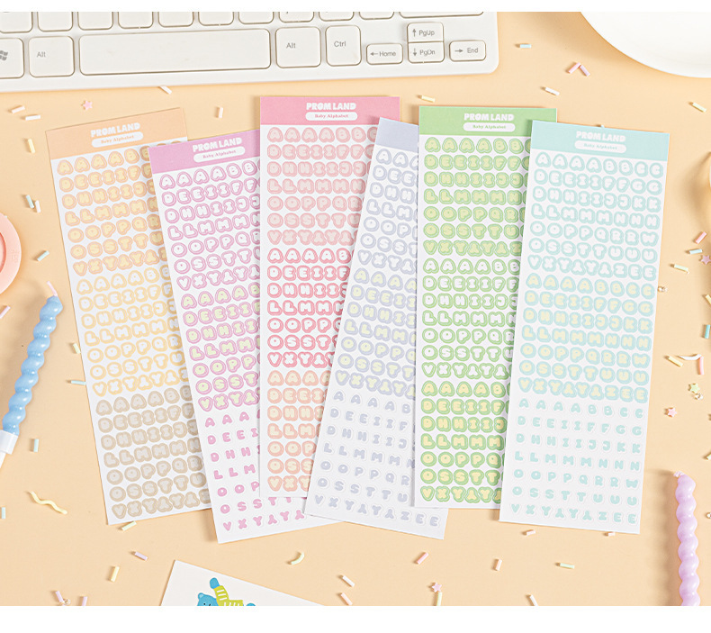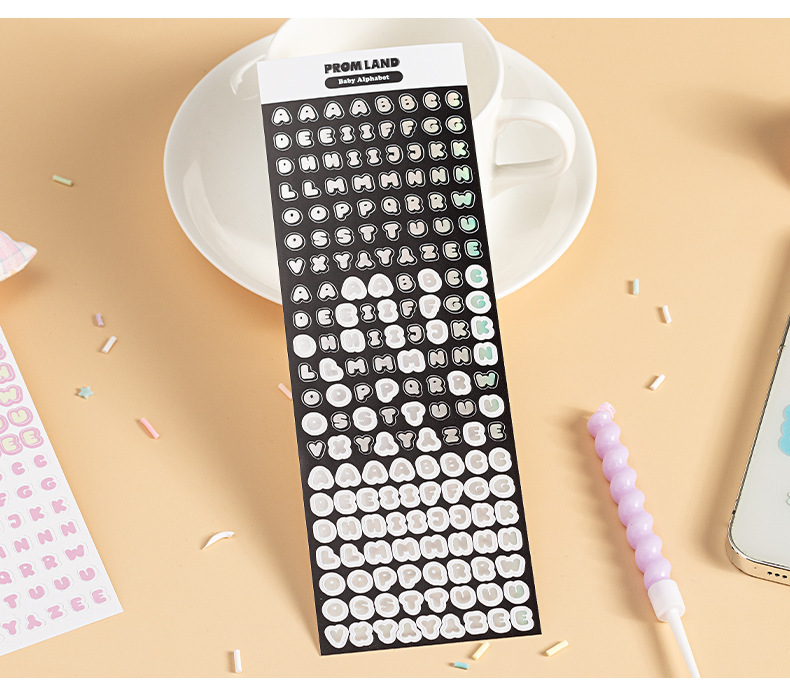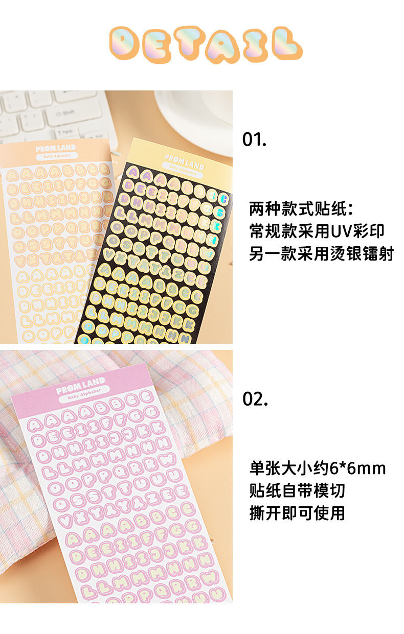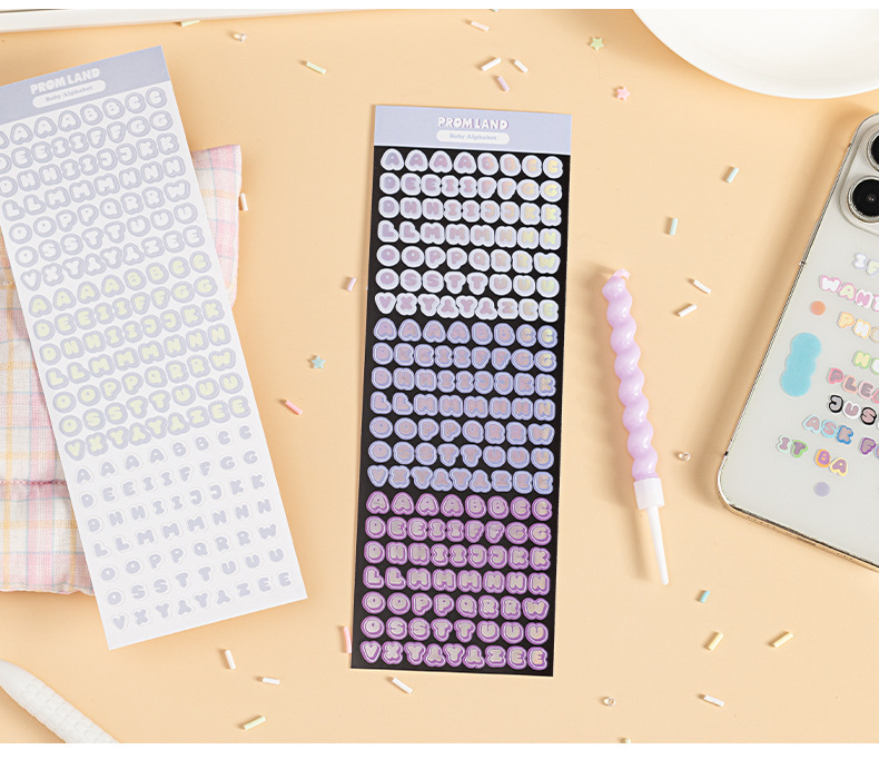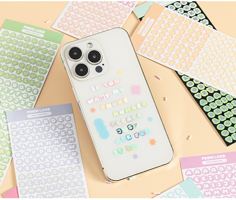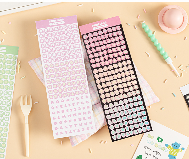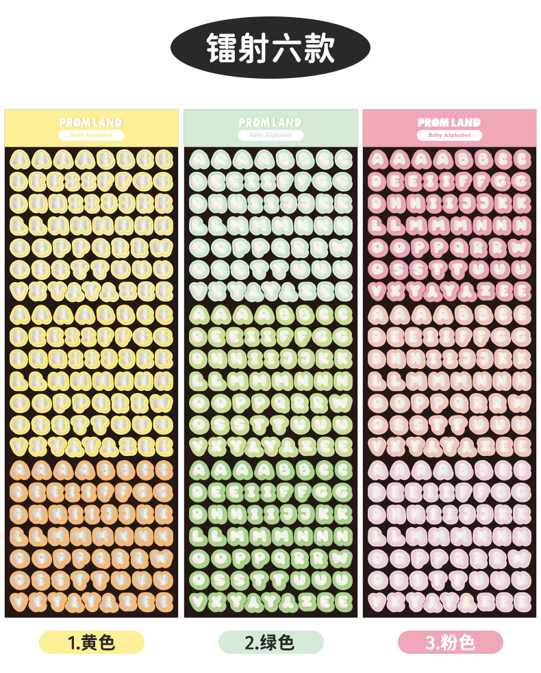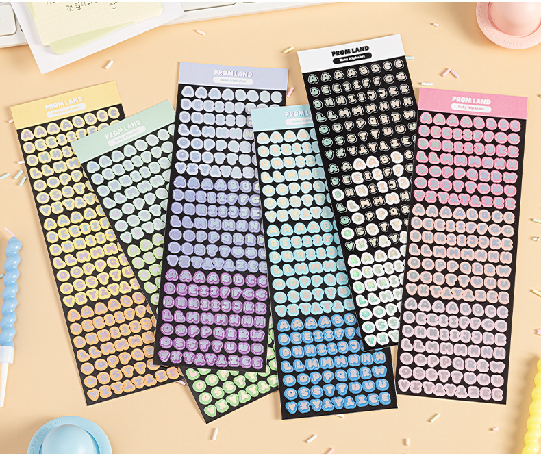 Cartoon color láser pequeño cuerpo redondo pegatinas de letras color caramelo inglés mayúscula adhesivo diy cuenta de mano pegatinas de tarjeta