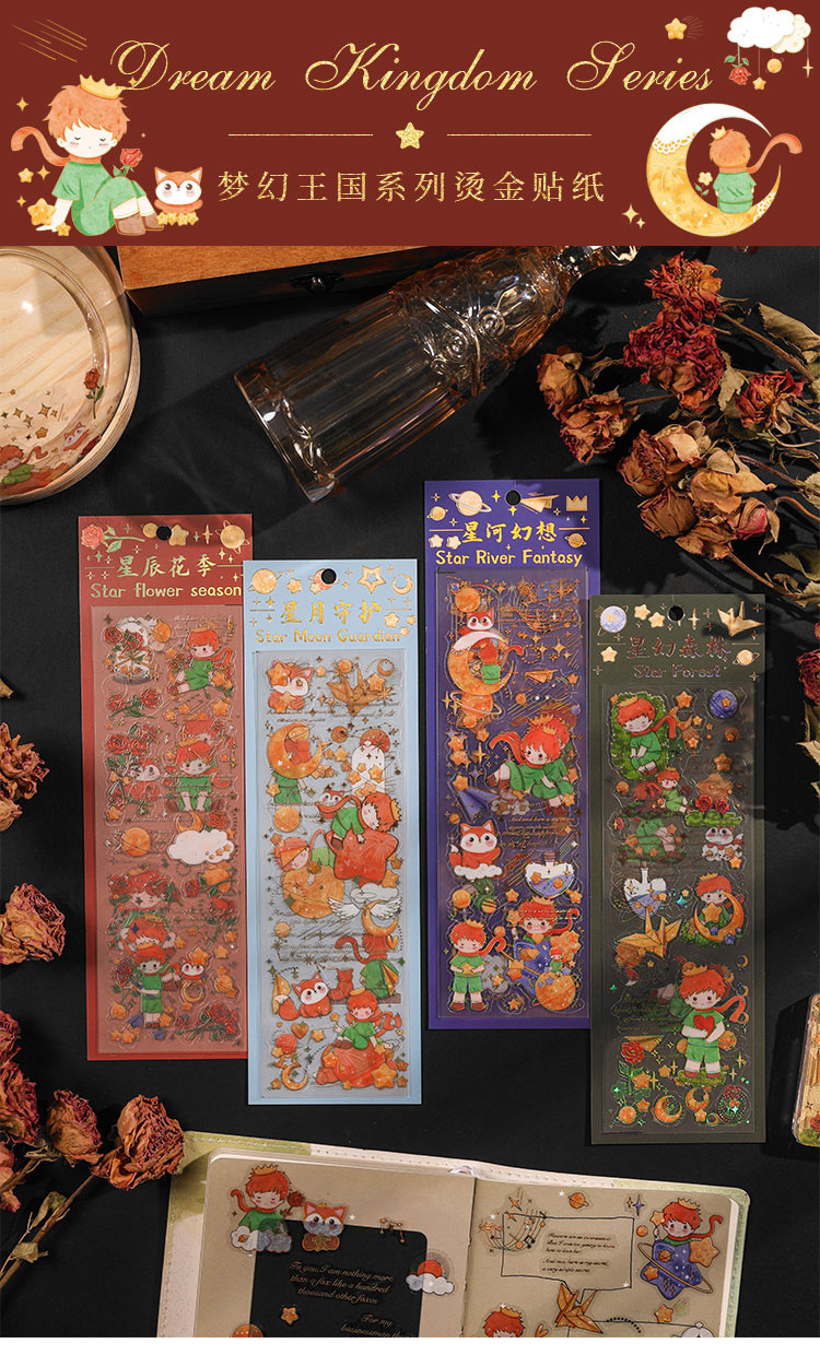 Pequeño Príncipe Rosa estrella sueño estéreo bronceado mano libro pegatinas DIY Goo tarjeta impermeable PVC lindo material decorativo pegatinas