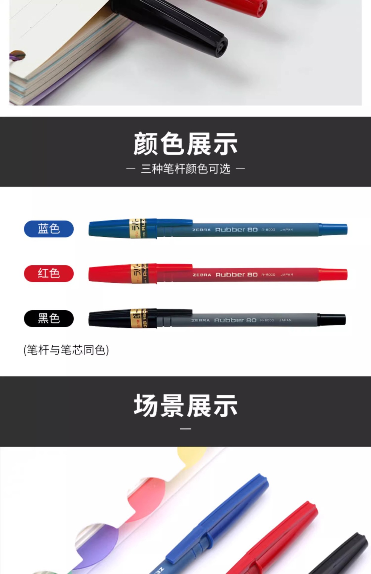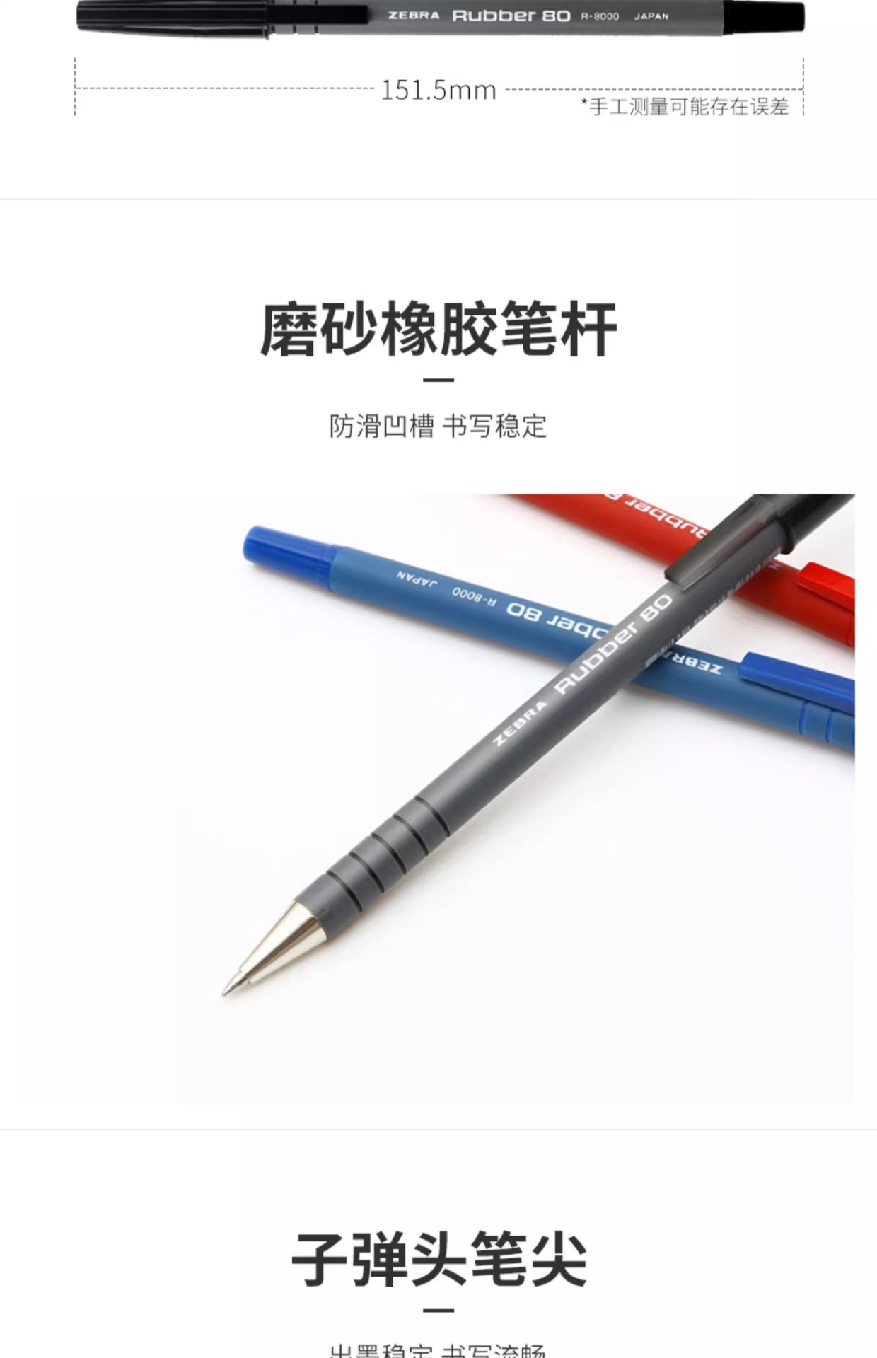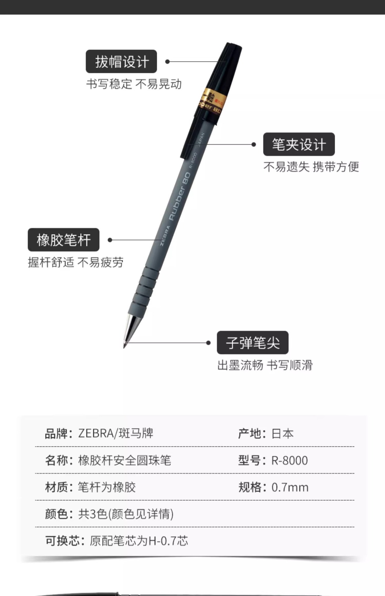 Cebra japonesa R-8000 bolígrafo 0,7 Bolígrafo varilla de goma pluma de seguridad Negro Azul Rojo