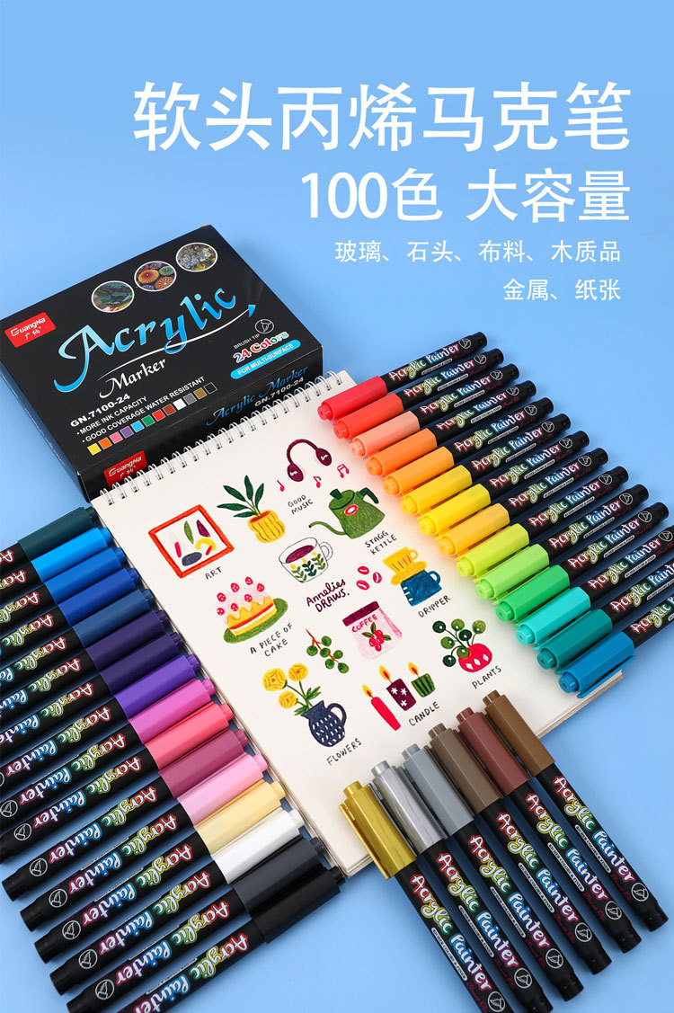 36 color Guangna 7100 cabeza suave acrílico pintura a base de agua marcador DIY pintado a mano graffiti mano cuenta pintura marcador pluma