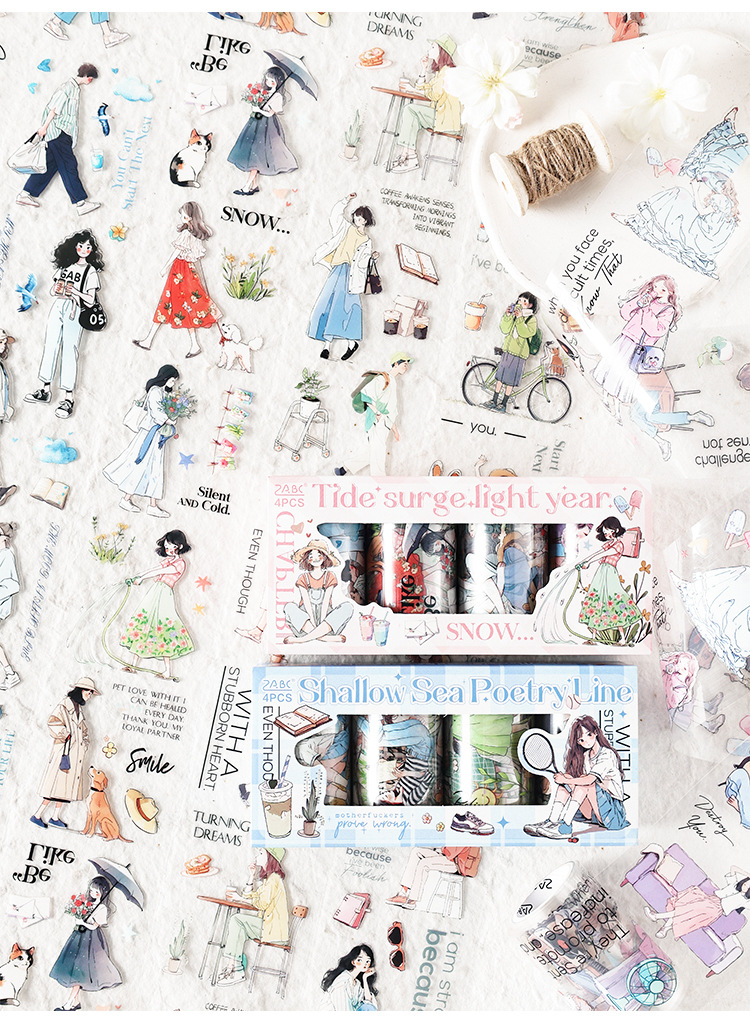 Serie de recuerdos de micro sal Pet ins Impermeable Small Fresh Character Theme Cinta Juego de cajas Pegatinas decorativas de cuenta manual de bricolaje