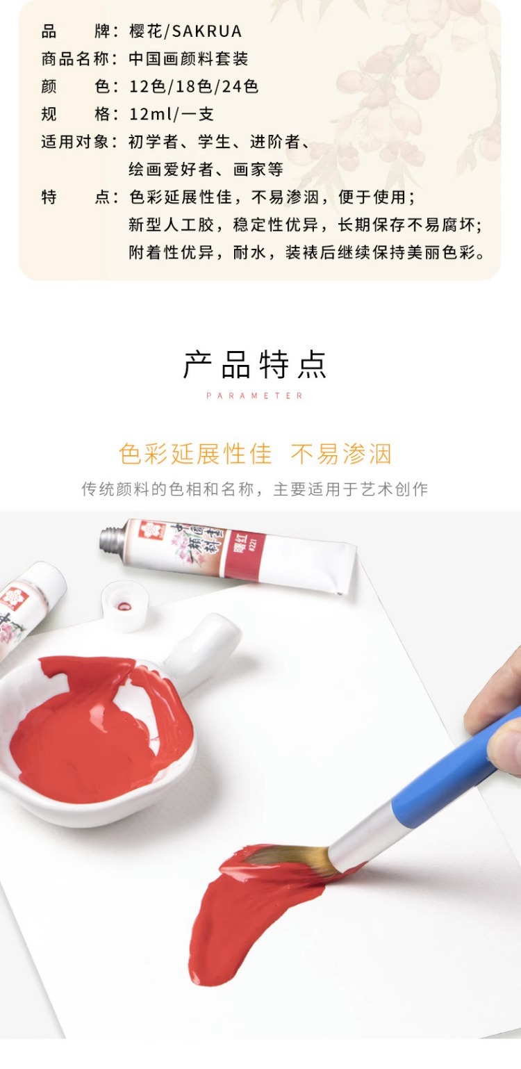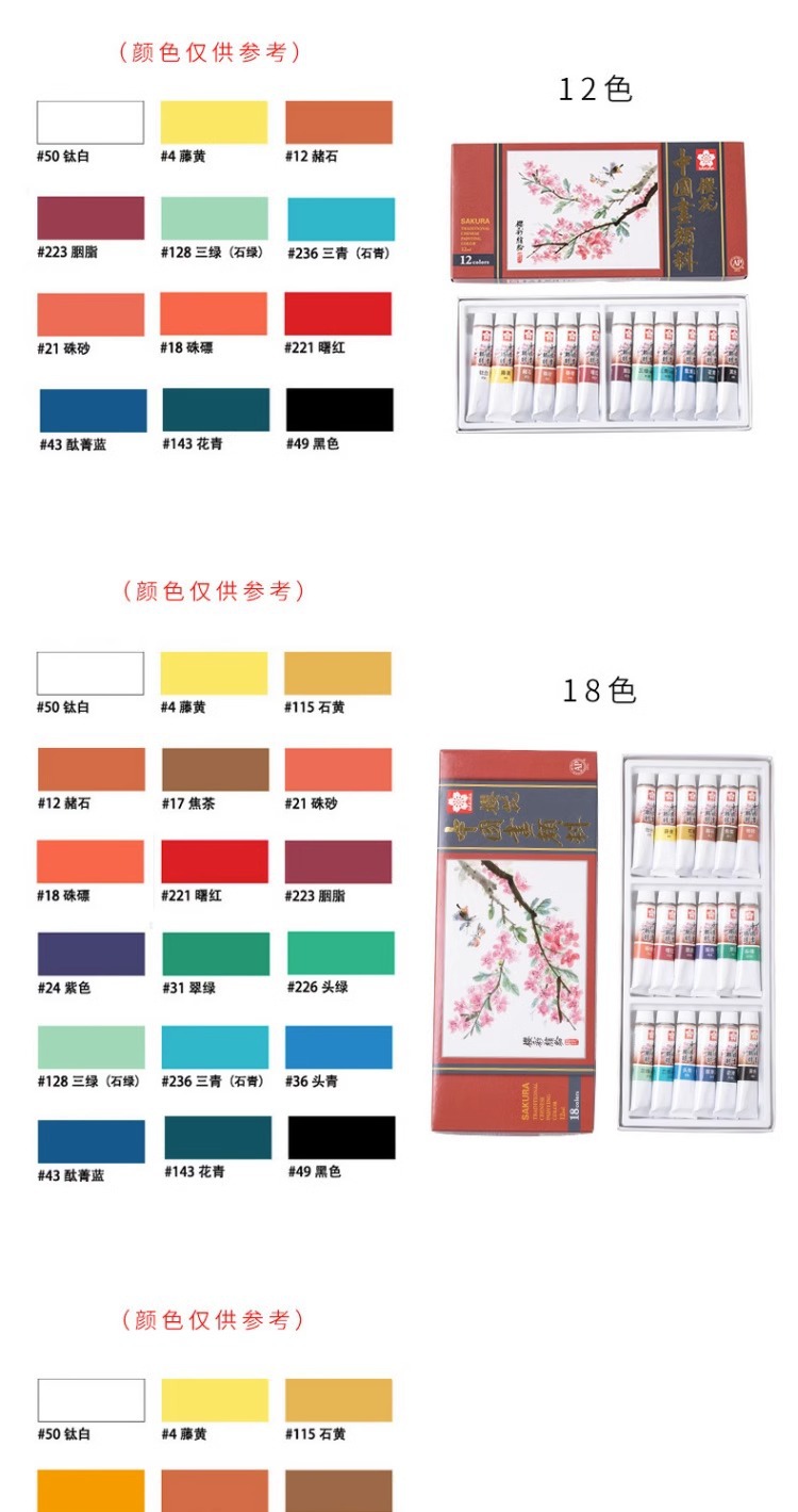 Japonés Sakura flor de cerezo pintura china pintura 24 colores traje 12ml pintura china pintura 18 colores pintura meticulosa pintura