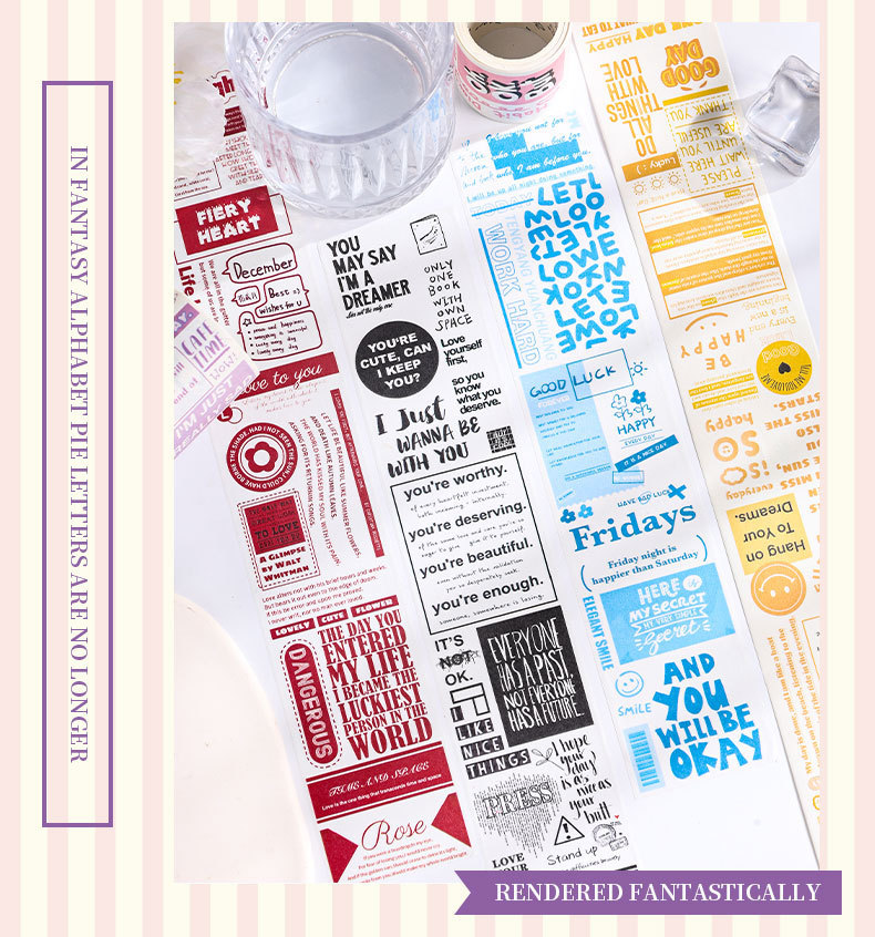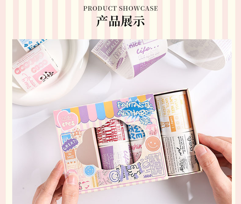 Serie de letras fantásticas cuentas de mano y cinta de papel cubierta caja diy cuentas de mano diario pegatinas transfronterizas cinta de paisaje inglés