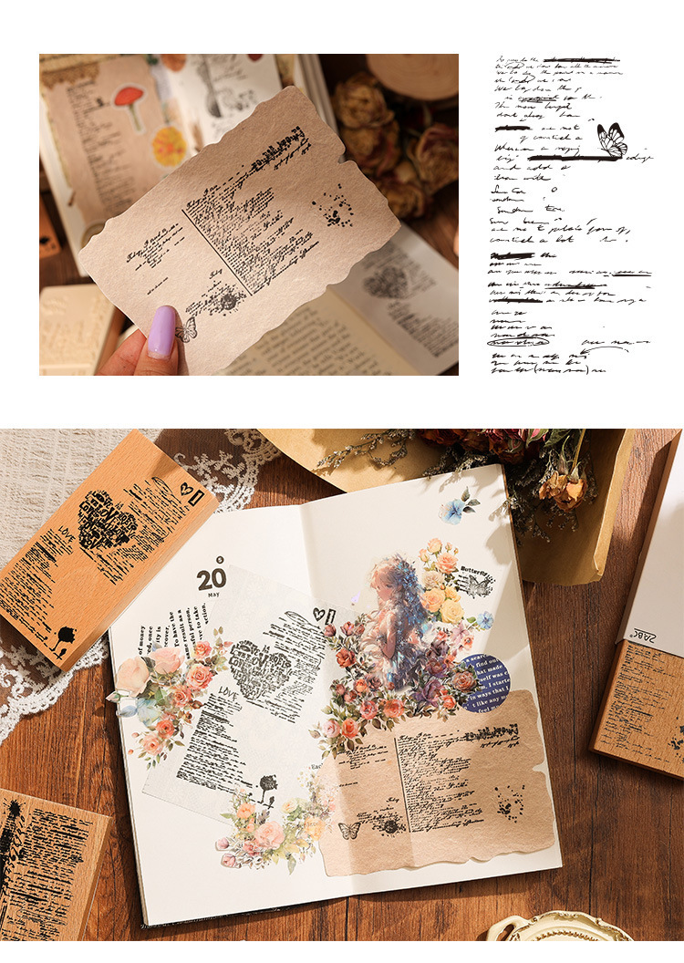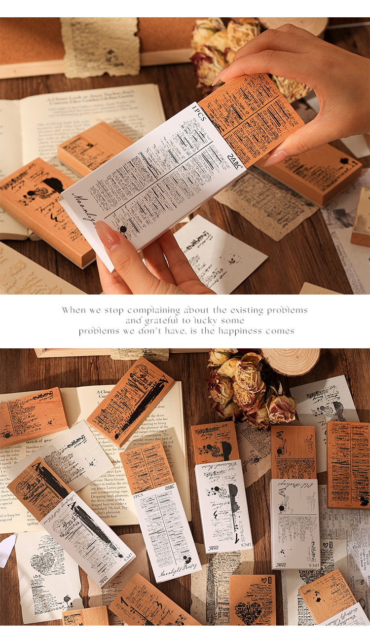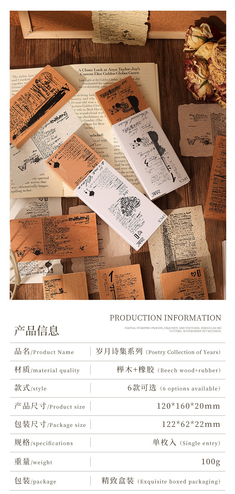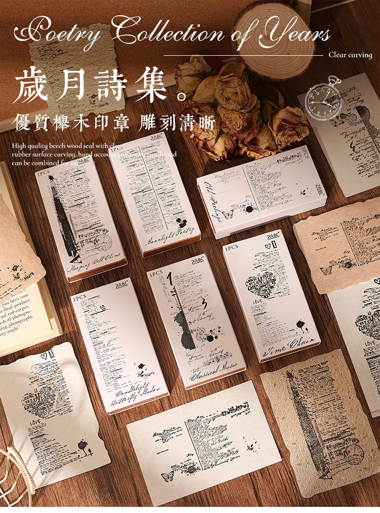 Colección de poemas retro Inglés sello de libro de mano sello de madera de beech sello de goma retro transfronterizo