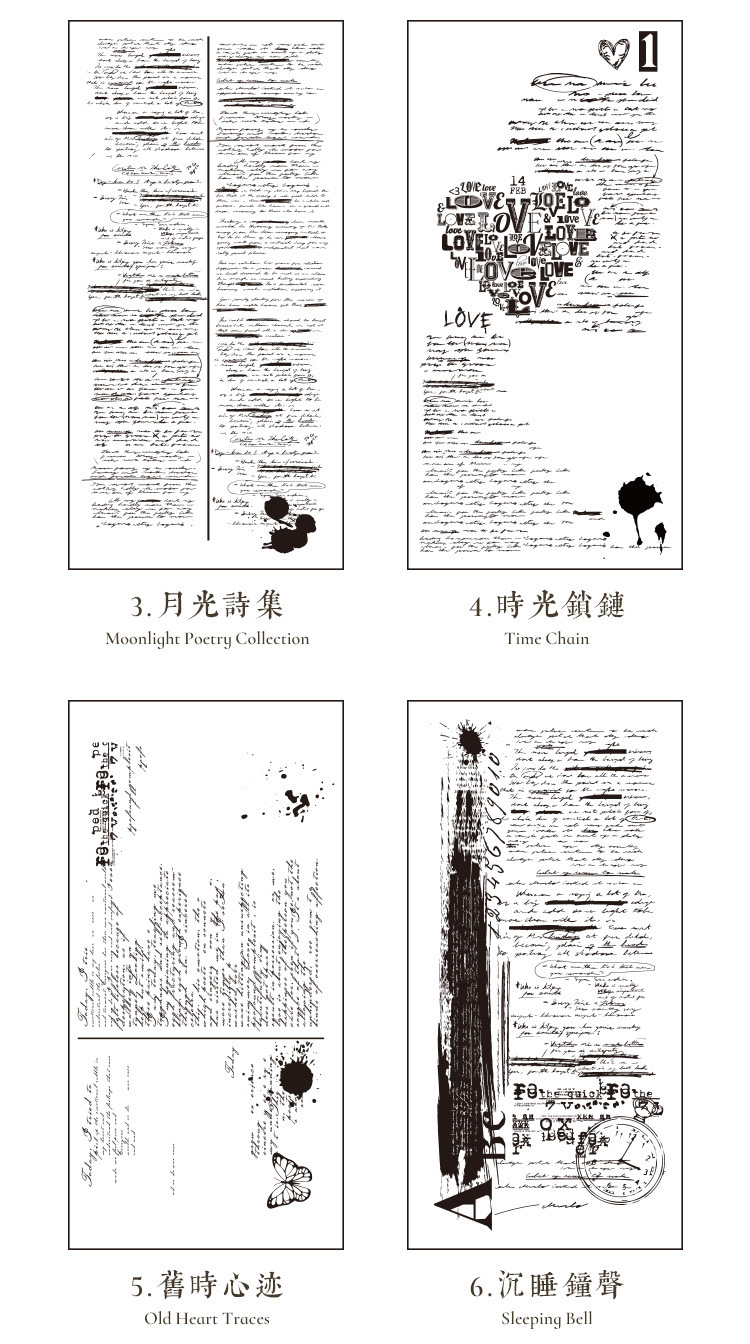 | Color | 3 poemas de luz de luna, 4 cadenas de tiempo, 5 viejos recuerdos de corazón, 6 campanas de sueño |