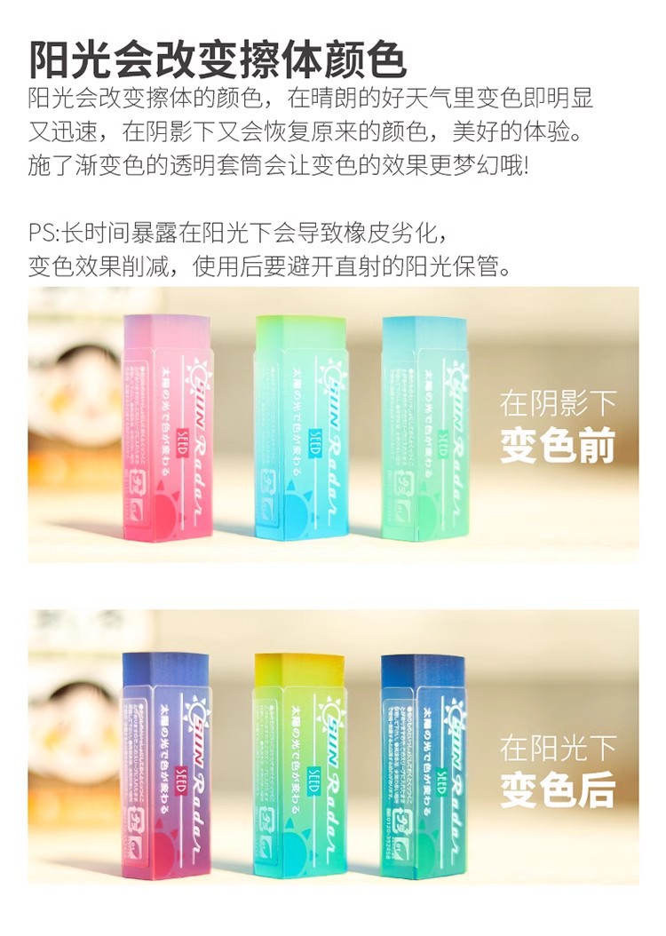 SEMAL japonesa Borrador de cambio de color borrador transparente para estudiantes masculinos y femeninos Borrador de dibujo de Arte de lápiz especial