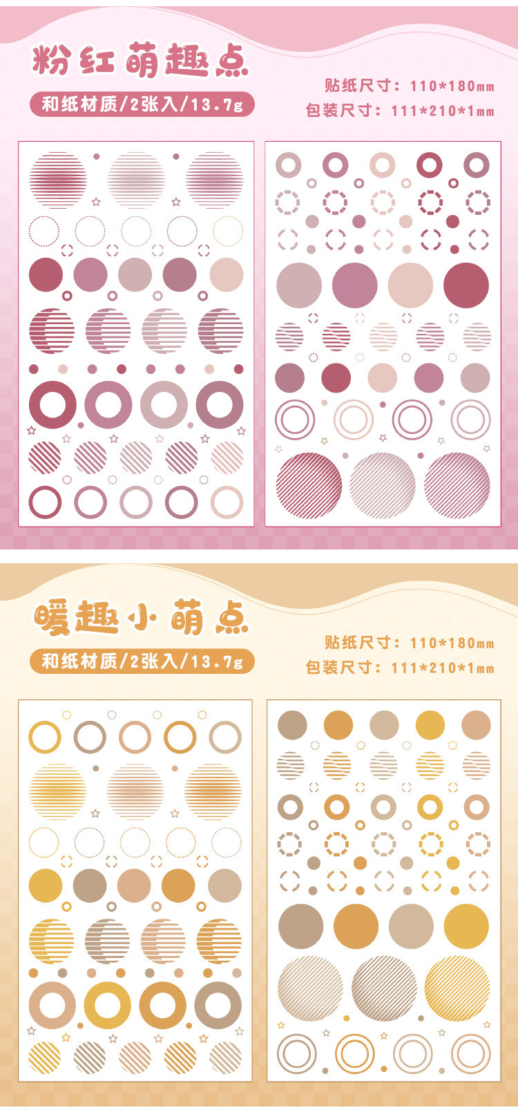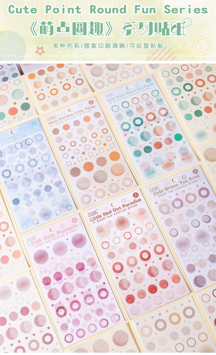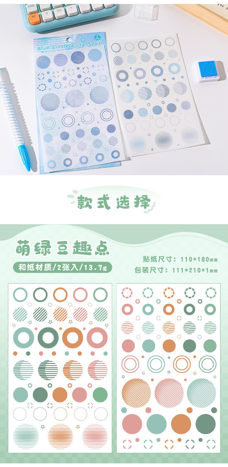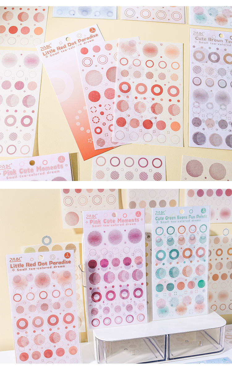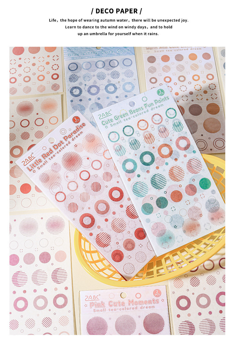 | Color | 1 impresión de té marrón, 2 pequeños parques de puntos rojos, 3 puntos interesantes de frijoles mung, 4 puntos interesantes rosas, 5 puntos lindos cálidos, 6 puntos lindos azules |