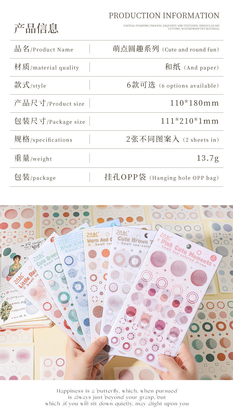 Diario de brote redondo divertido y pegatinas de papel diy diario de mano pegatinas decorativas retro transfronterizas marca pegatinas de círculo pequeño