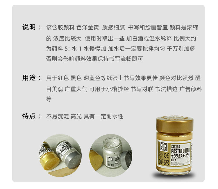 Flor de cerezo japonesa pigmento dorado 30ml gouache pasta de pintura estudiante de arte pintura especial caligrafía decoración copia Sutra par