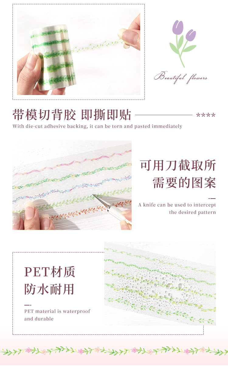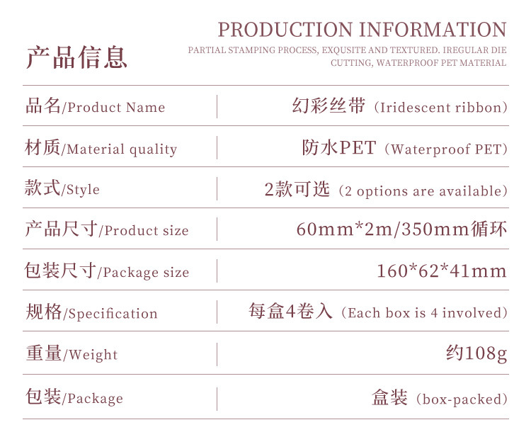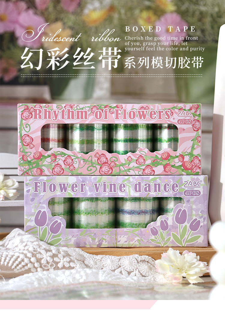Symphony Ribbon Series Pet Pegamento troquelado impermeable Cinta para cuentas de mano Juego de cajas Diy Material de decoración de cuentas de mano Cinta para collage