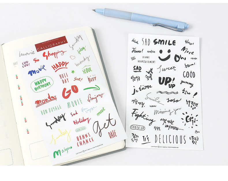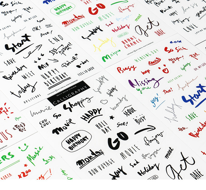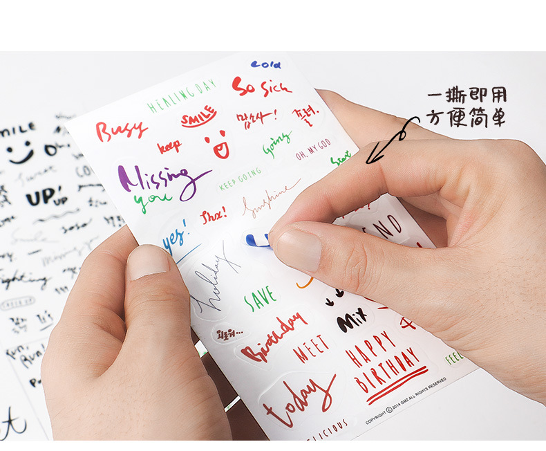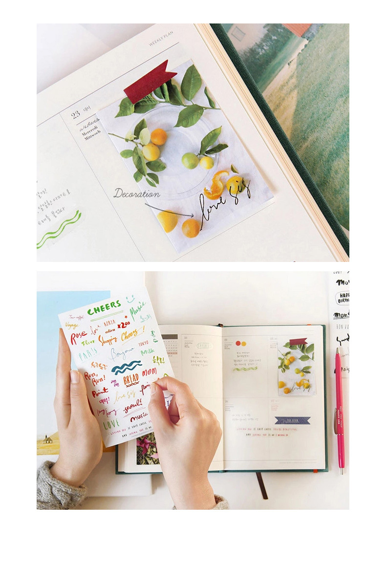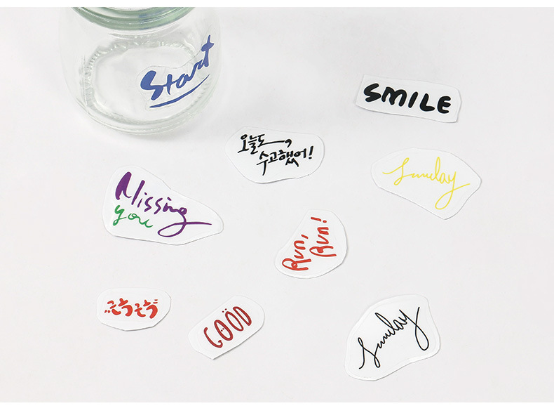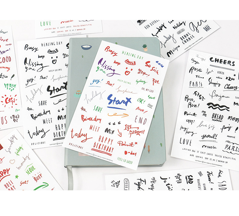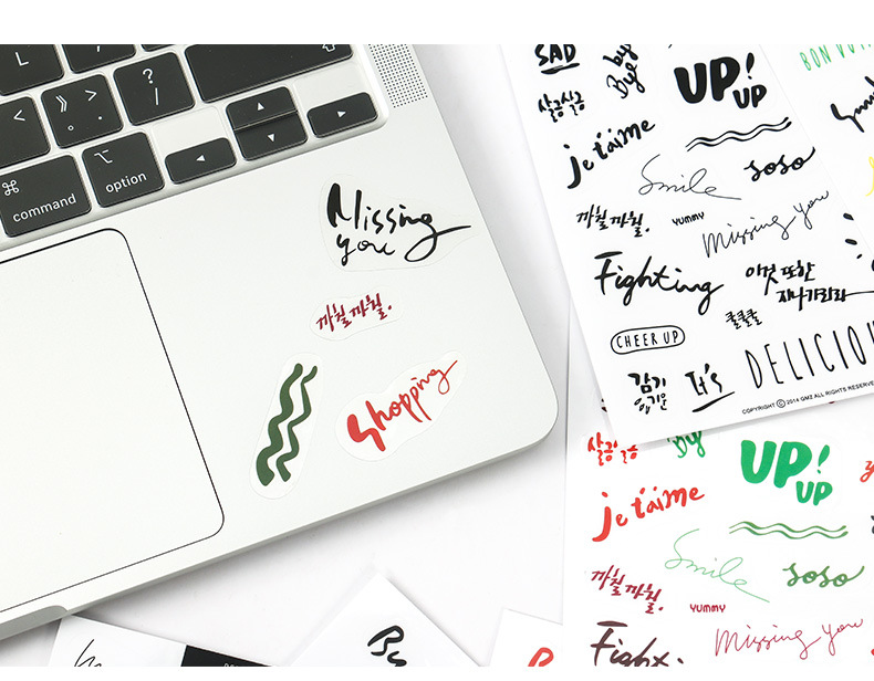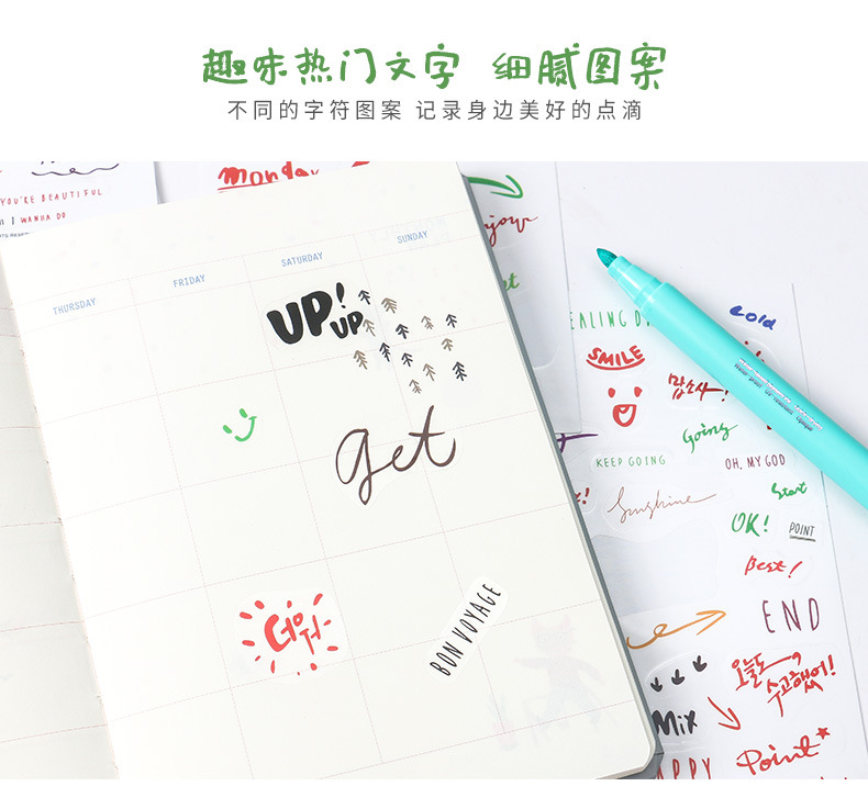 Arte fresco de la historieta letras inglesas frase creativa pegatinas DIY diario decoración transparente PVC pegatinas