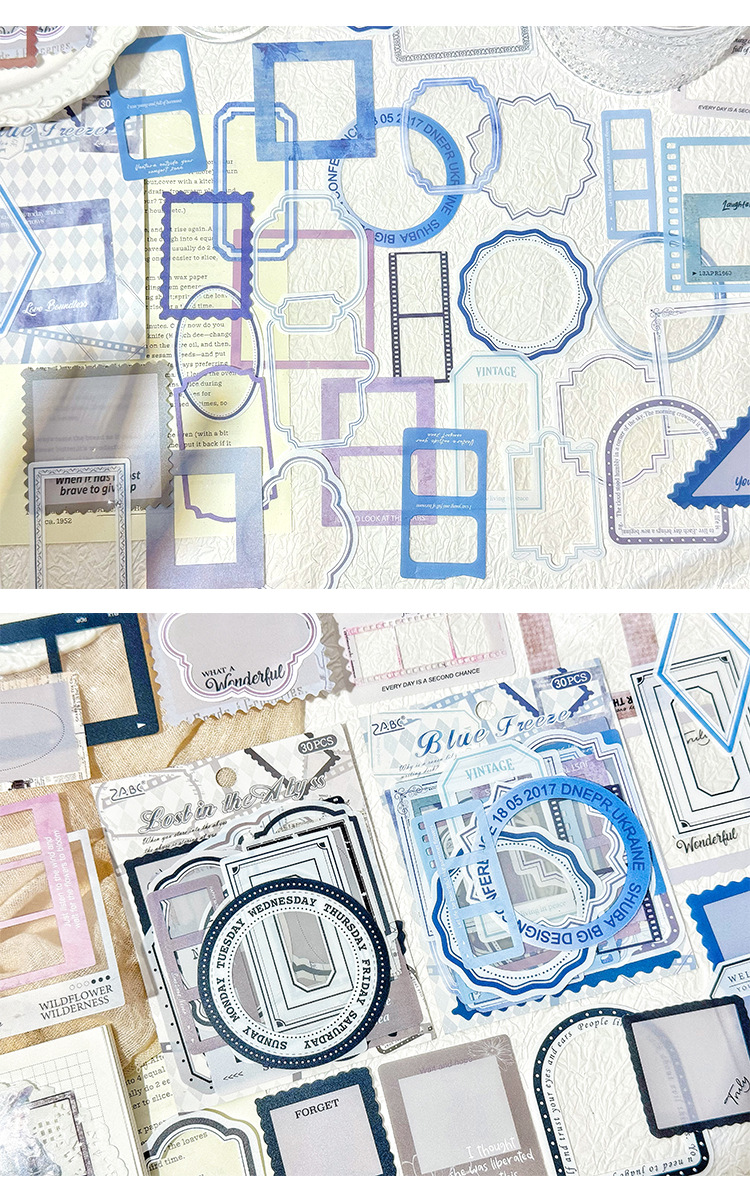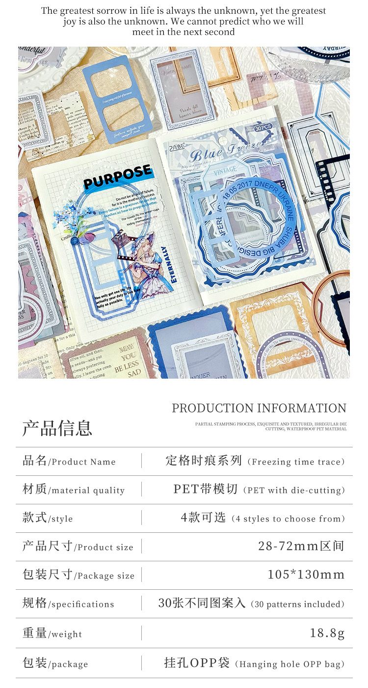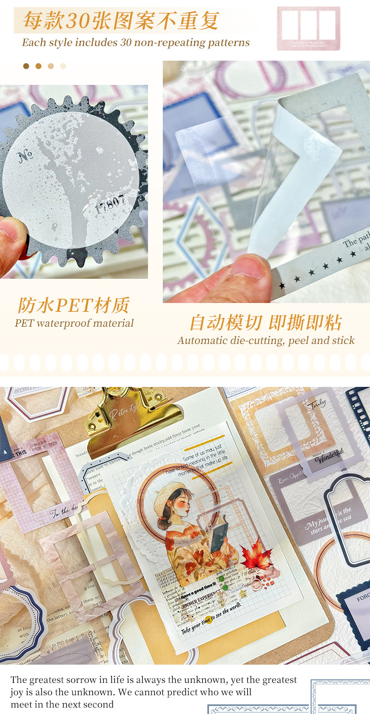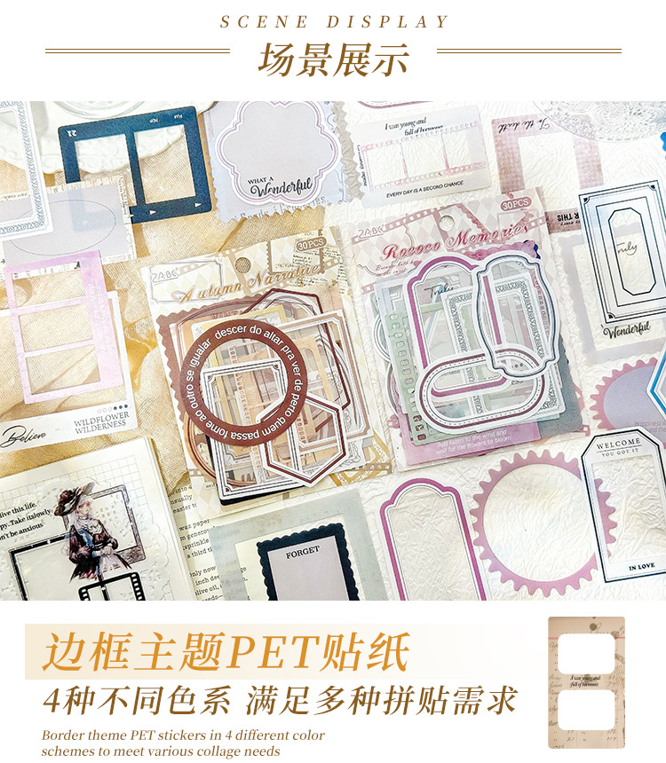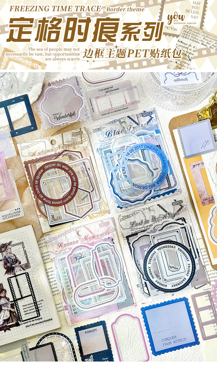 Serie de marcas de tiempo de marco de foto de pet paquete de pegatinas de tema libro de bricolaje material de libro de mano collage foto pegatinas de decoración