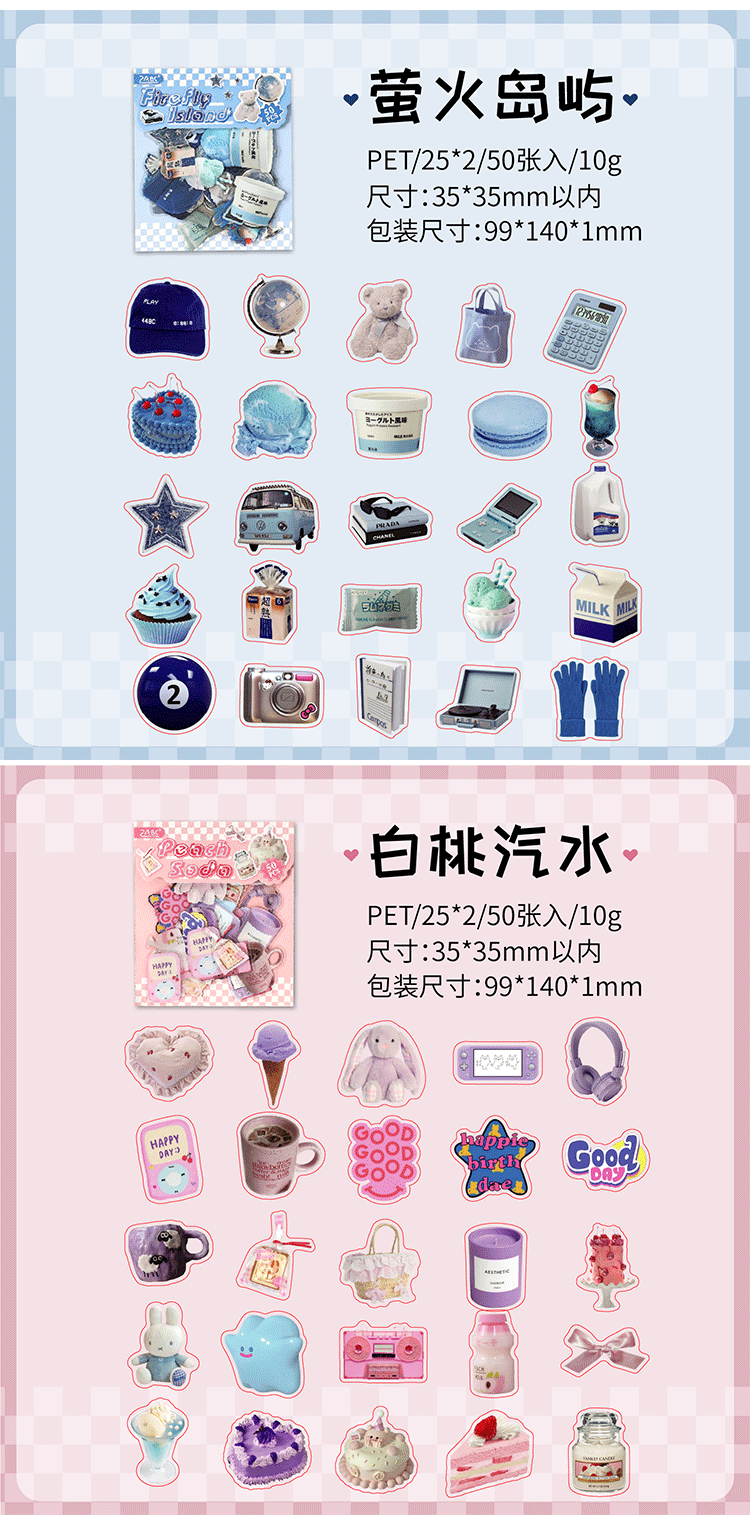| Colores | 1 isla de luciérnagas,2 vacaciones grises,3 Gu Ling Miao Detective,4 Menta por la mañana,5 Rum de caramelo,6 refresco de melocotón blanco |