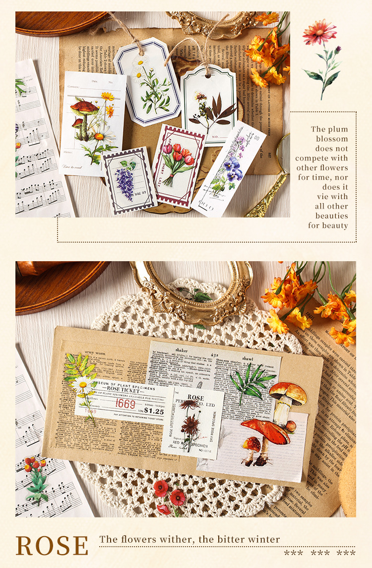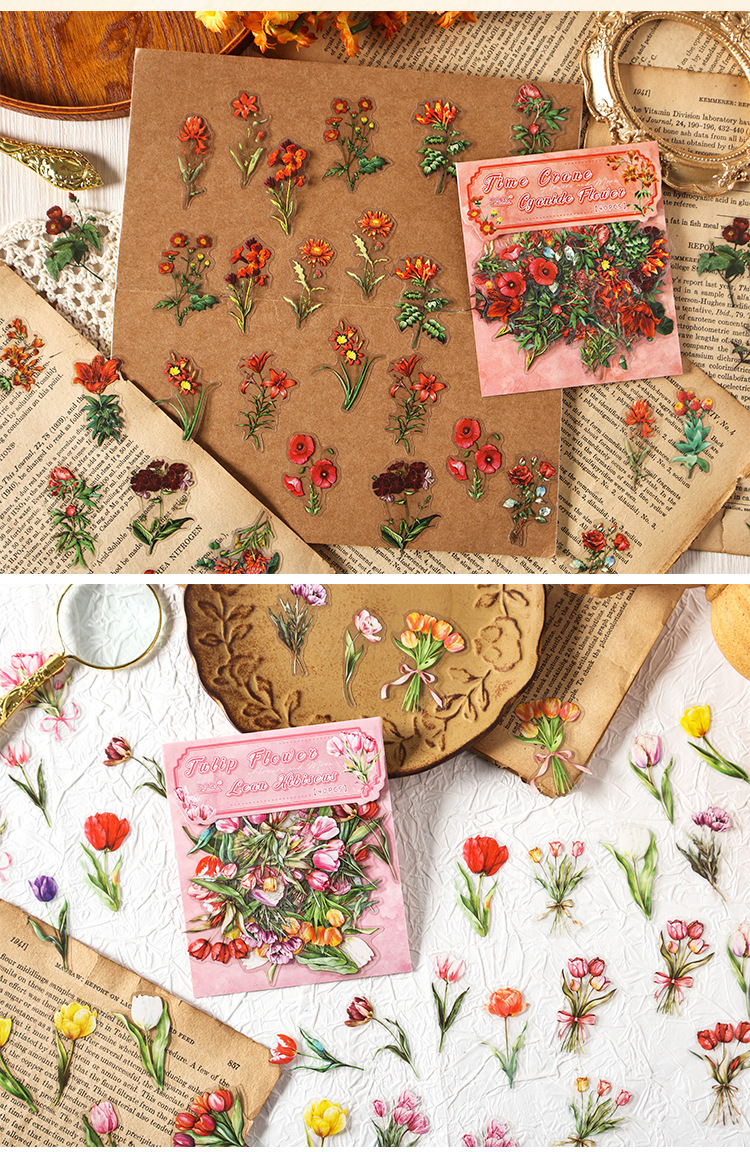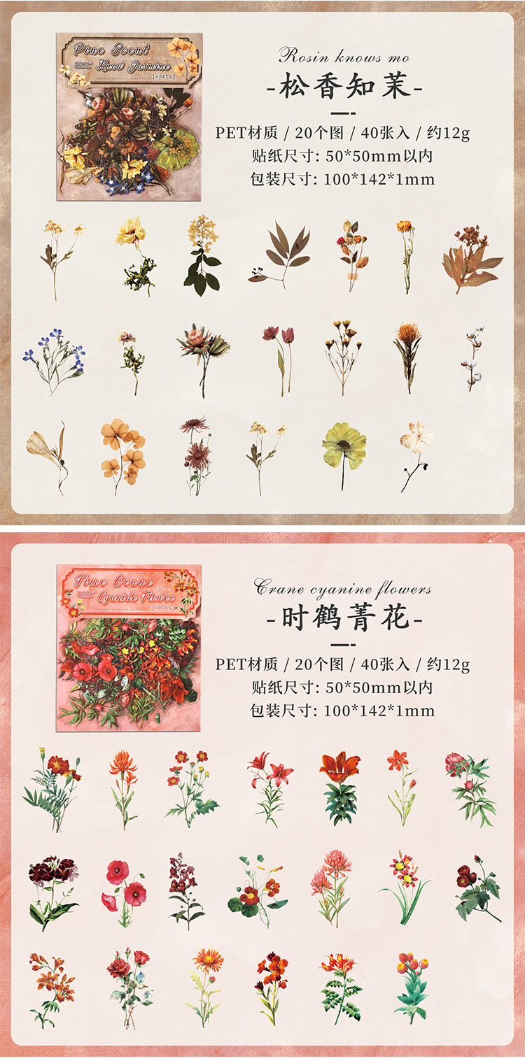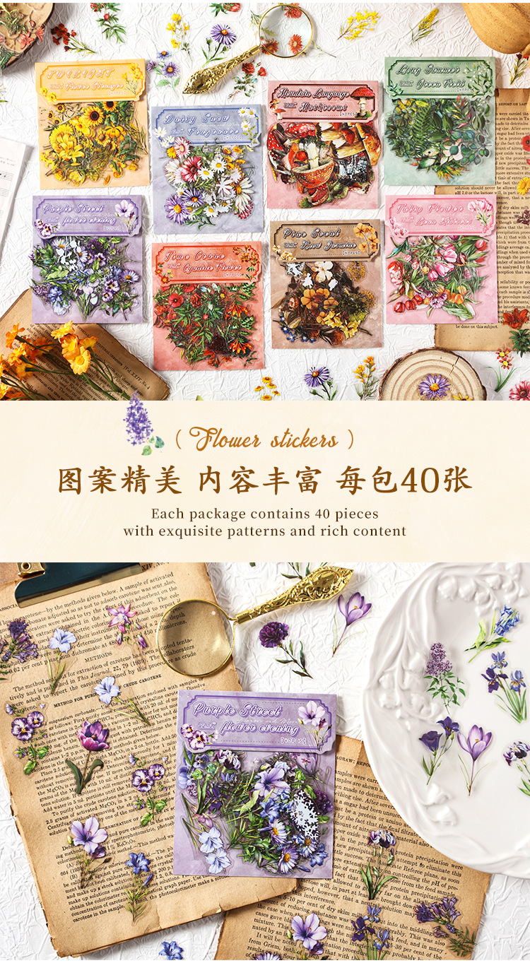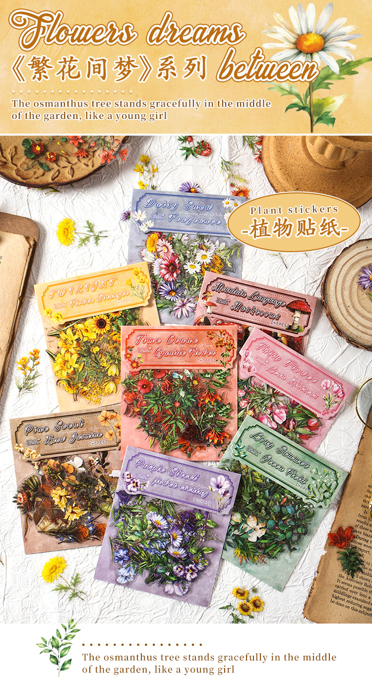 Paquete de pegatinas de cuenta manual de la serie de sueños florales Pegatinas de flores de plantas retro Pet Bolsa de pegatinas de plantas de flores impermeables