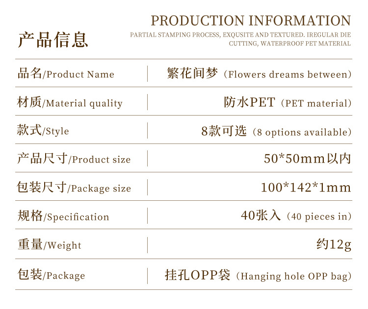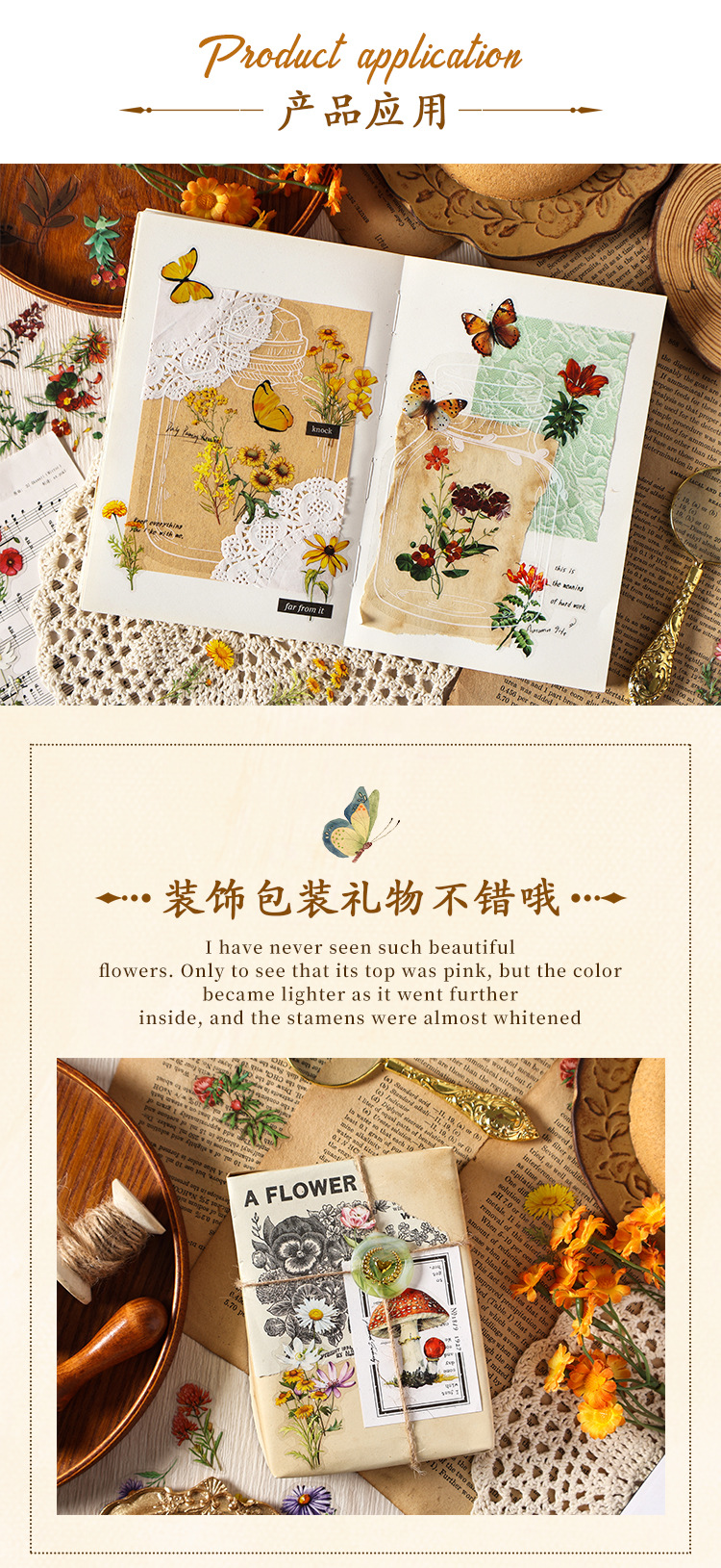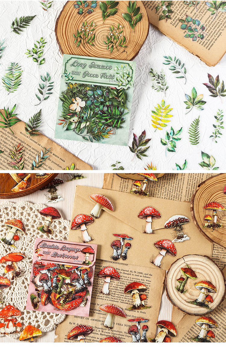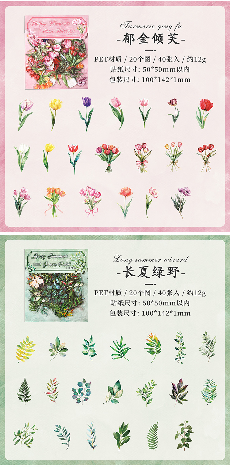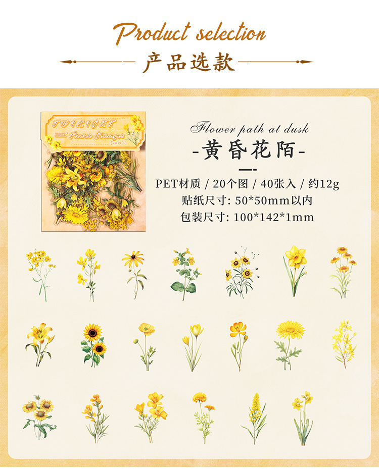 Paquete de pegatinas de cuenta manual de la serie de sueños florales Pegatinas de flores de plantas retro Pet Bolsa de pegatinas de plantas de flores impermeables