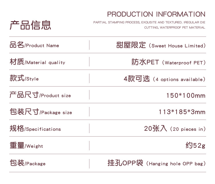 Sweet House Limited Series Pet transparente Impermeable Cartoon Cartoon Libro de bricolaje Material de cuenta manual Decoración Collage Taza de agua Pegatina