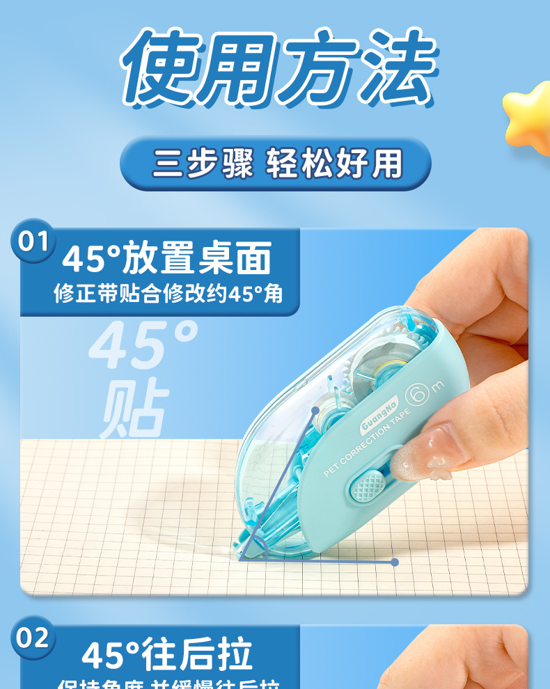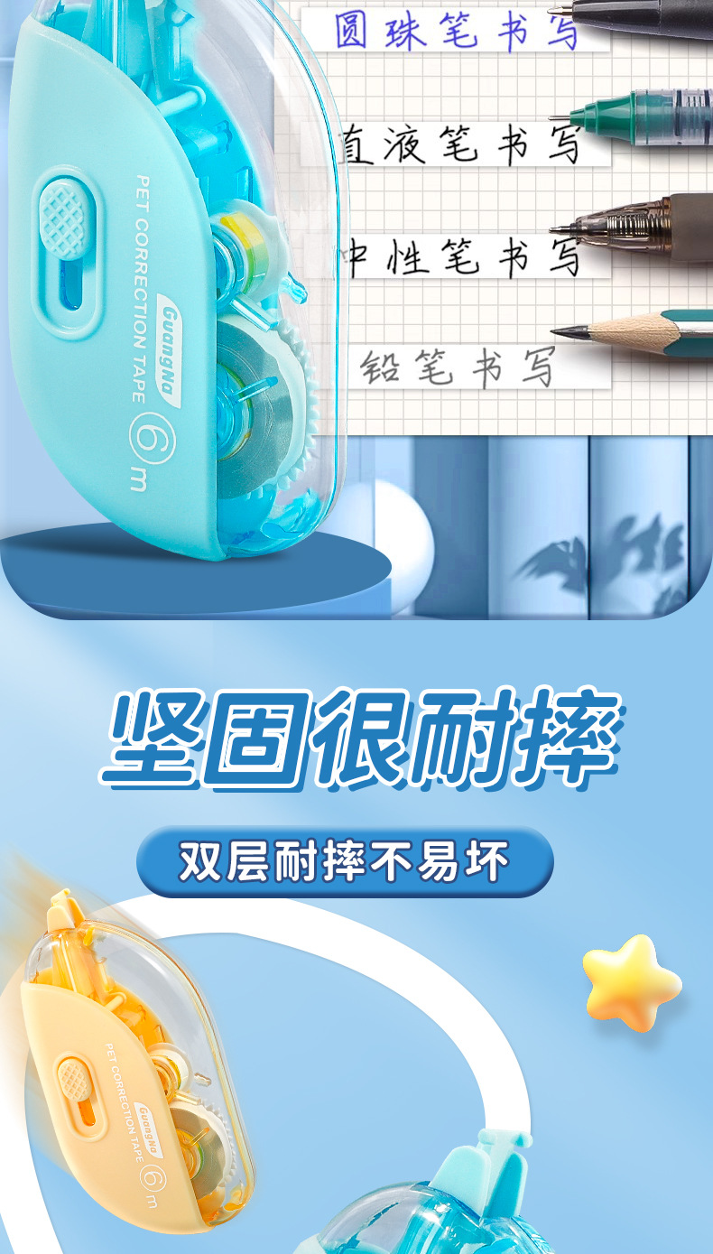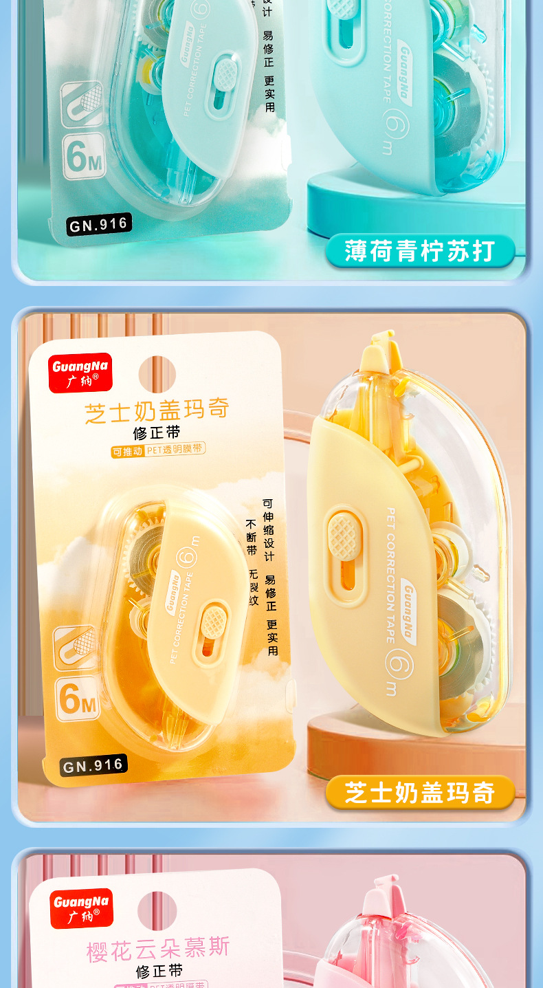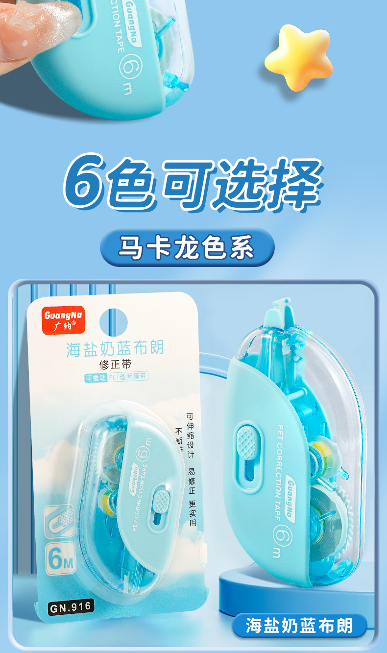 Guangna 916 cinta de corrección de ojos de color macarons 6m de gran capacidad para estudiantes con herramientas de aprendizaje de alto valor ins
