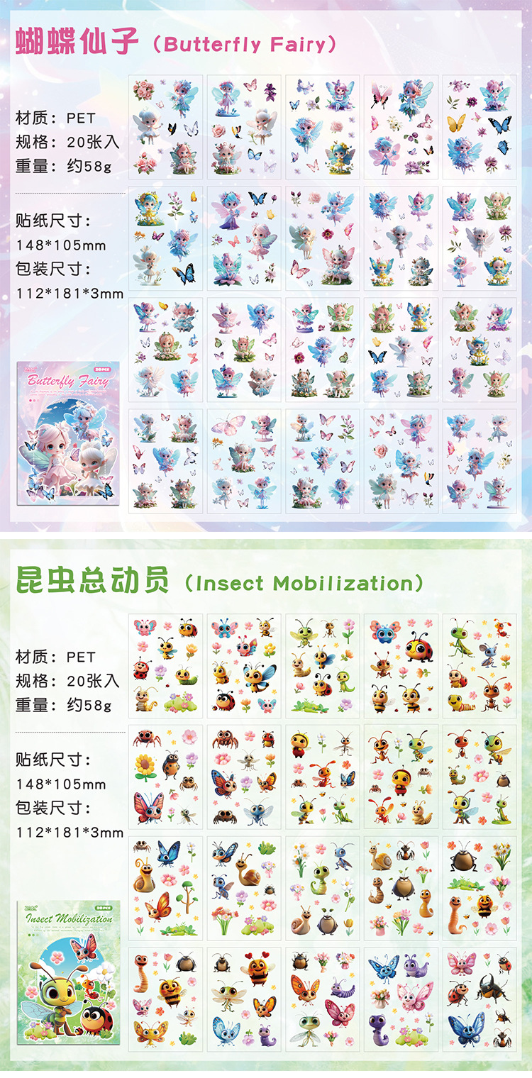 | Colores | 1 mundo submarino,2 Movilización de insectos,3 Leyenda de la sirena,4 Hada de la mariposa |