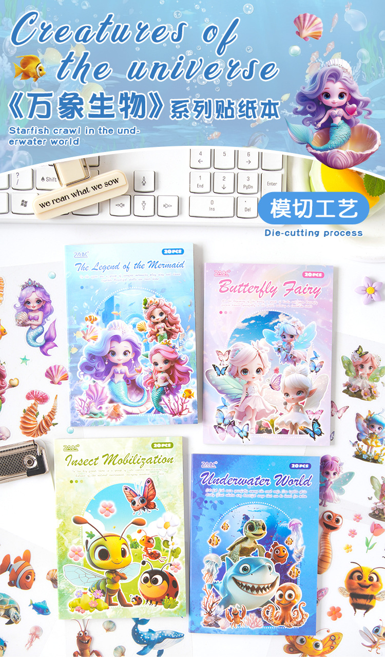 Vientiane Biology Series Ocean Cartoon Lindo animal creativo pet impermeable manual material decorativo collage pegatinas