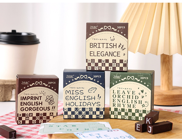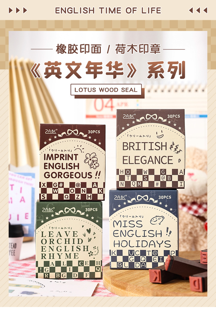 English Years Series Lotus Wood Sello de madera Diy Decoración de cuenta manual Frotamiento Conjunto de sello de madera retro transfronterizo