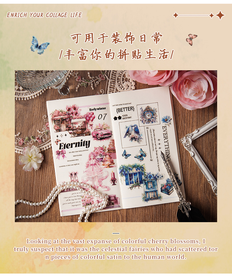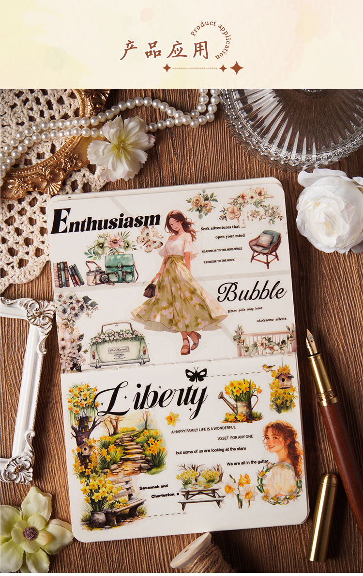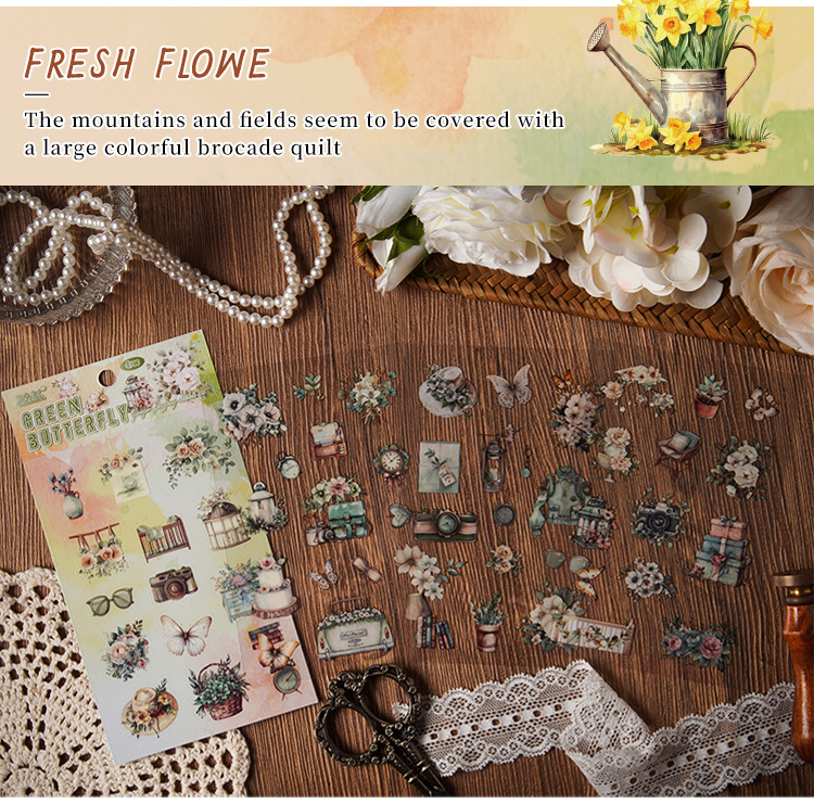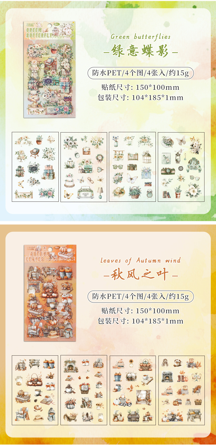 Cross-border Yueya Qingfeng Series Pegatinas de pet transparentes a prueba de agua Diario de bricolaje Decoración Collage Material Pegatinas