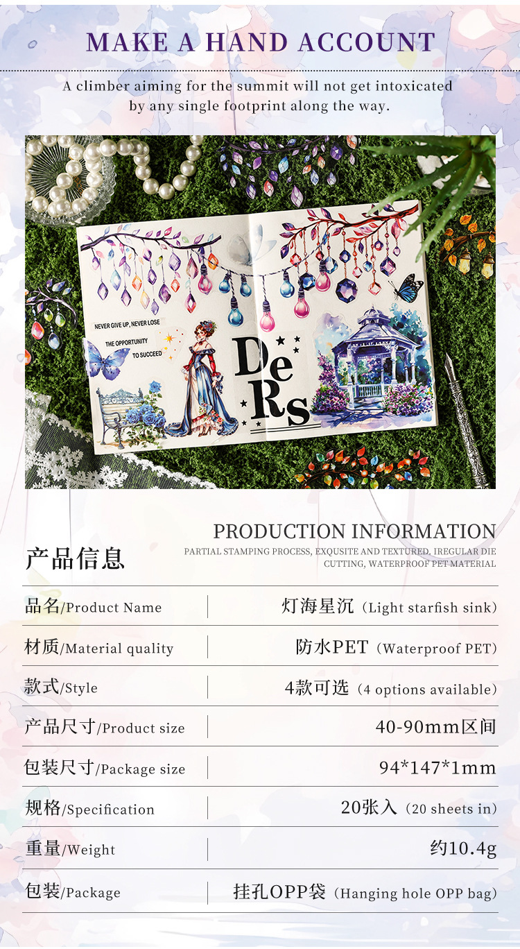 Lámpara estrella de mar Shen paquete de pegatinas de pet transparente a prueba de agua diario de bricolaje pegatinas decorativas pegatinas de luces creativas transfronterizas