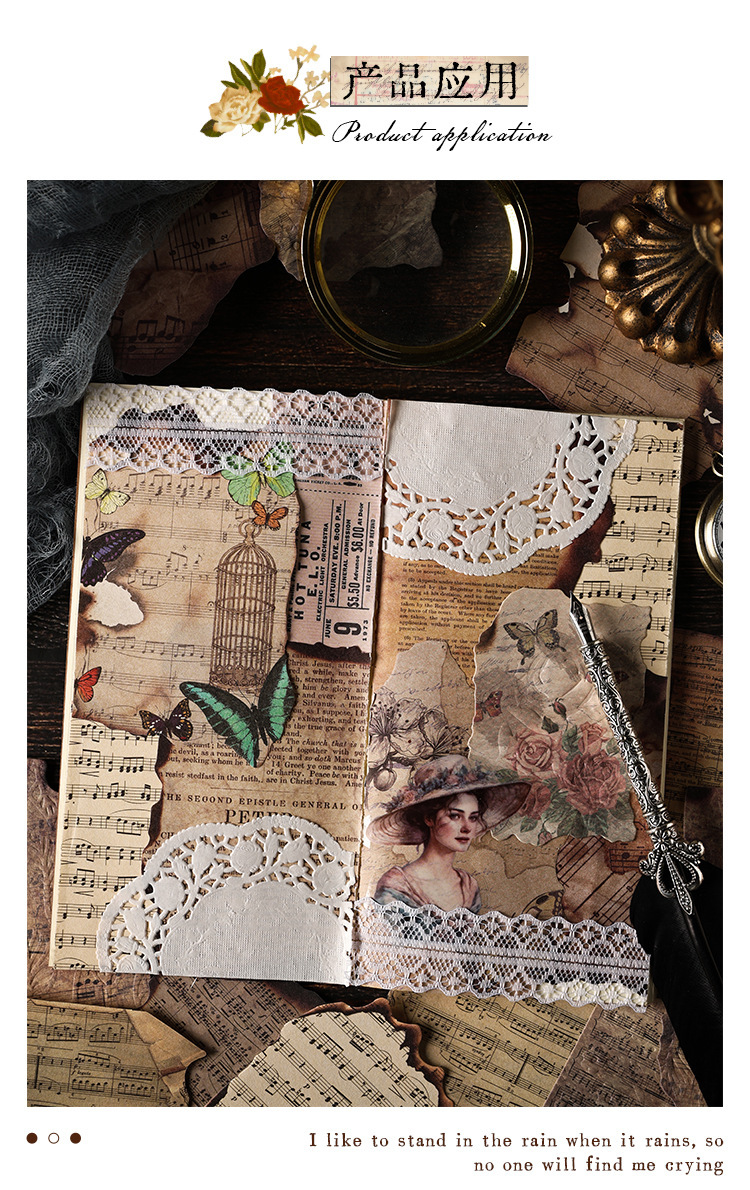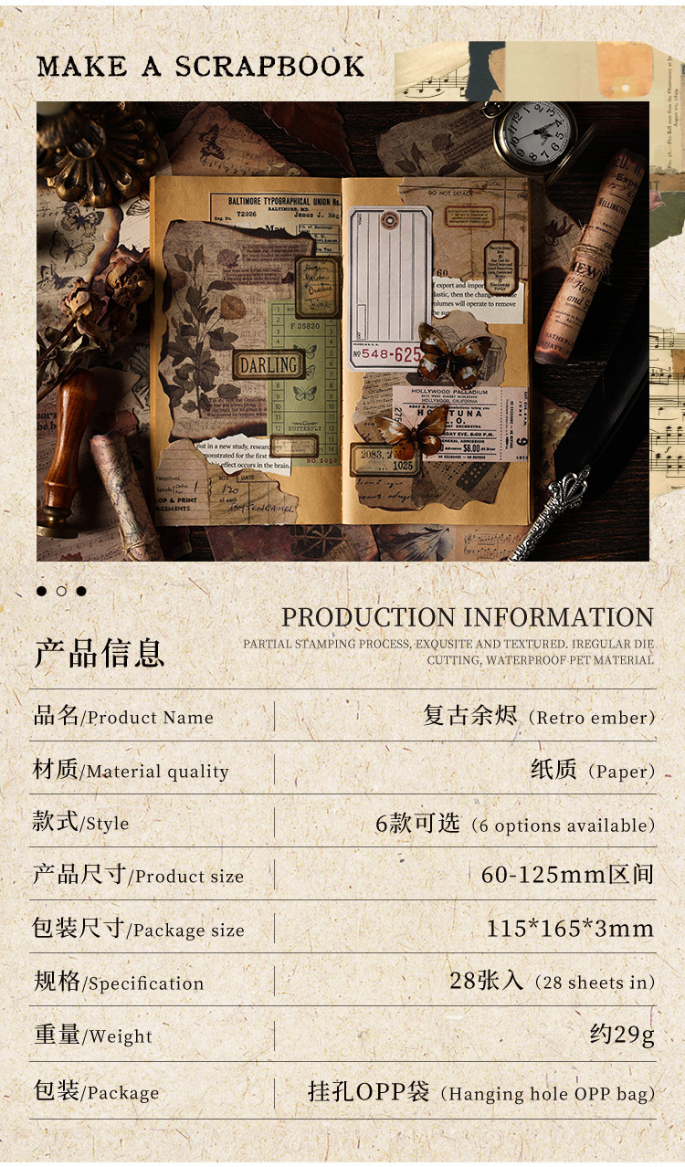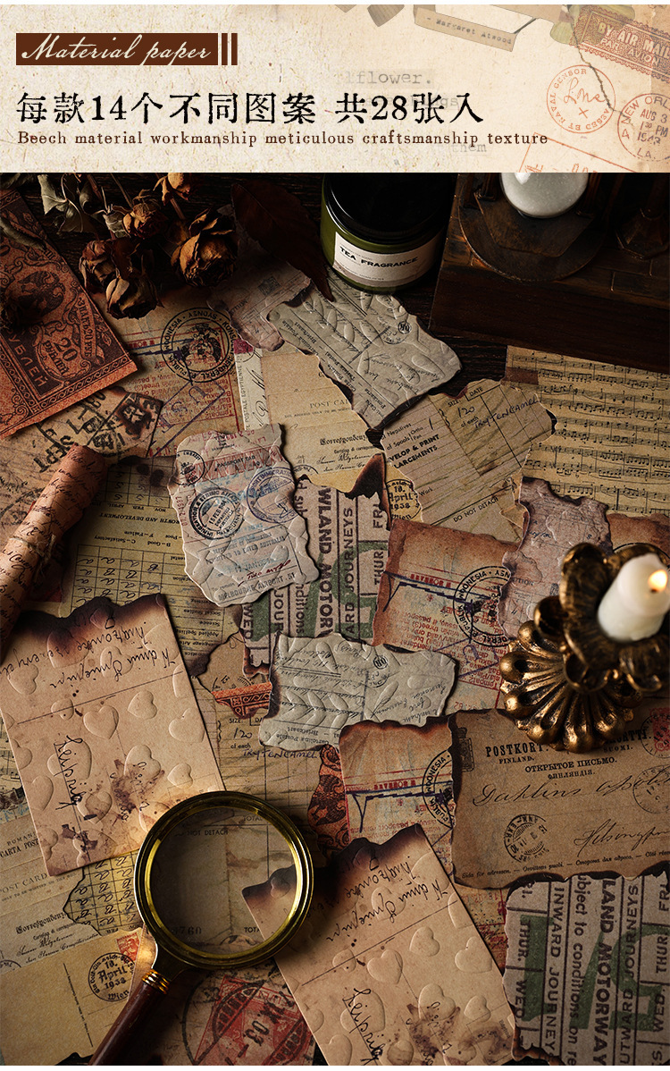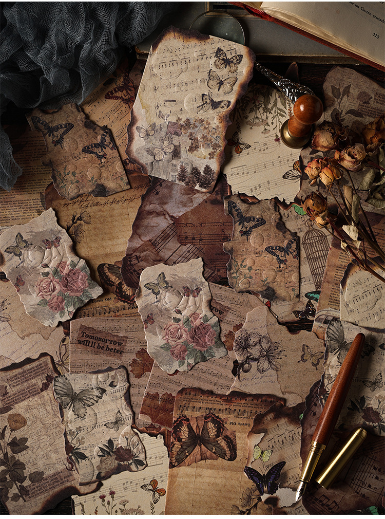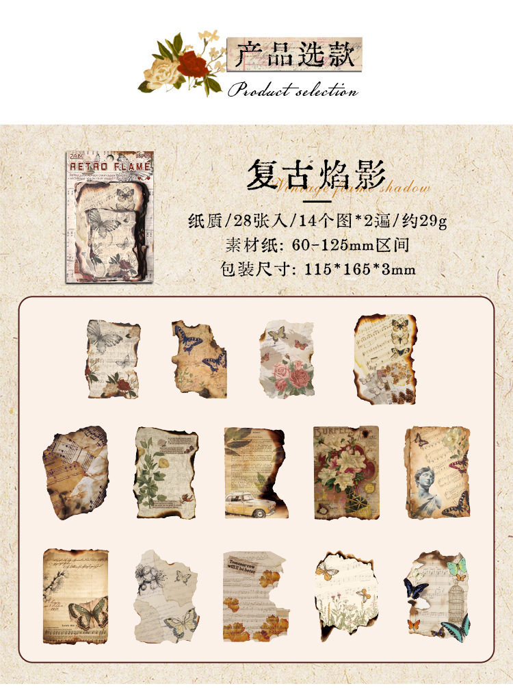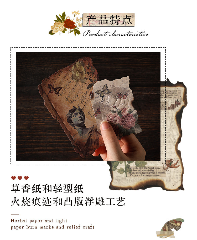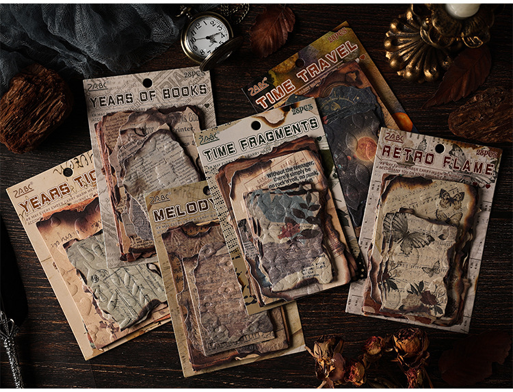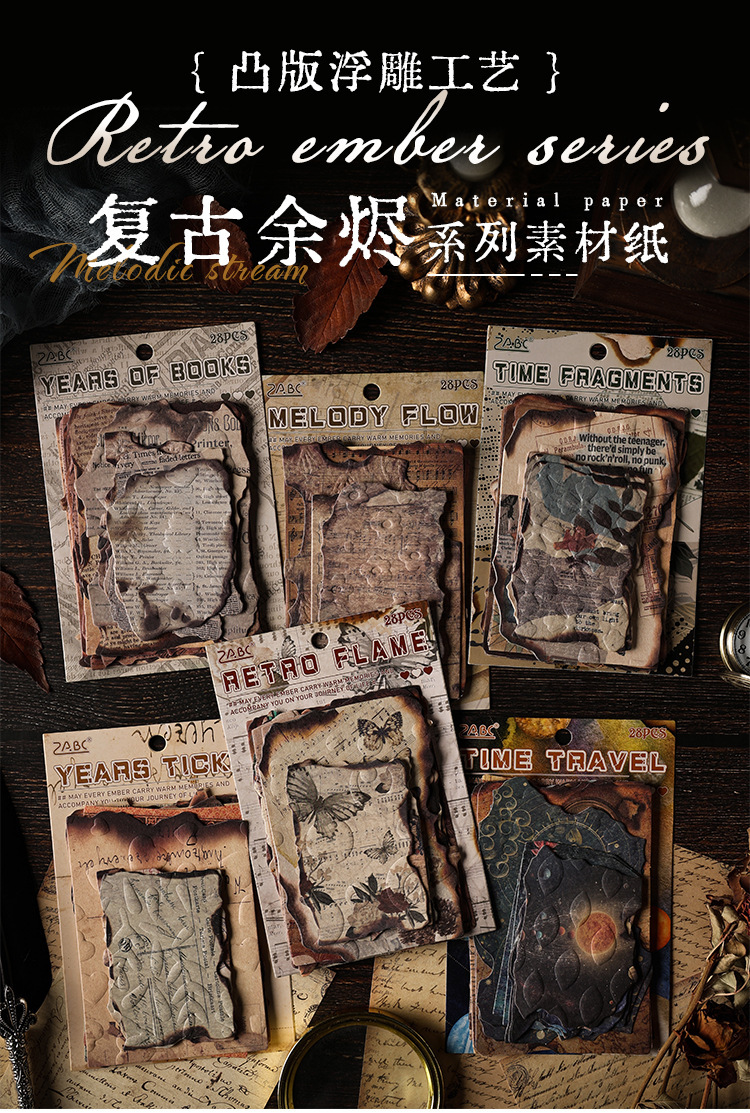 Brasas retro, sensación de combustión de forma especial, papel de material no pegajoso, cuentas de mano retro transfronterizas, papel de relieve tridimensional para el paisaje