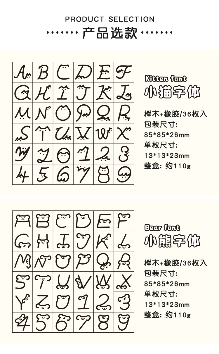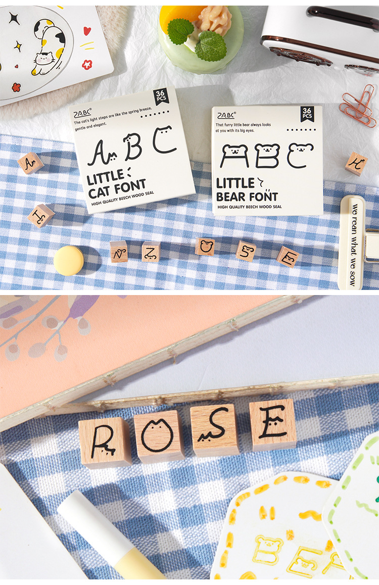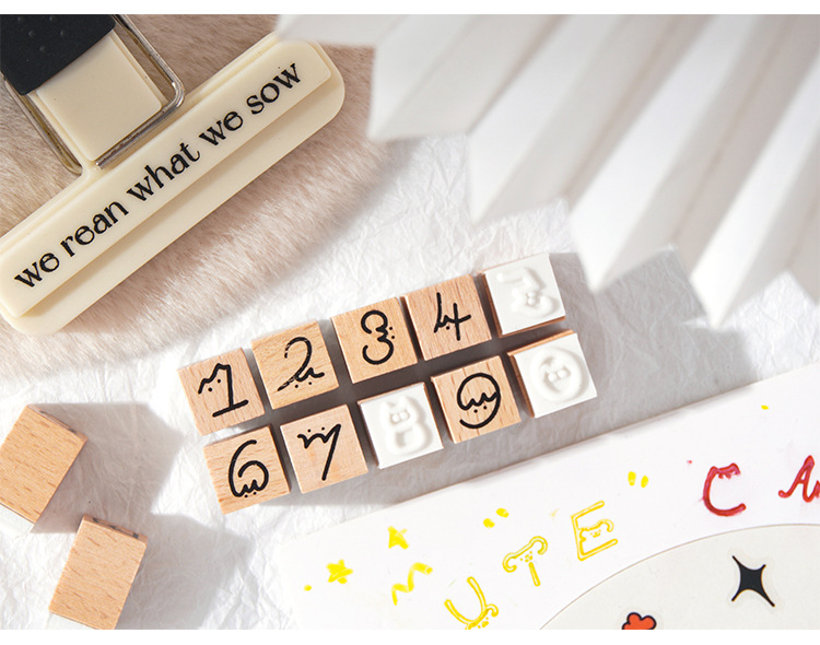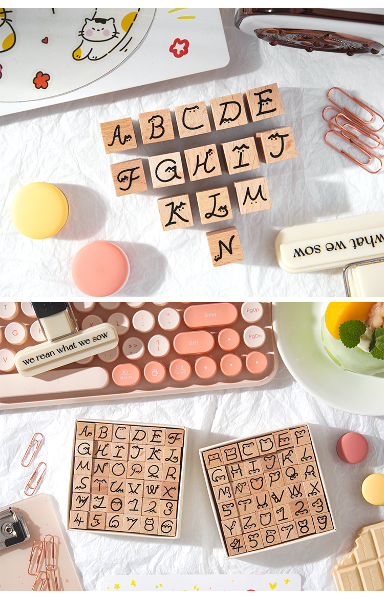 Lucky Seal Series Cartoon Letter Madera Seal Set Box Diy Hand Cart Decoration Conjunto de sellos de letras transfronterizas