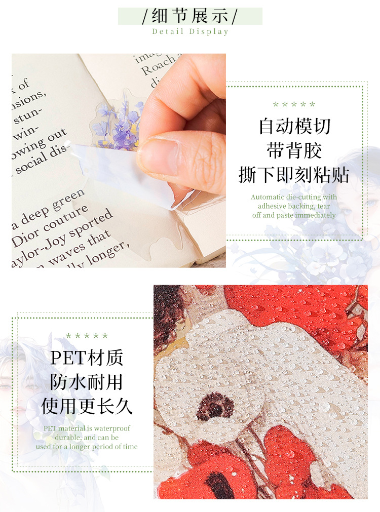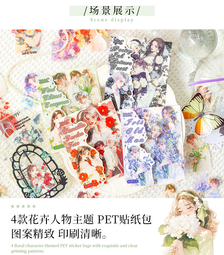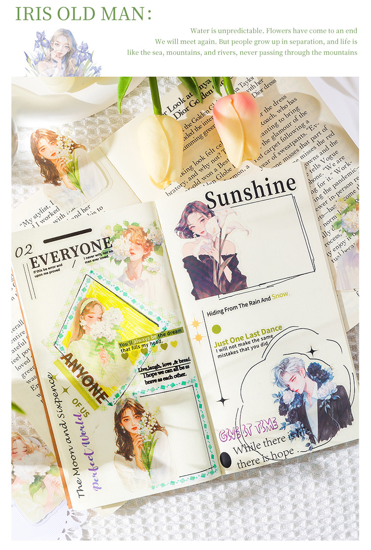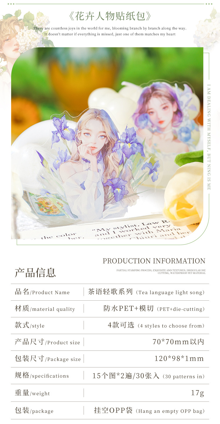 Tea Language Light Song Anime Flower Personaje Tema Pegatinas PET Material de decoración de cuentas de mano de bricolaje Paquete de pegatinas de personajes