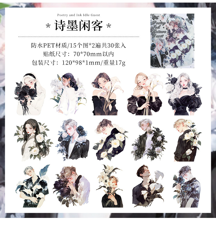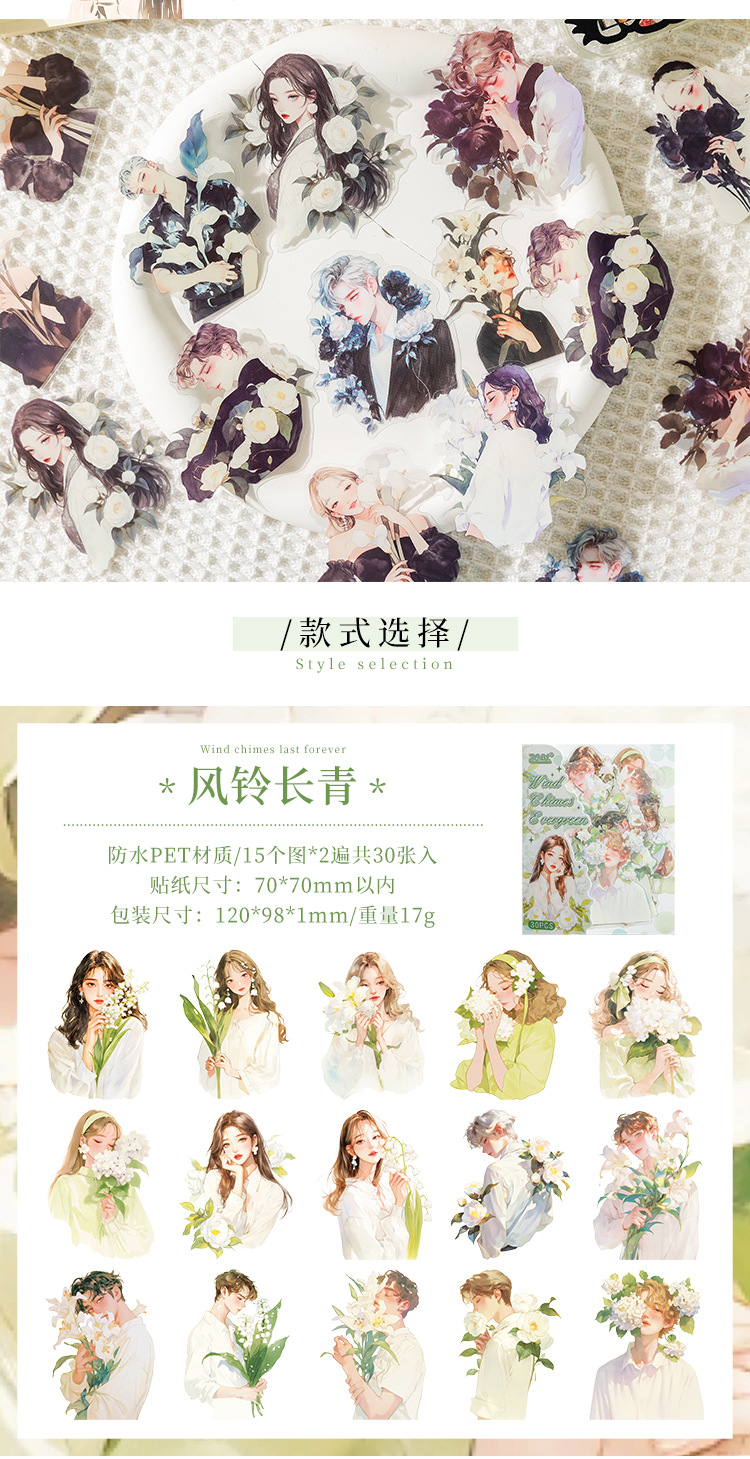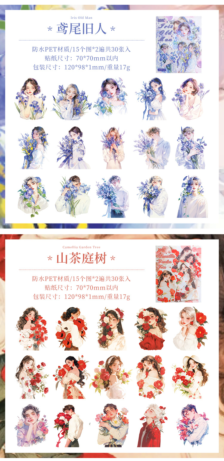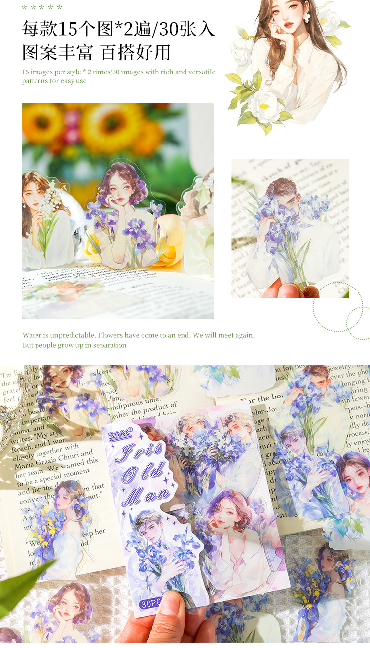 Tea Language Light Song Anime Flower Personaje Tema Pegatinas PET Material de decoración de cuentas de mano de bricolaje Paquete de pegatinas de personajes