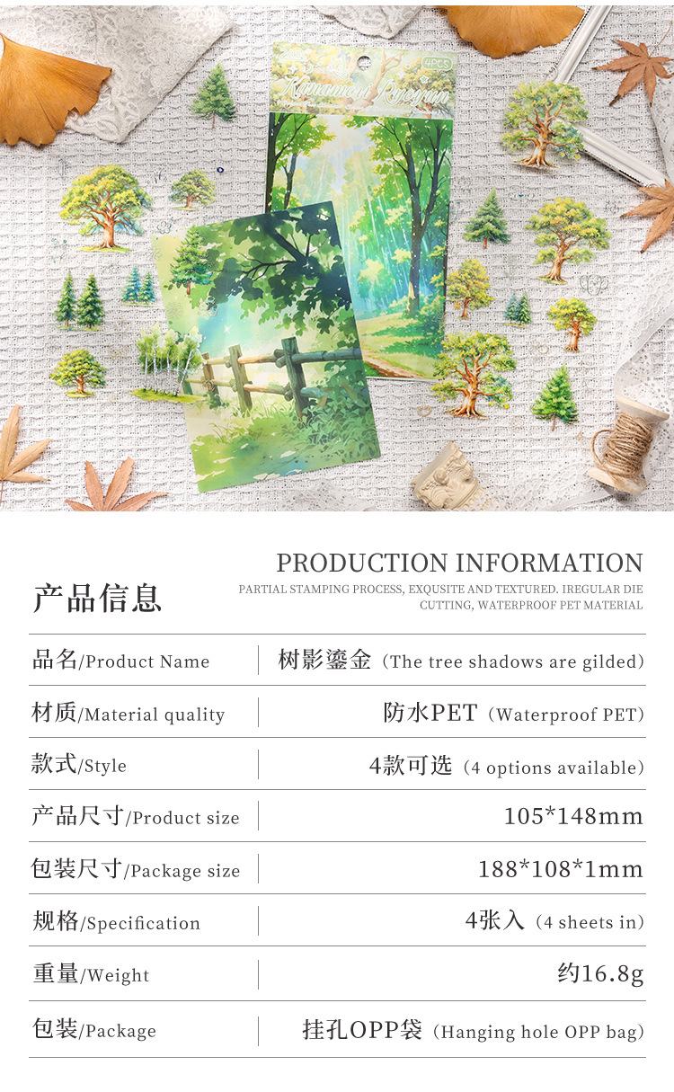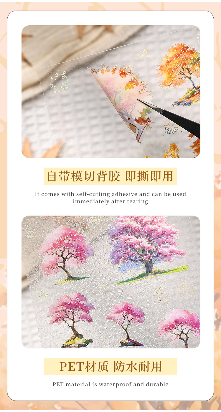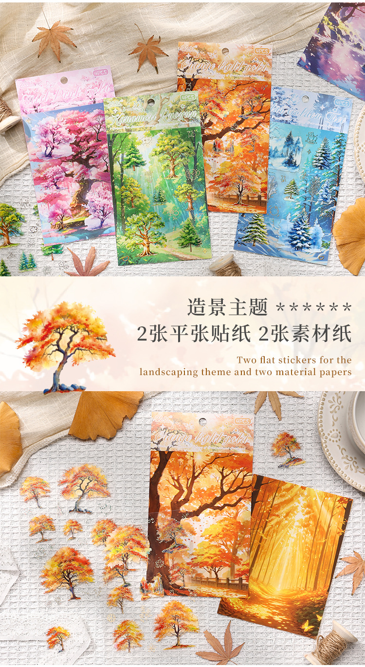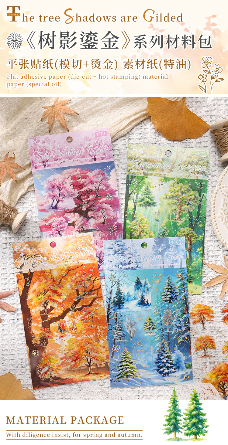 Sombra de árbol serie dorada paisaje de cuatro estaciones aceite especial bronceado pet cuenta manual bricolaje material decorativo collage paisajismo pegatinas