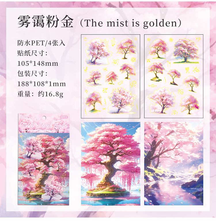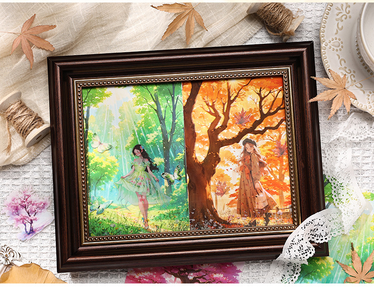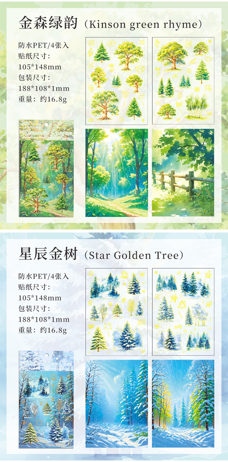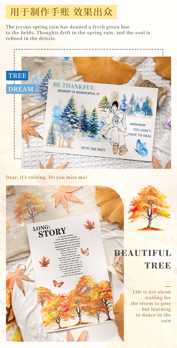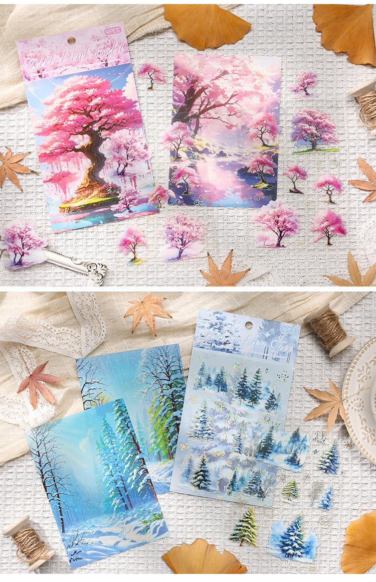 Sombra de árbol serie dorada paisaje de cuatro estaciones aceite especial bronceado pet cuenta manual bricolaje material decorativo collage paisajismo pegatinas