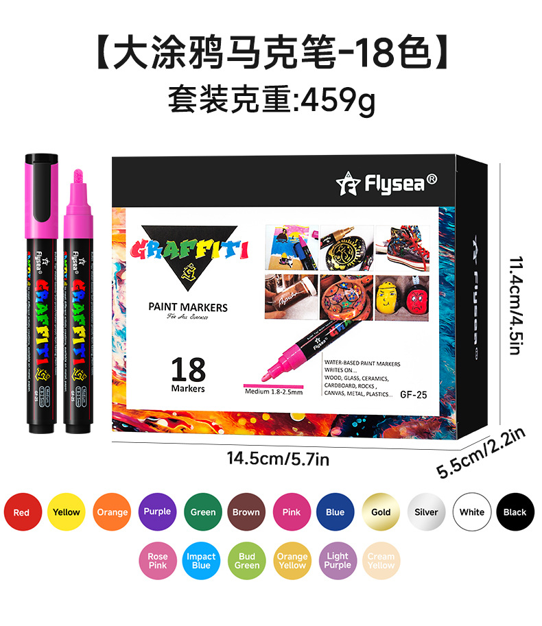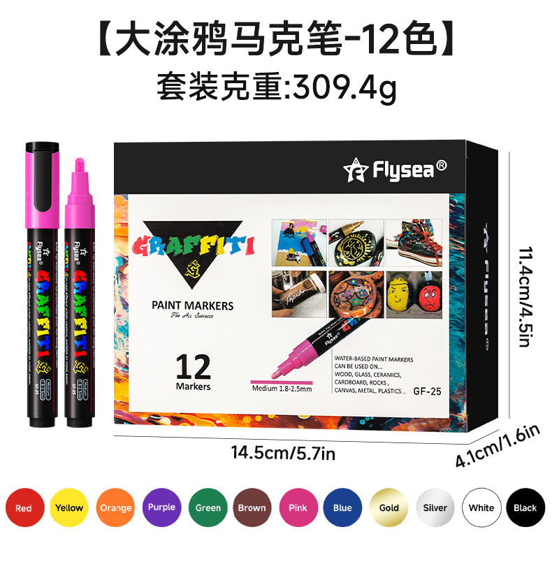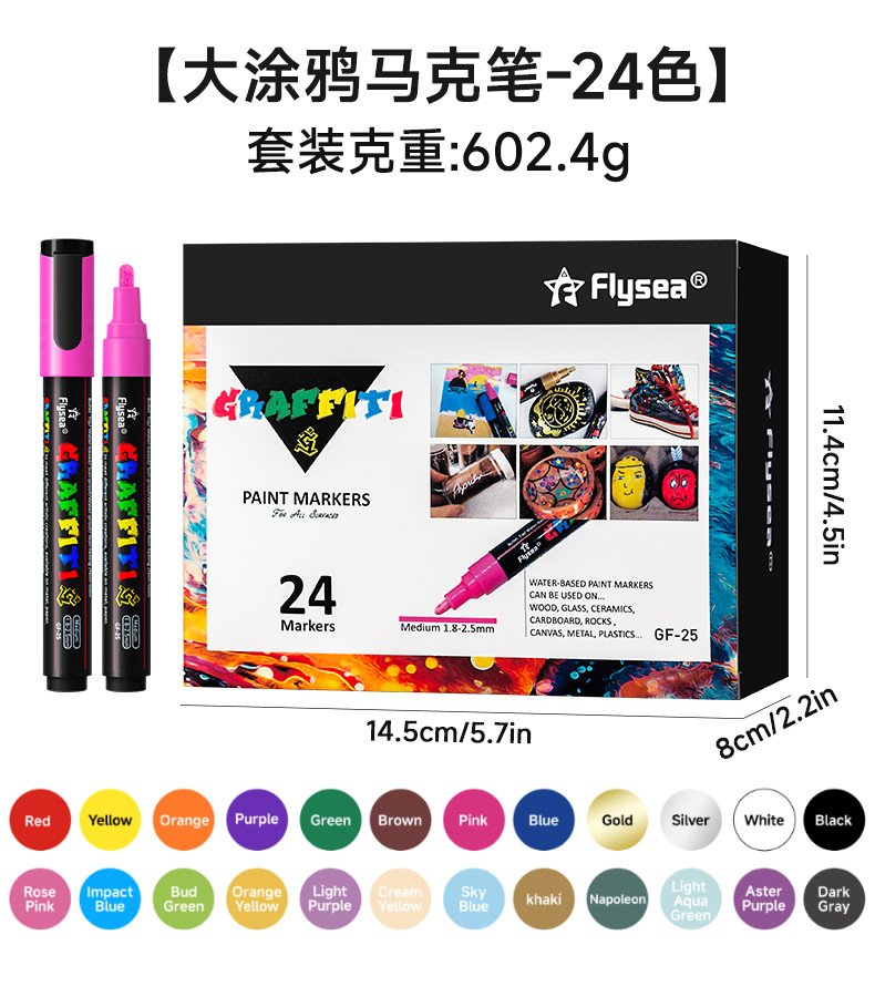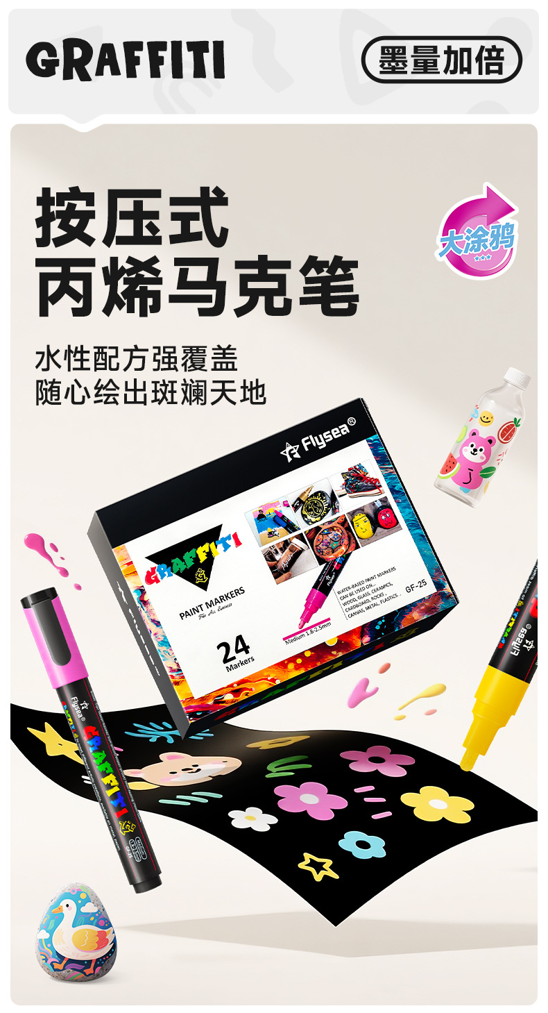 Bolígrafo acrílico tipo válvula Flysea, papel impermeable de gran capacidad, color superpuesto, pintura de graffiti de bricolaje, pincel de arte