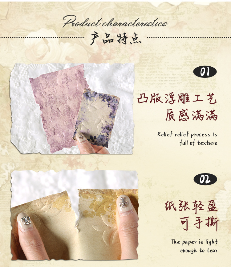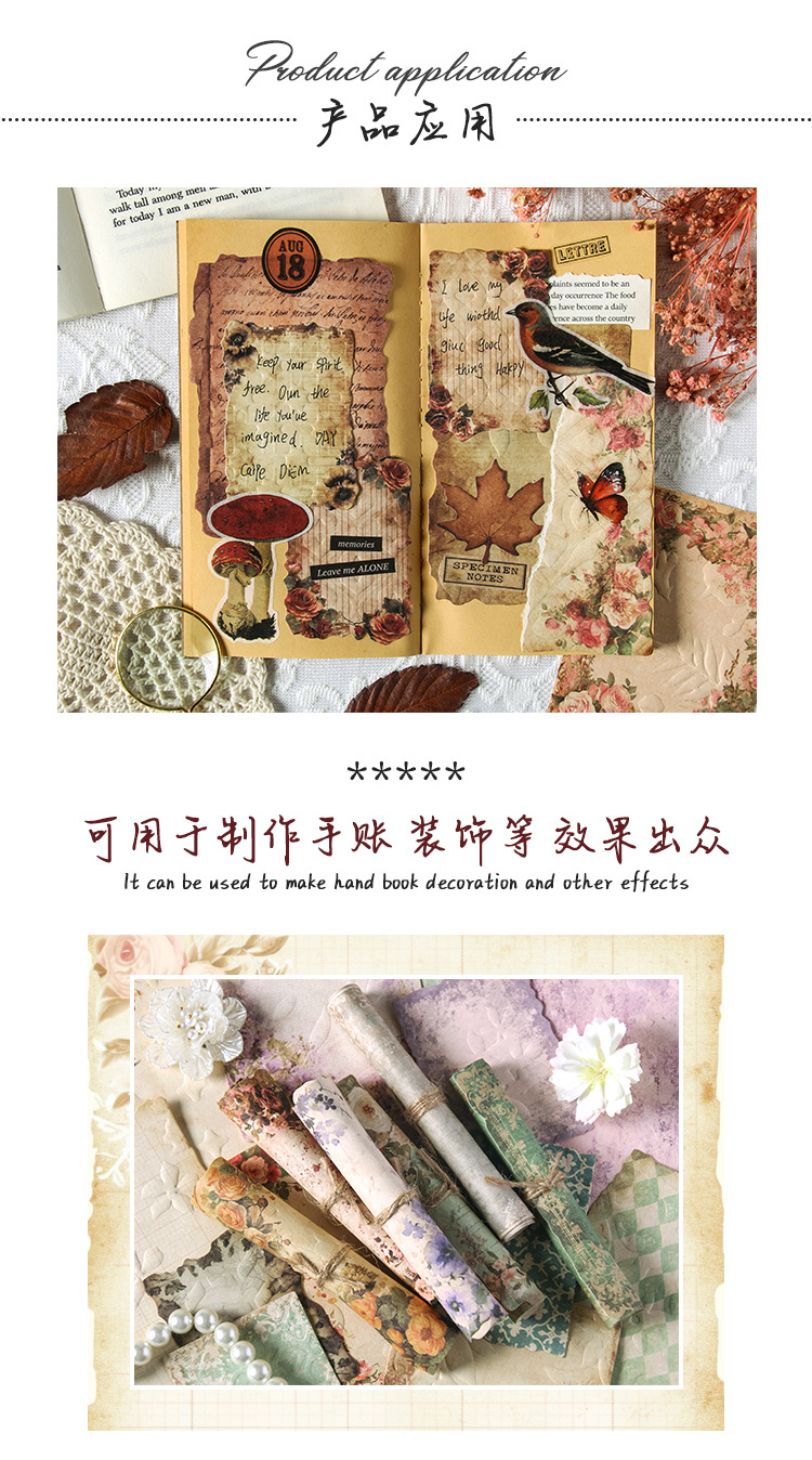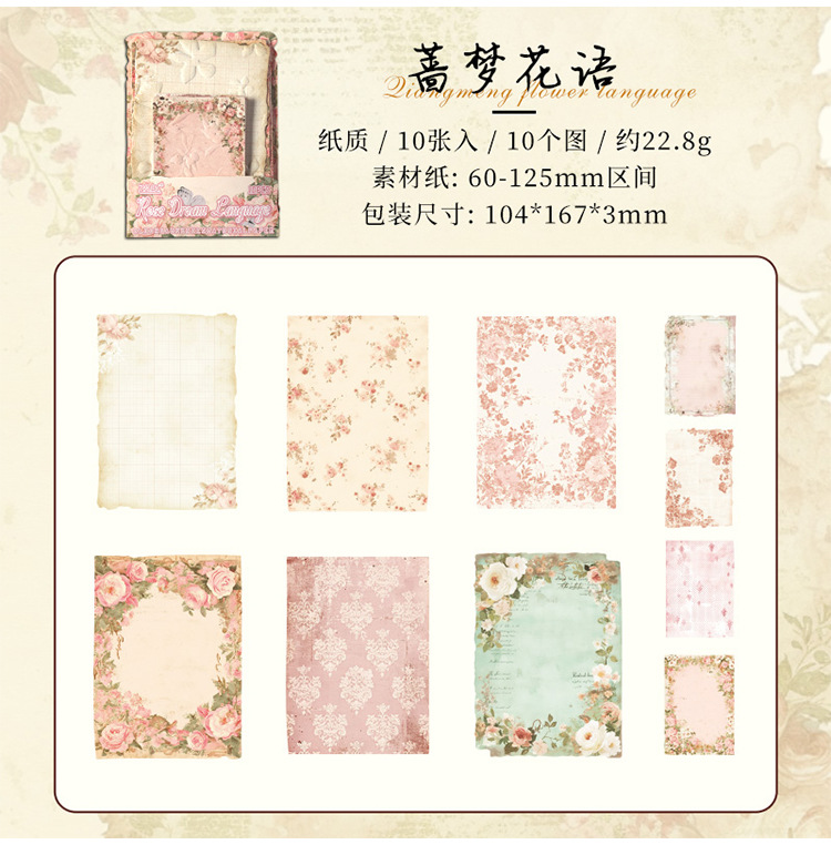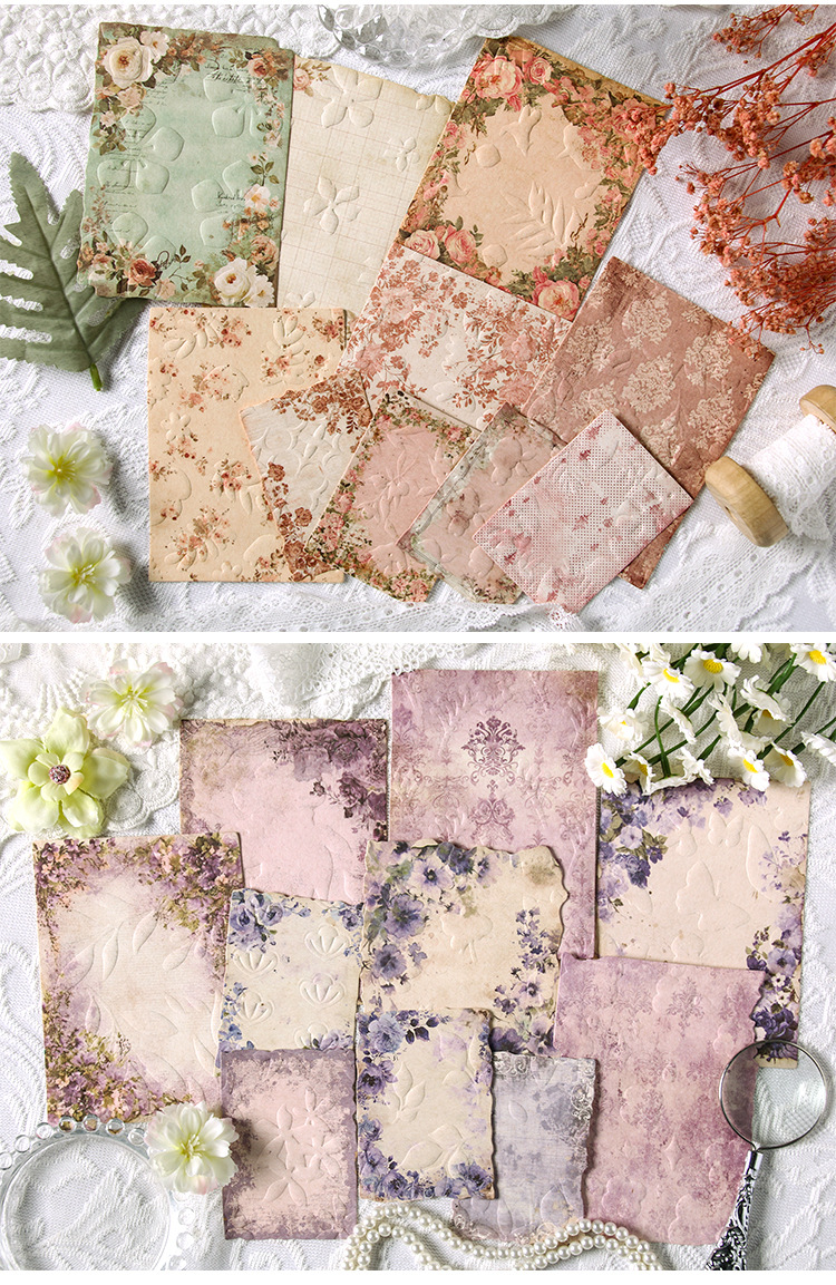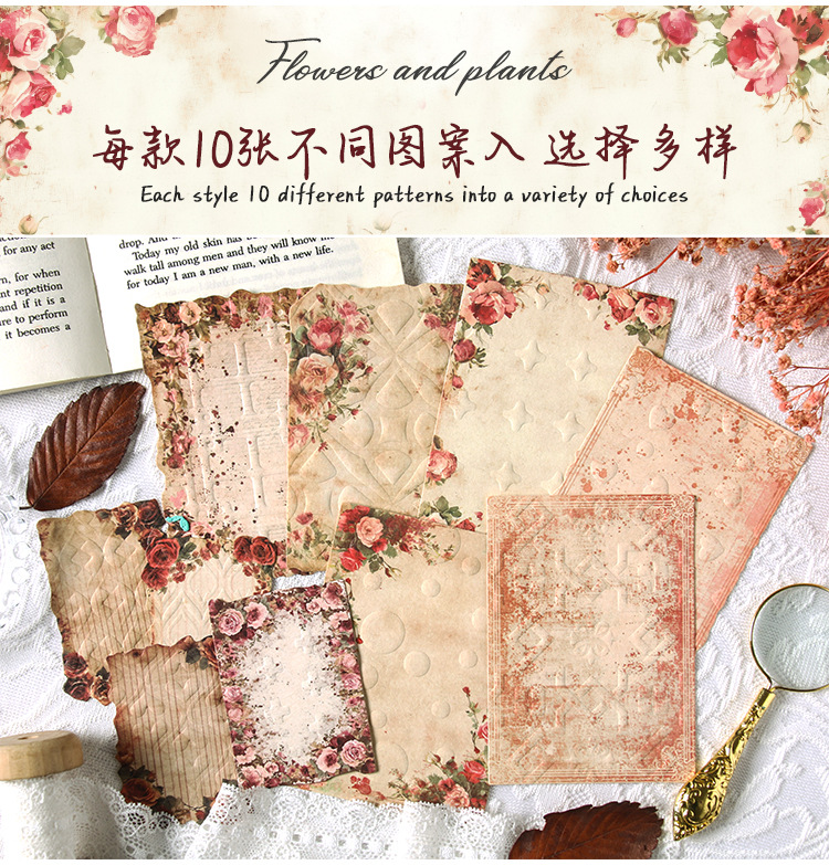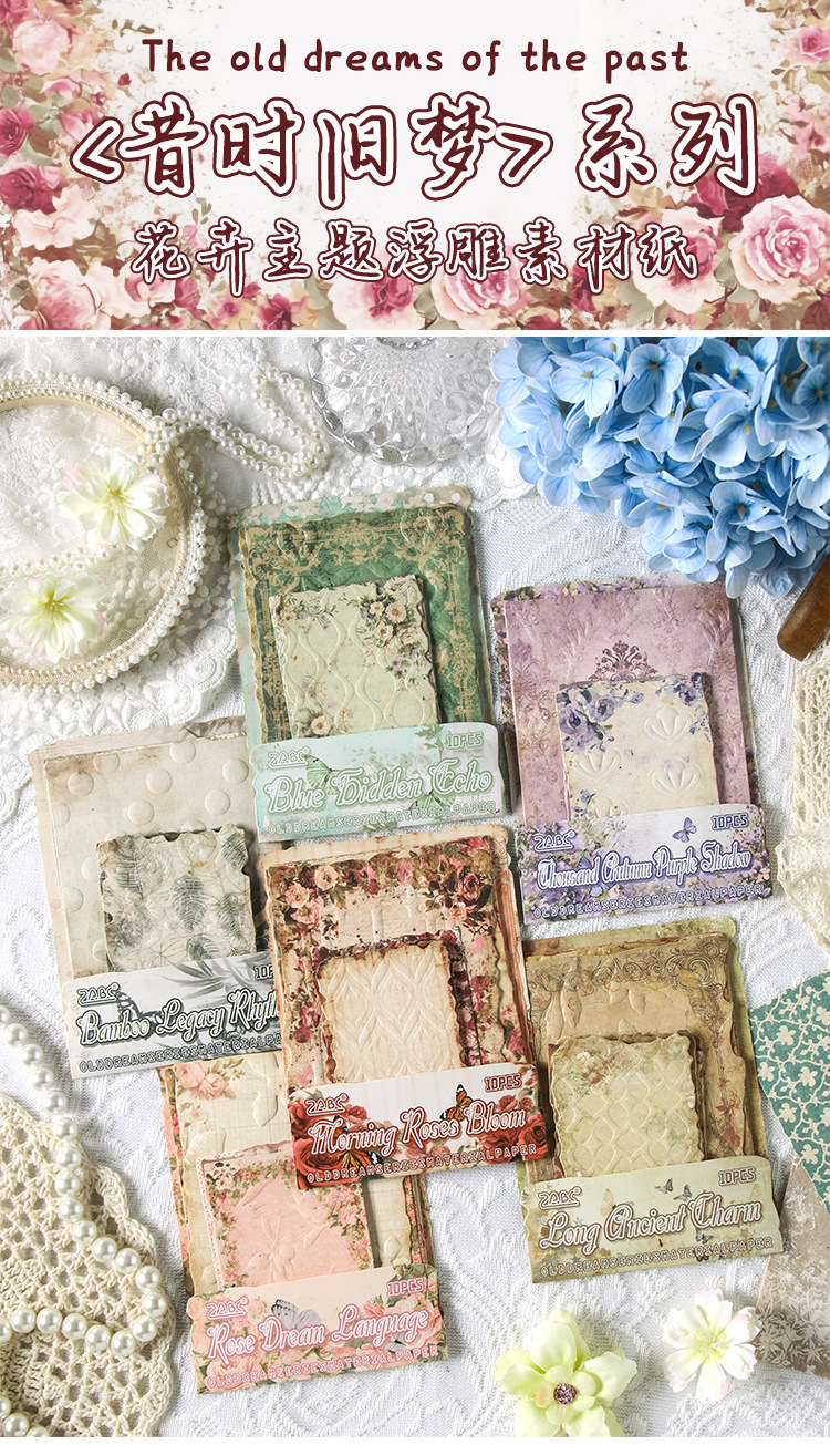 En el pasado, el viejo sueño retro libro de mano en relieve papel de material floral DIY transfronterizo libro de mano decoración diario collage papel de fondo