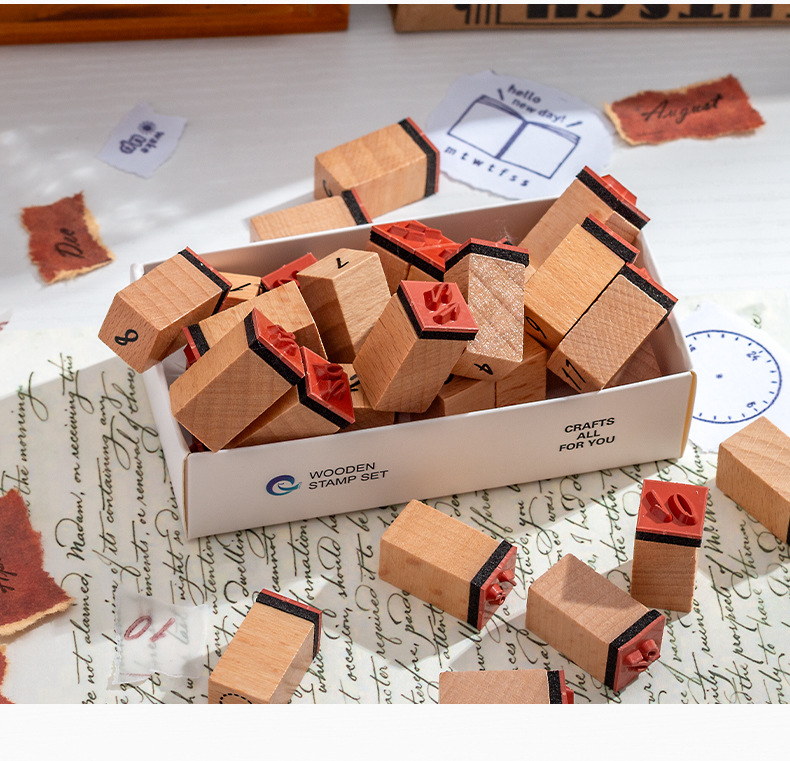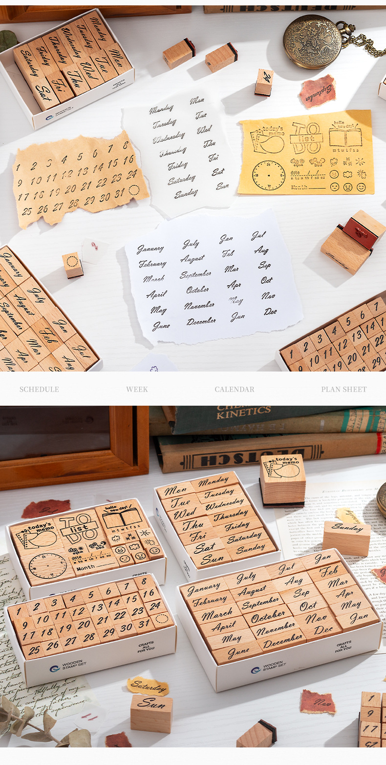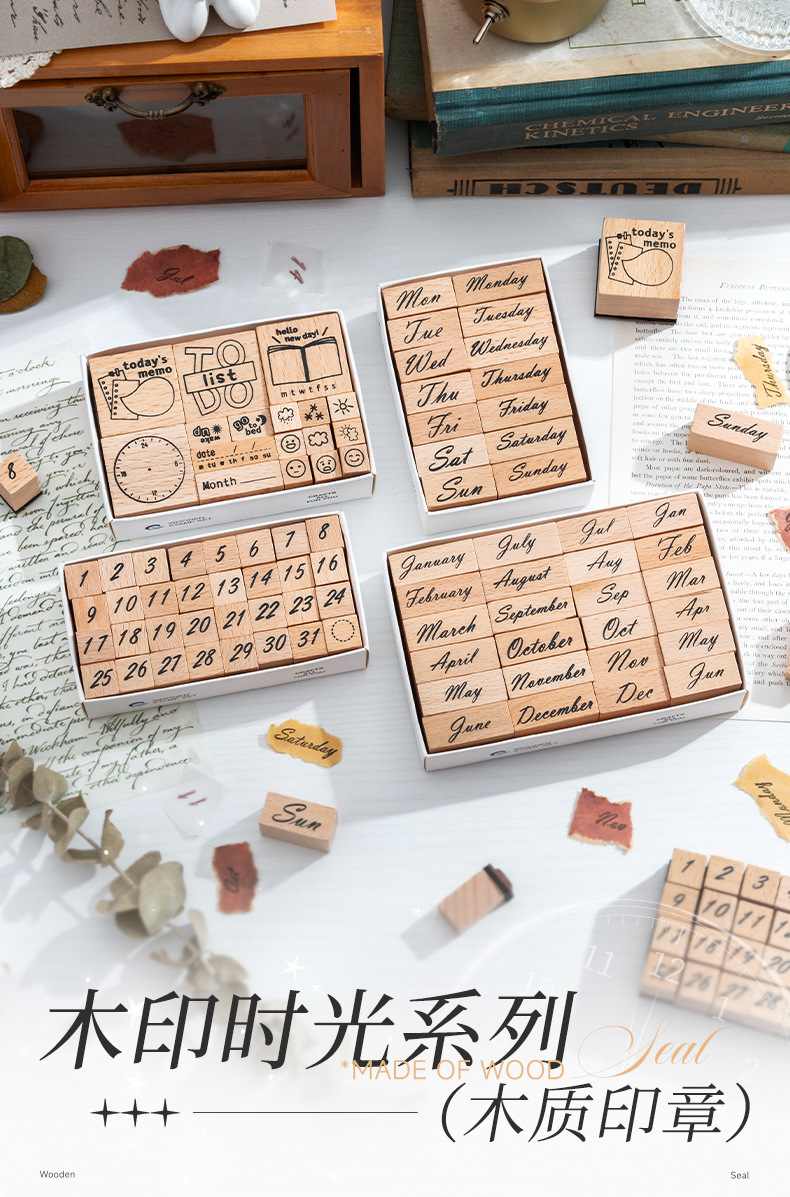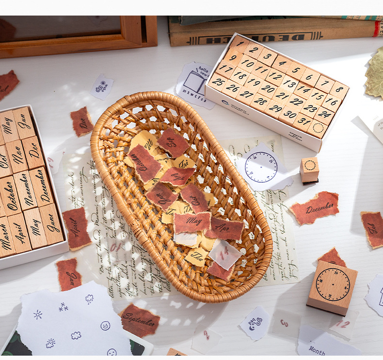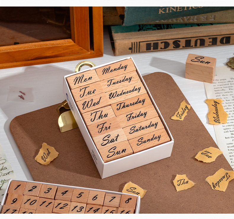 Sello de madera Tiempo Sello de madera Juego de cajas Mes de la semana Decoración de la cuenta manual digital Fecha transfronteriza Plan Sello de tiempo
