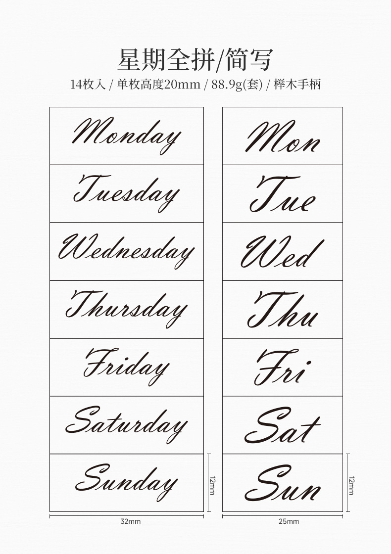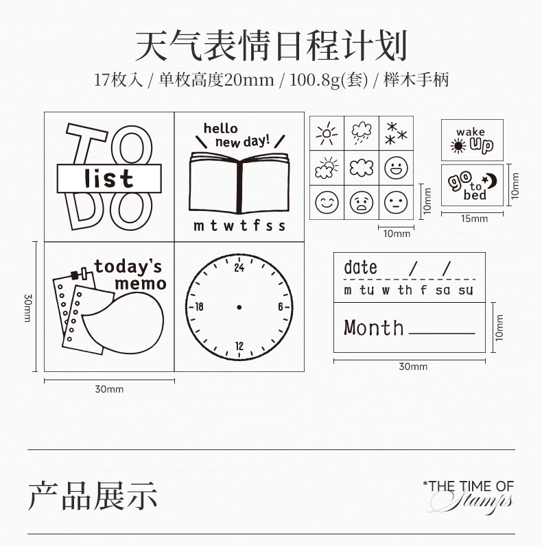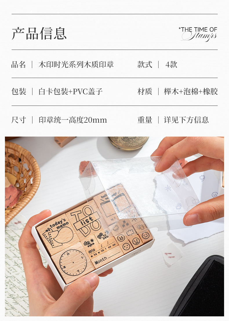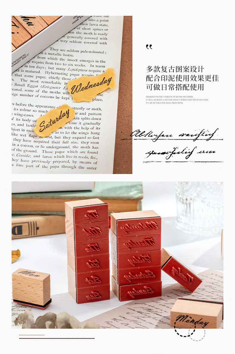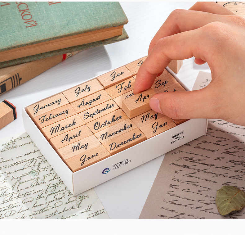 Sello de madera Tiempo Sello de madera Juego de cajas Mes de la semana Decoración de la cuenta manual digital Fecha transfronteriza Plan Sello de tiempo