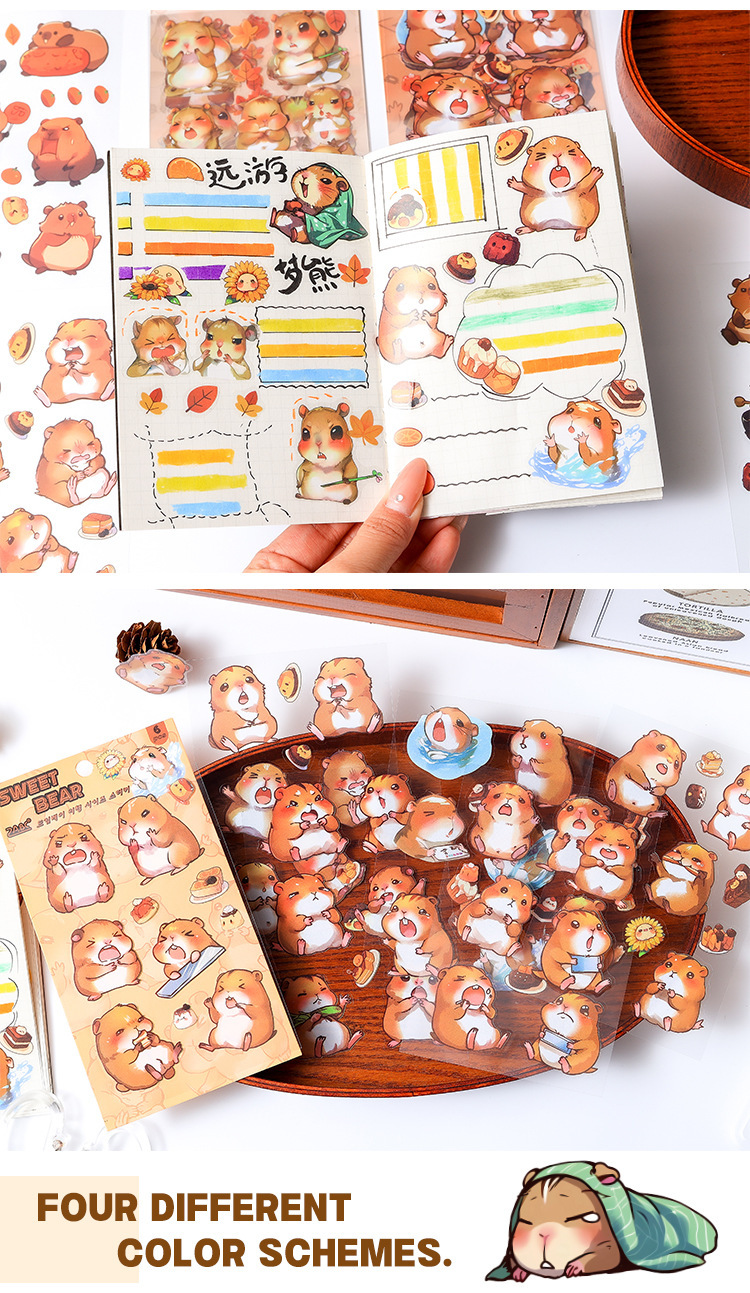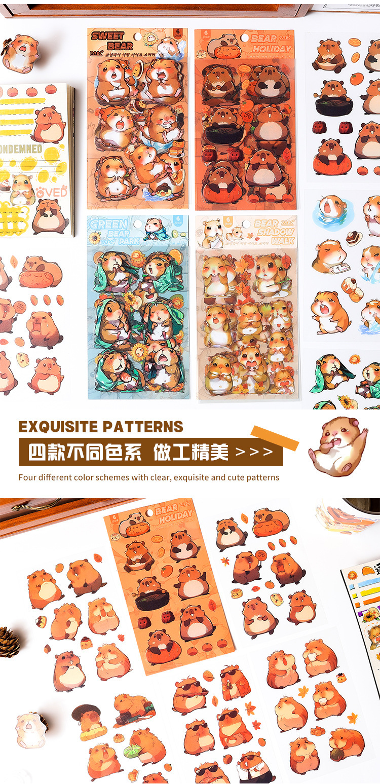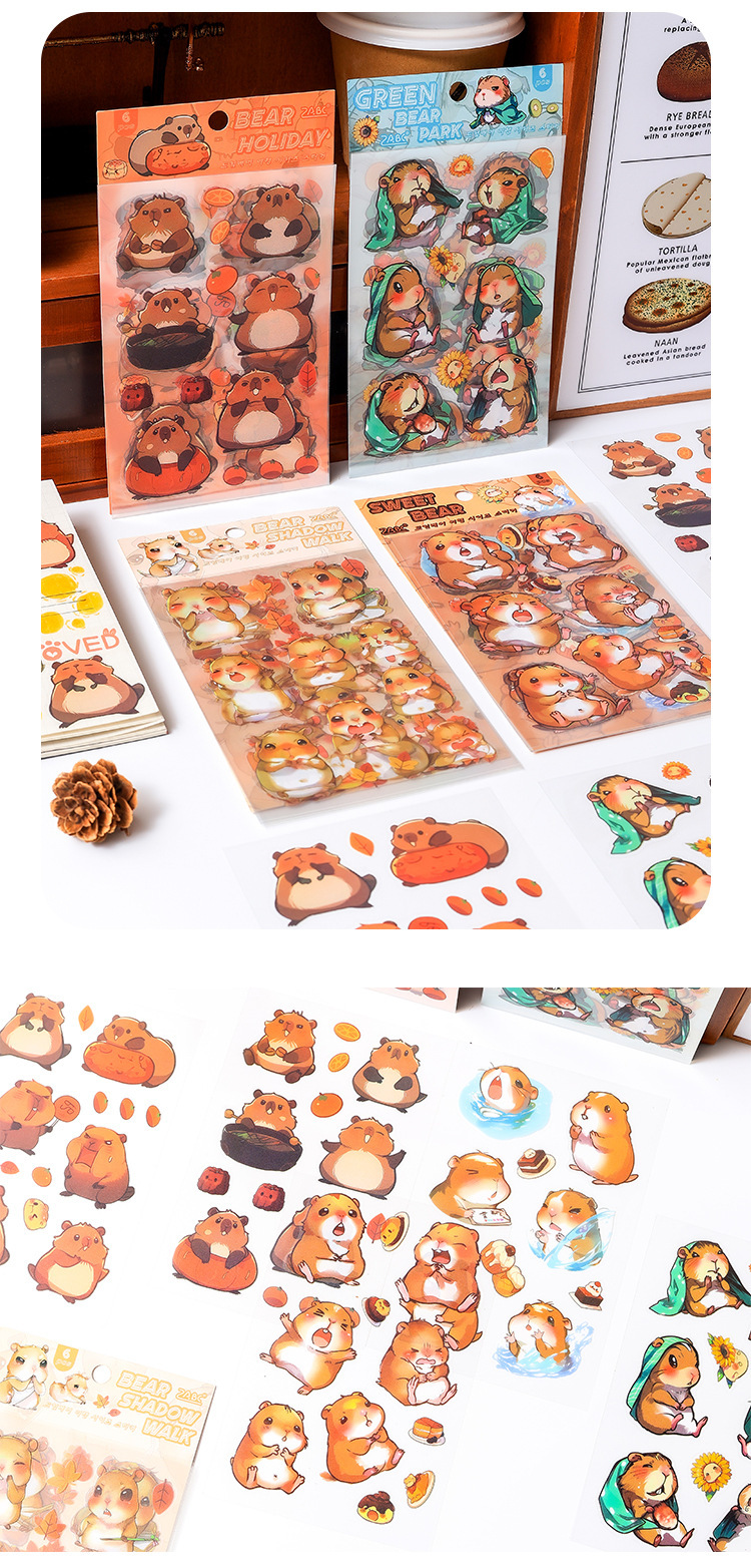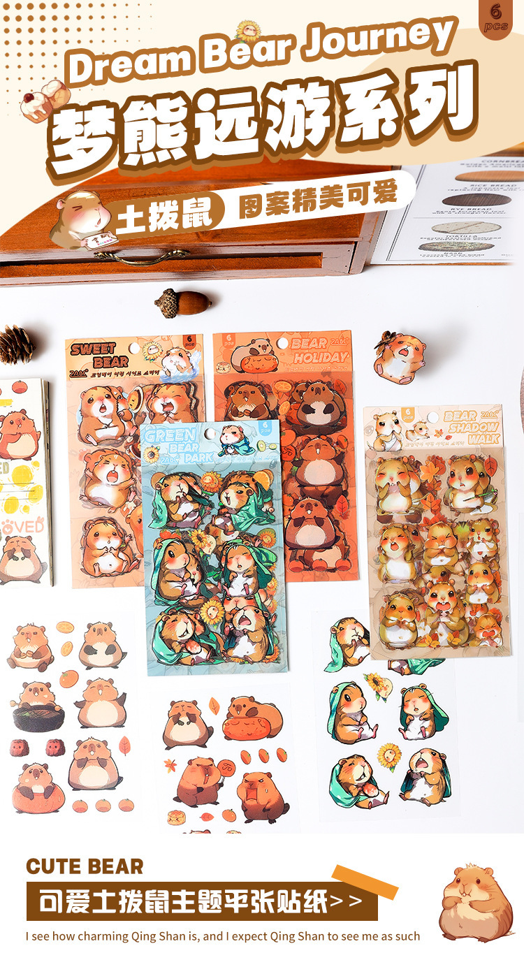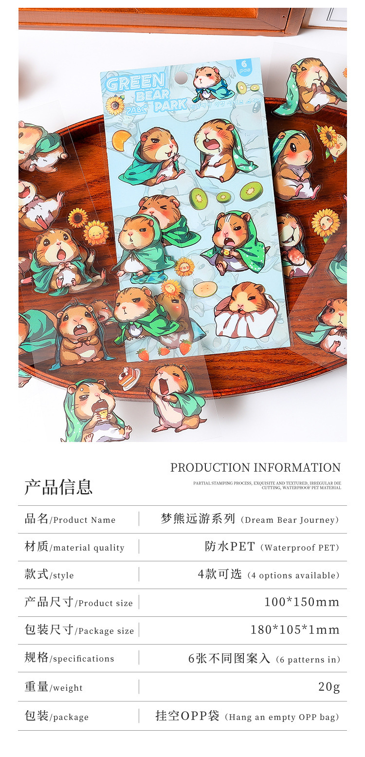 Dream Bear Journey Pegatinas de pet transparentes a prueba de agua Pegatinas de diario de facturación de bricolaje Pegatinas de conejillo de indias de animales de dibujos animados transfronterizos
