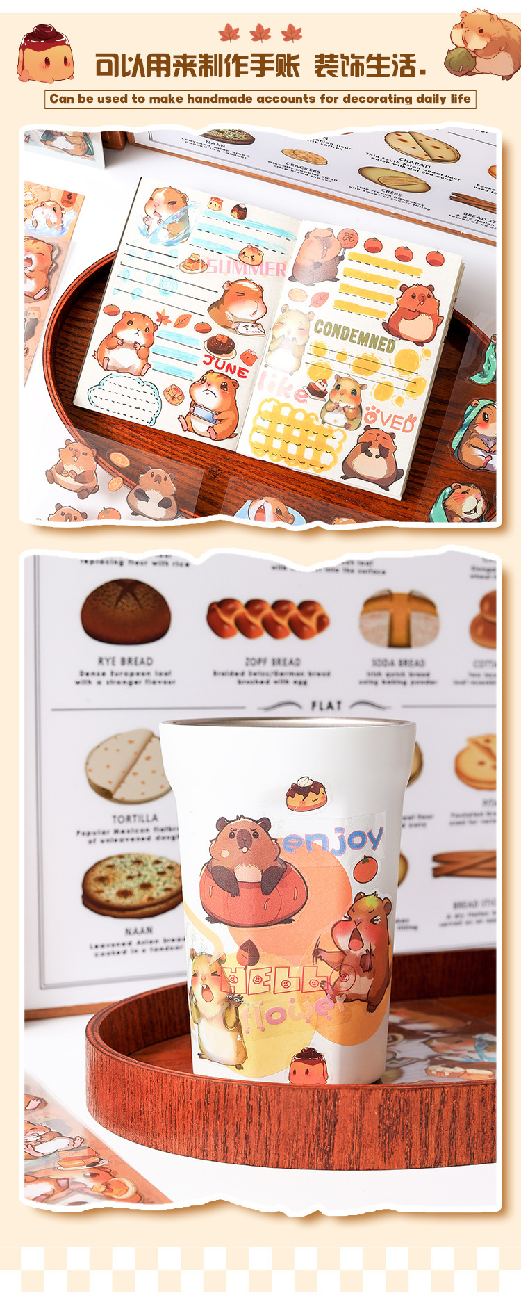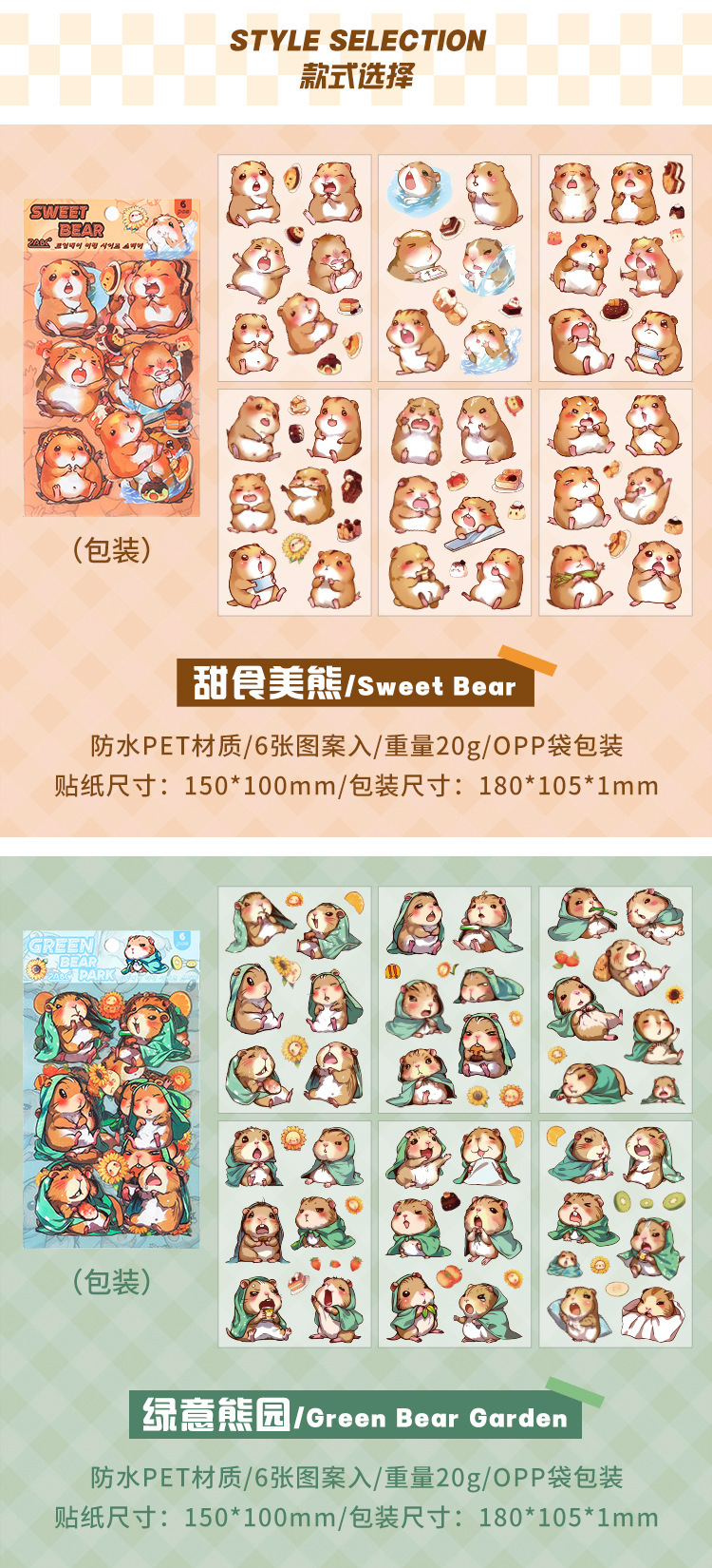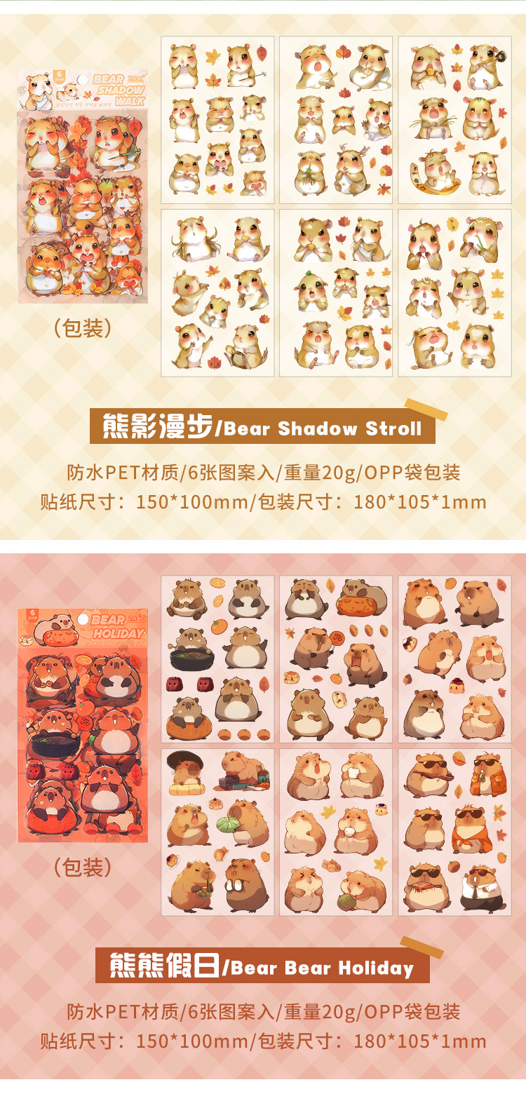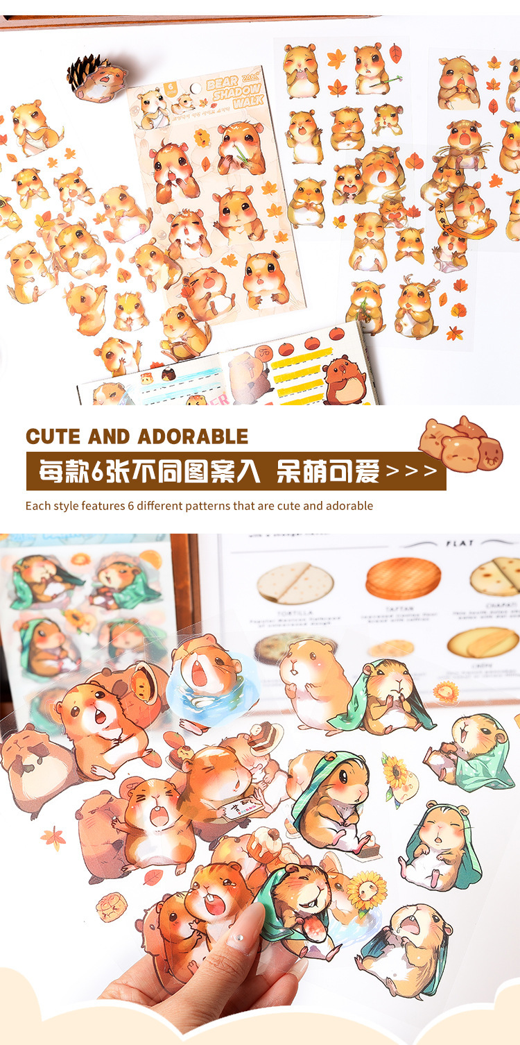 Dream Bear Journey Pegatinas de pet transparentes a prueba de agua Pegatinas de diario de facturación de bricolaje Pegatinas de conejillo de indias de animales de dibujos animados transfronterizos