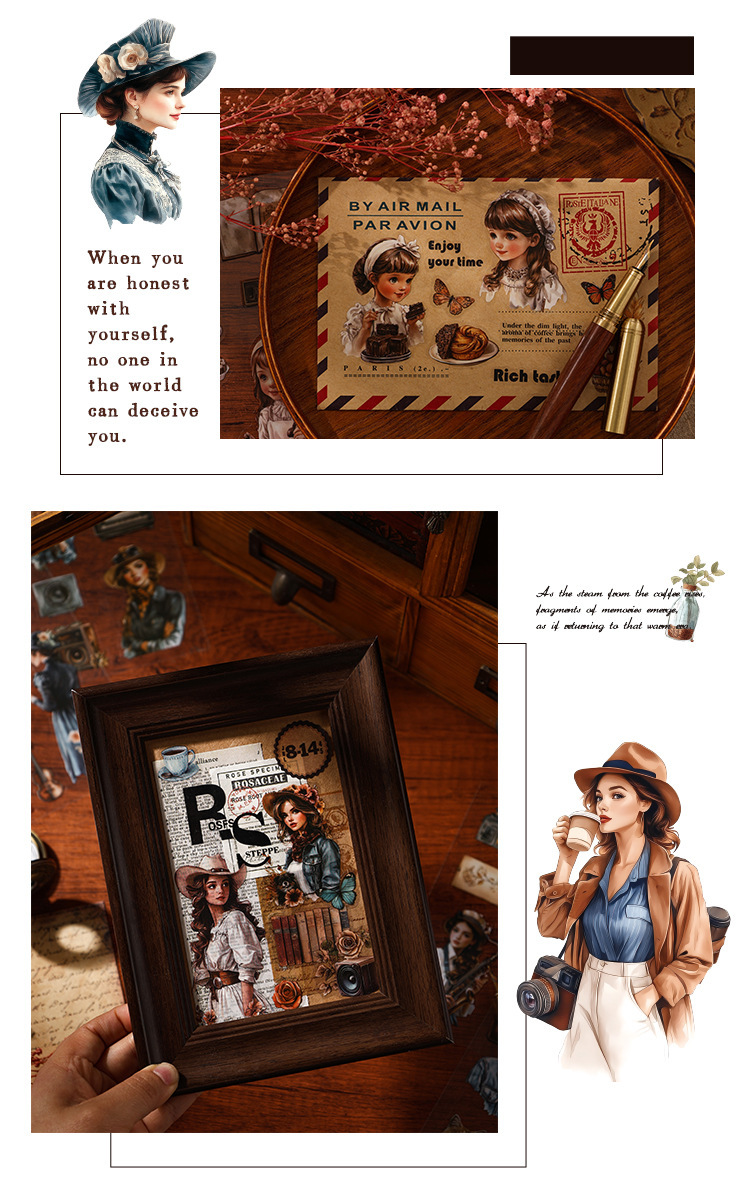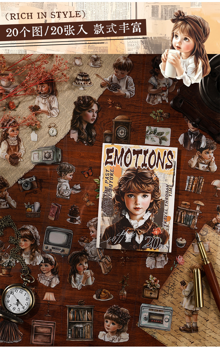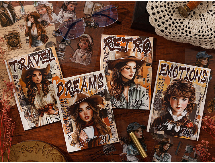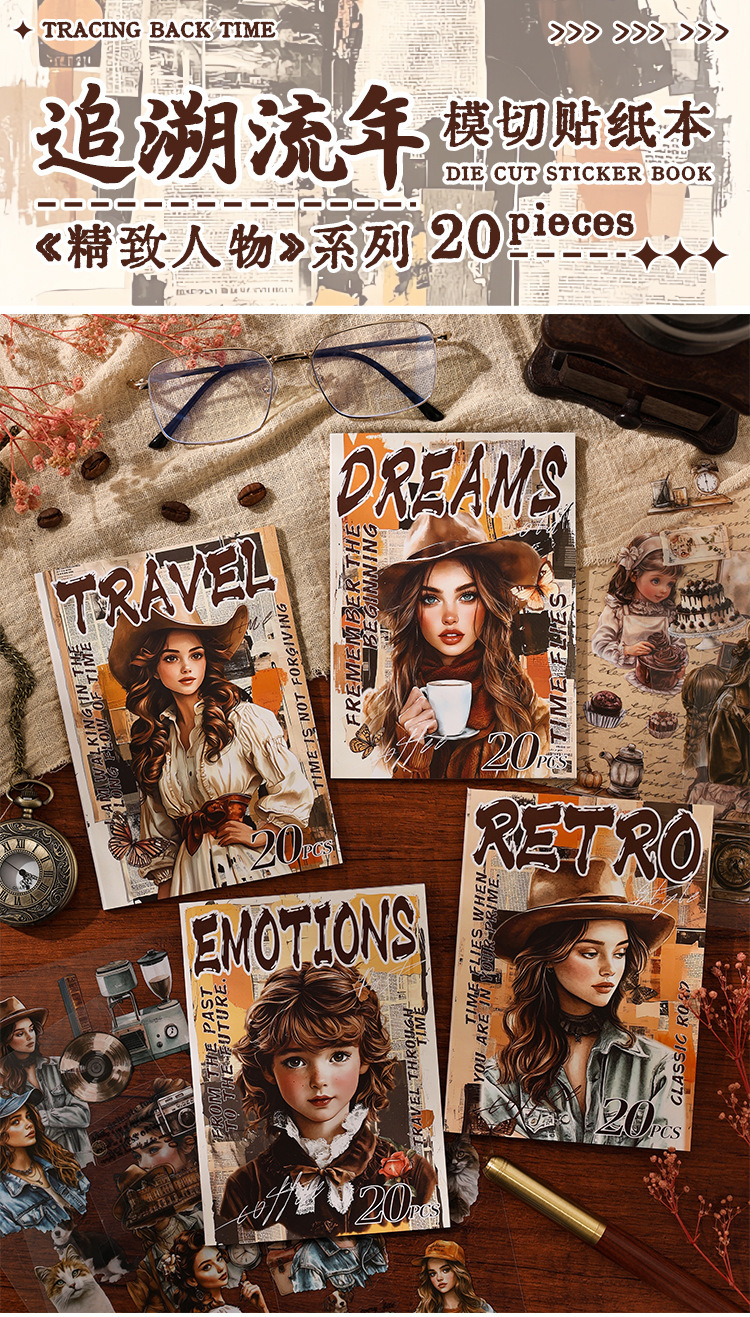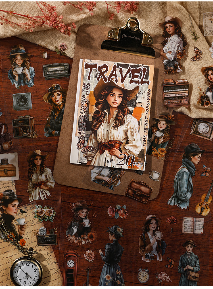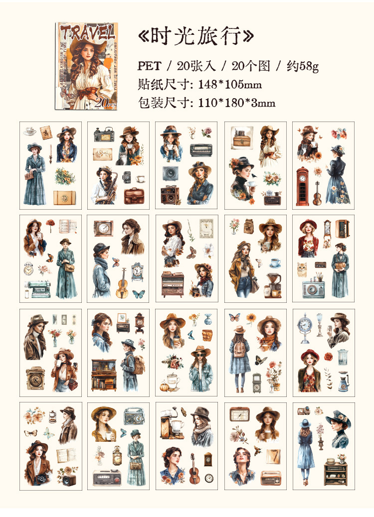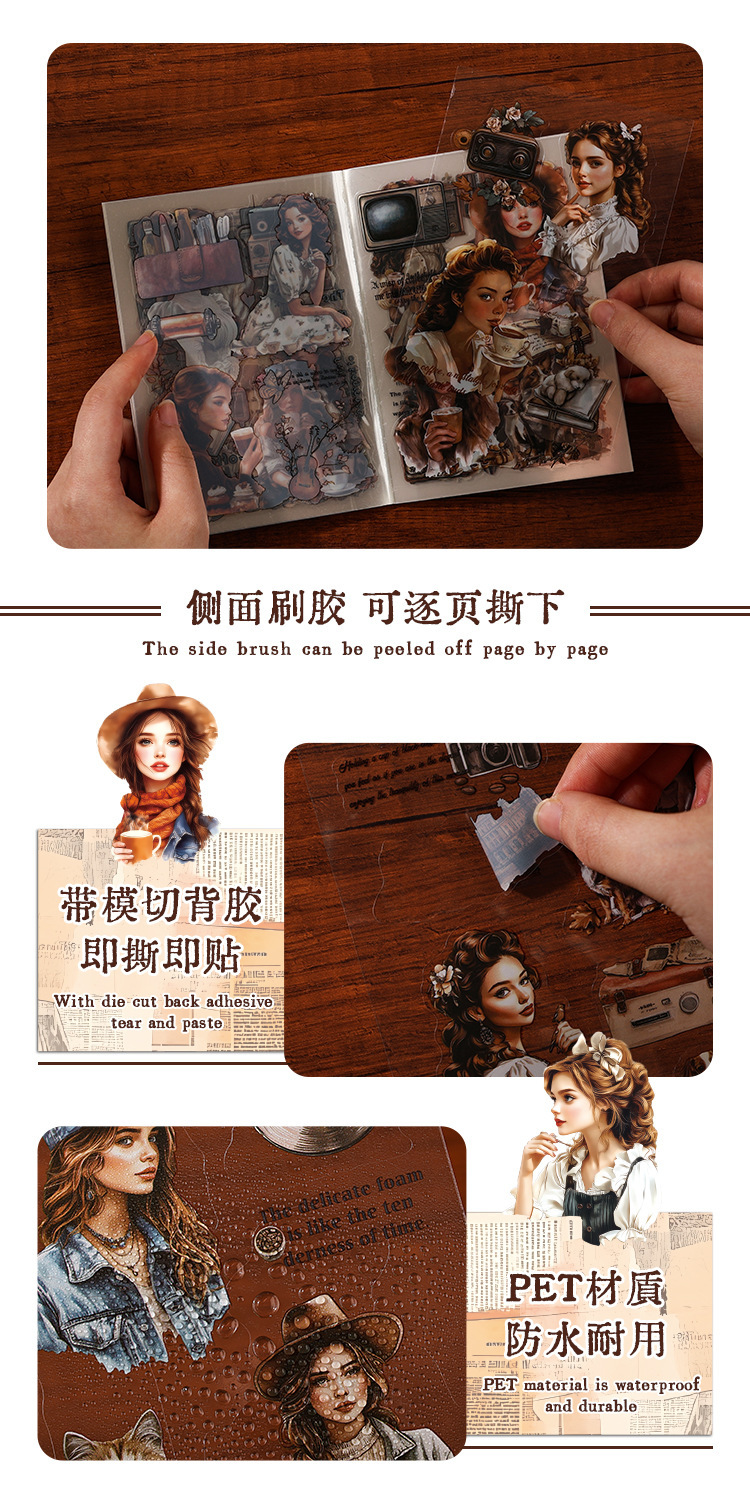 Rastreando los años fugaces, pegatinas de pet transparentes a prueba de agua, pegatinas de diario de bricolaje, pegatinas de chicas europeas retro transfronterizas