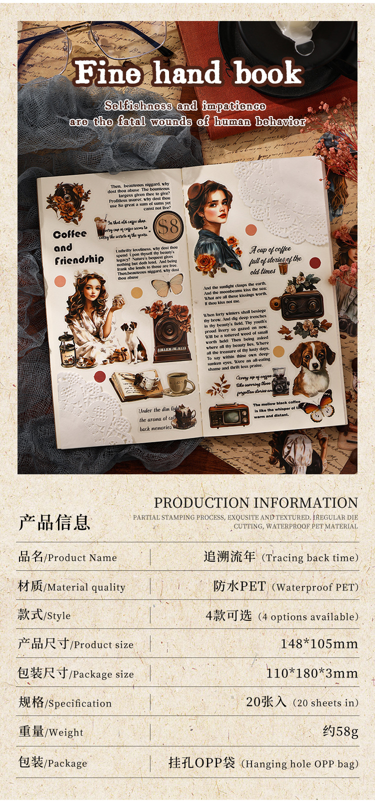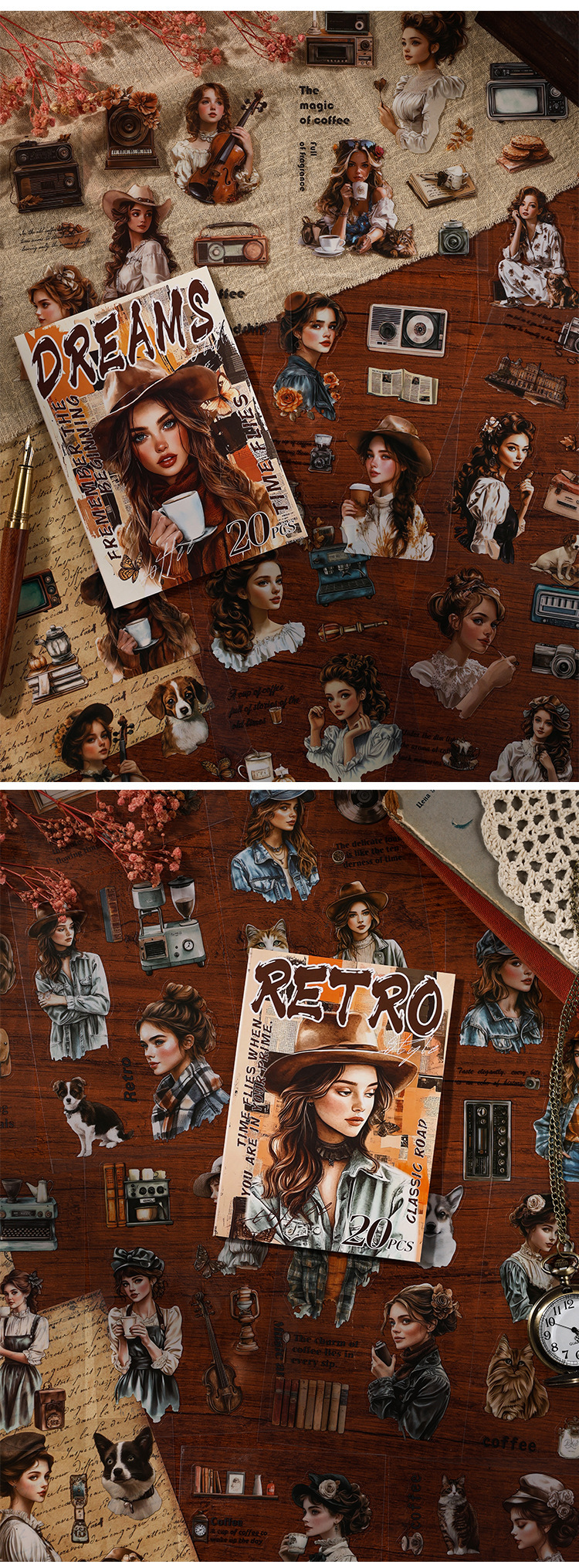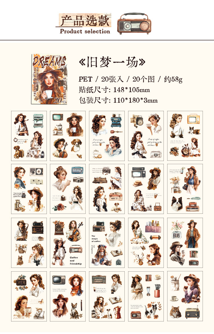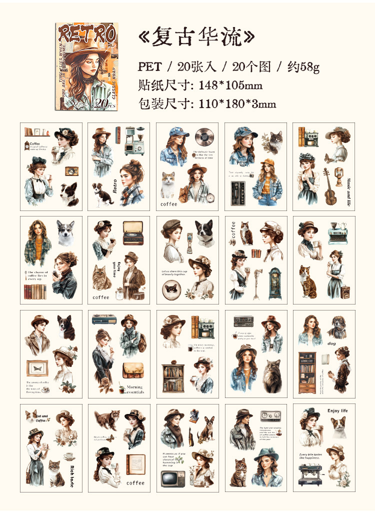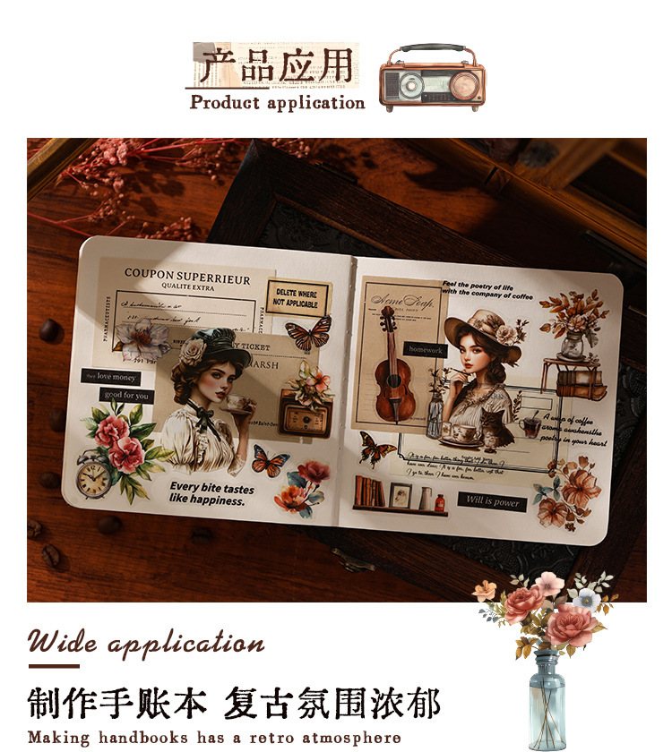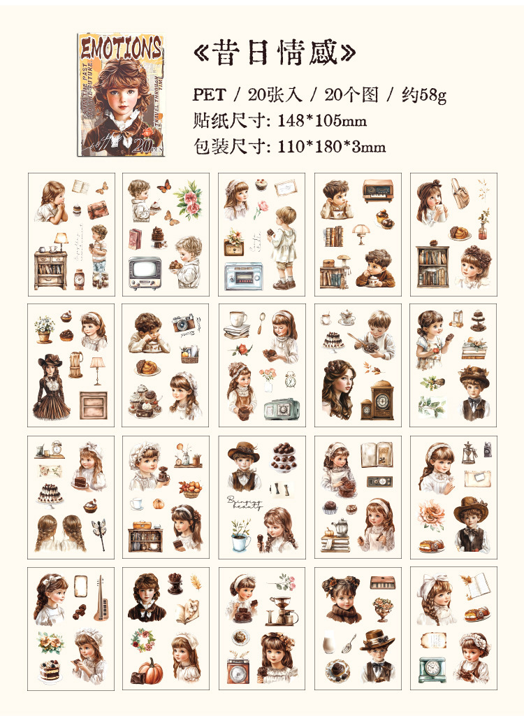 Rastreando los años fugaces, pegatinas de pet transparentes a prueba de agua, pegatinas de diario de bricolaje, pegatinas de chicas europeas retro transfronterizas