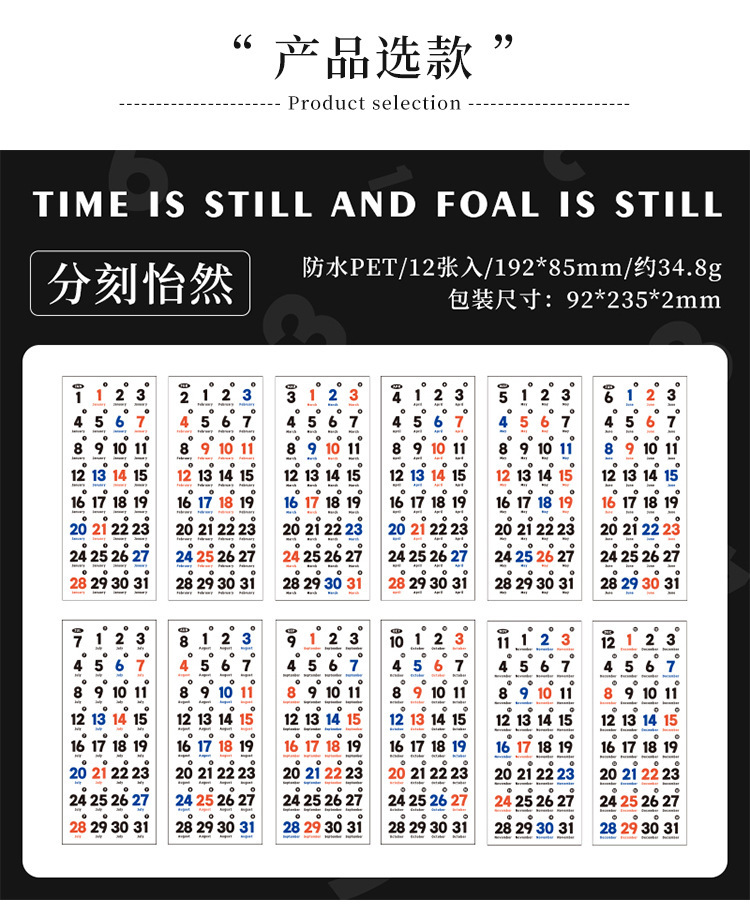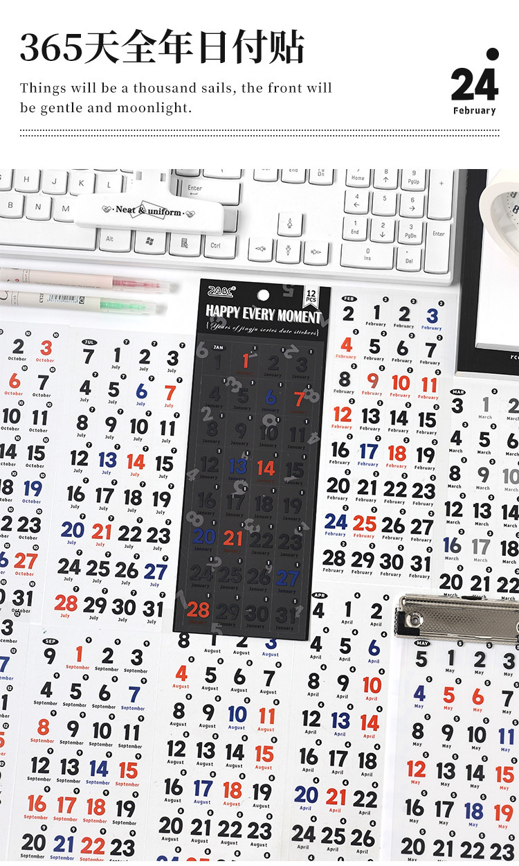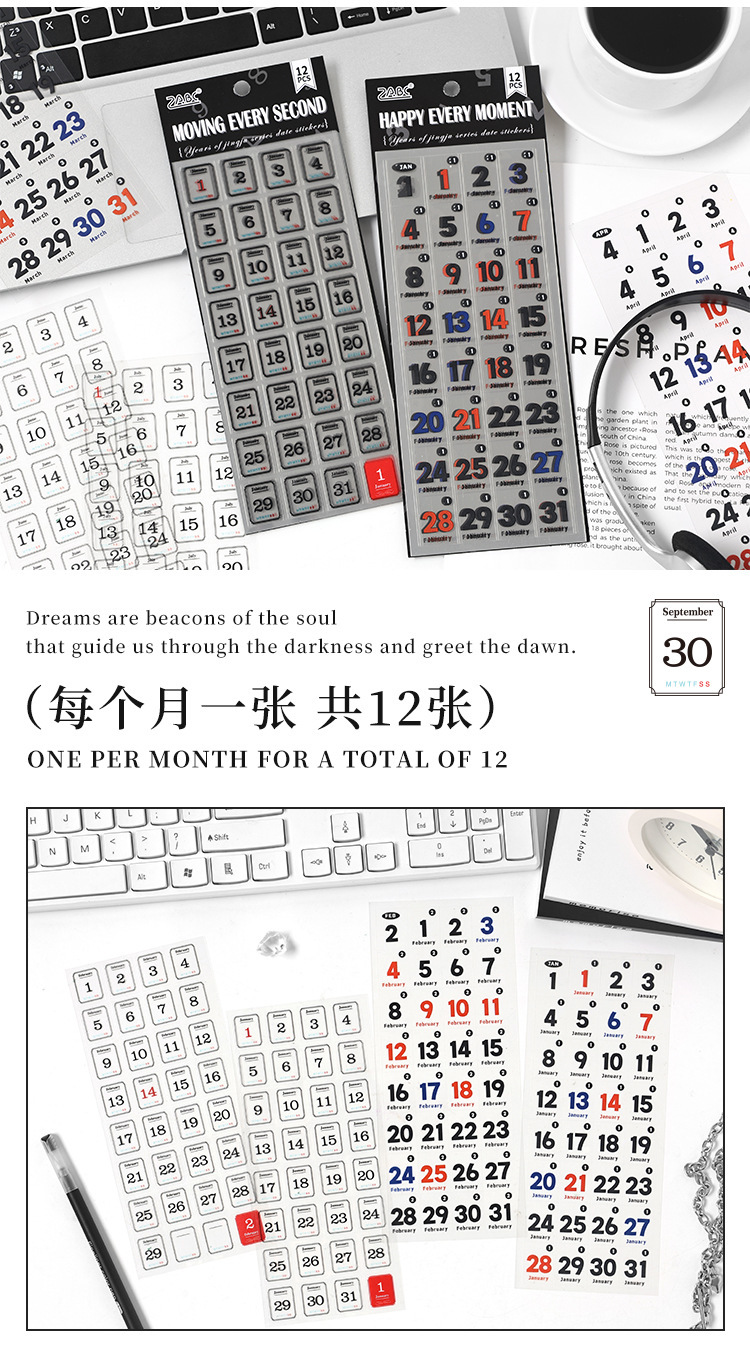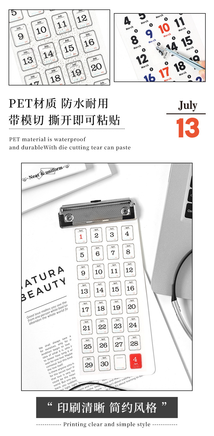 Pegatinas impermeables transparentes para mascotas 365 días de fecha pegatinas transfronterizas de etiquetas transparentes de fecha
