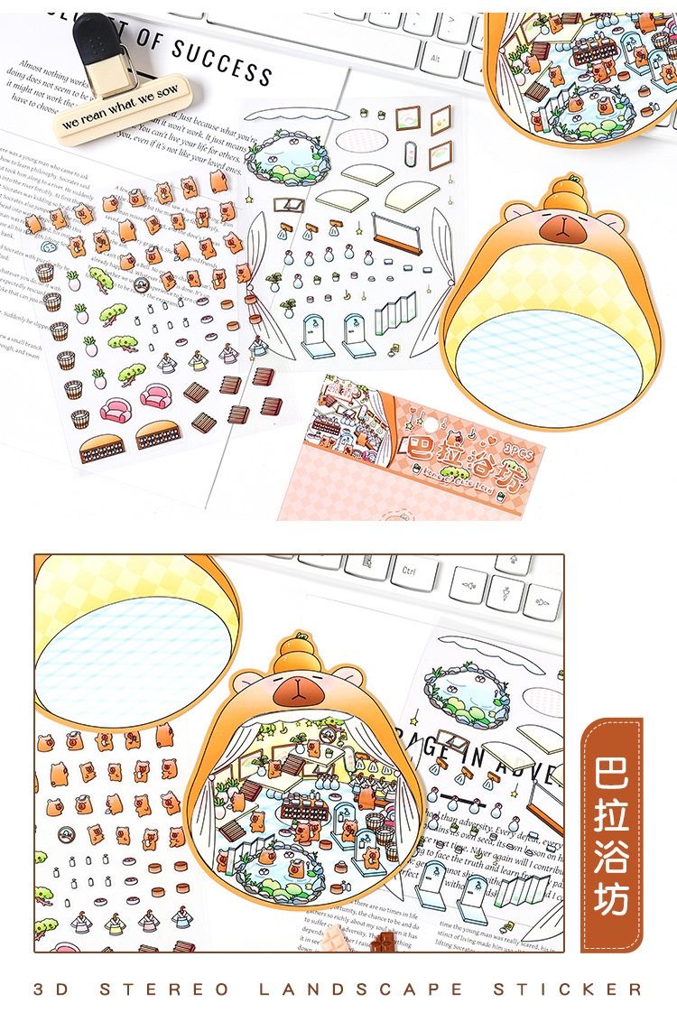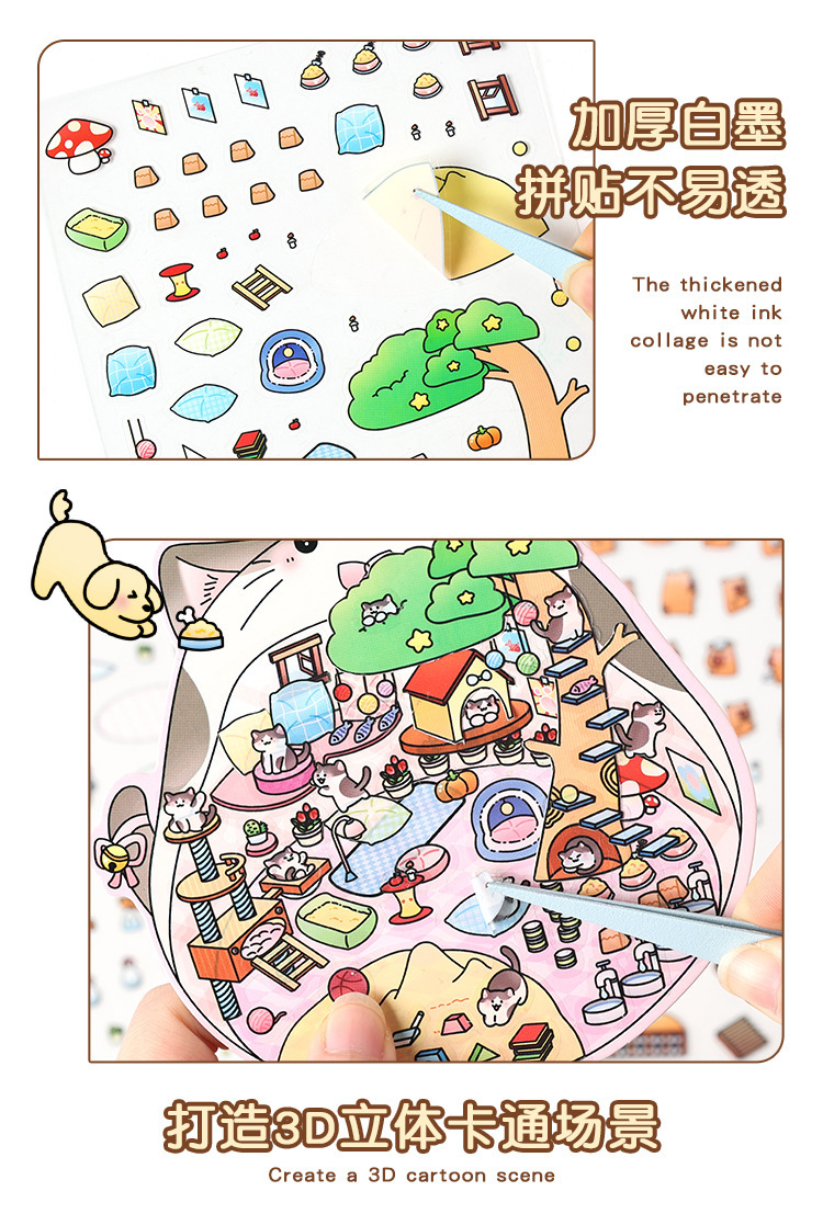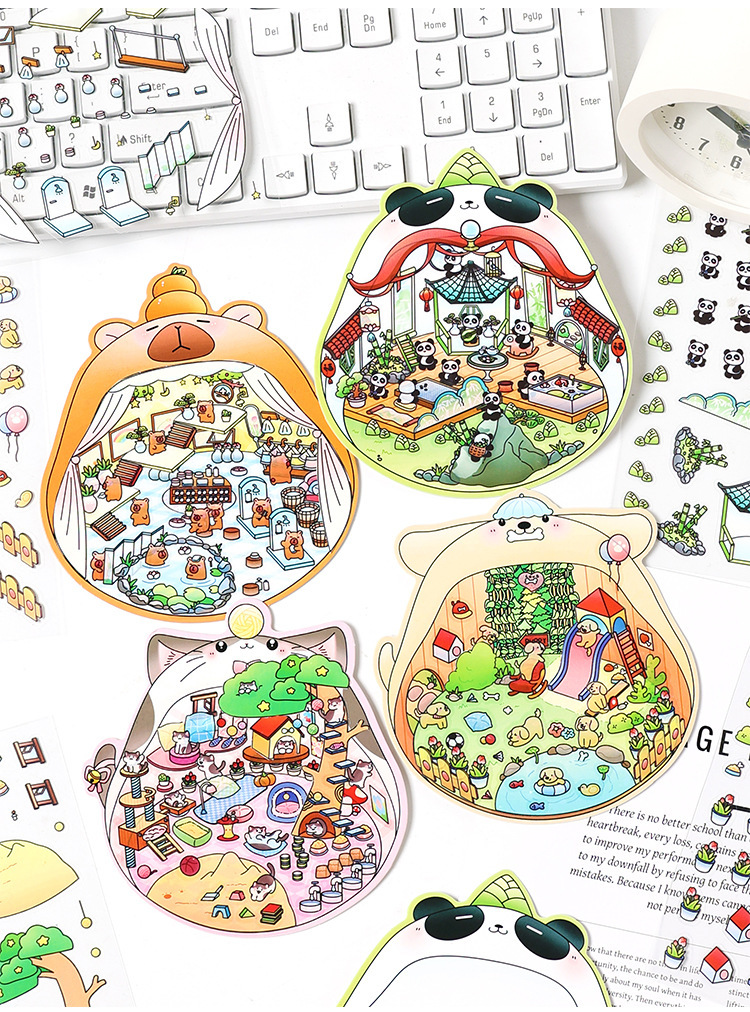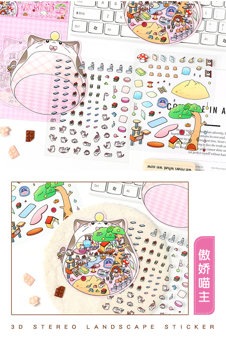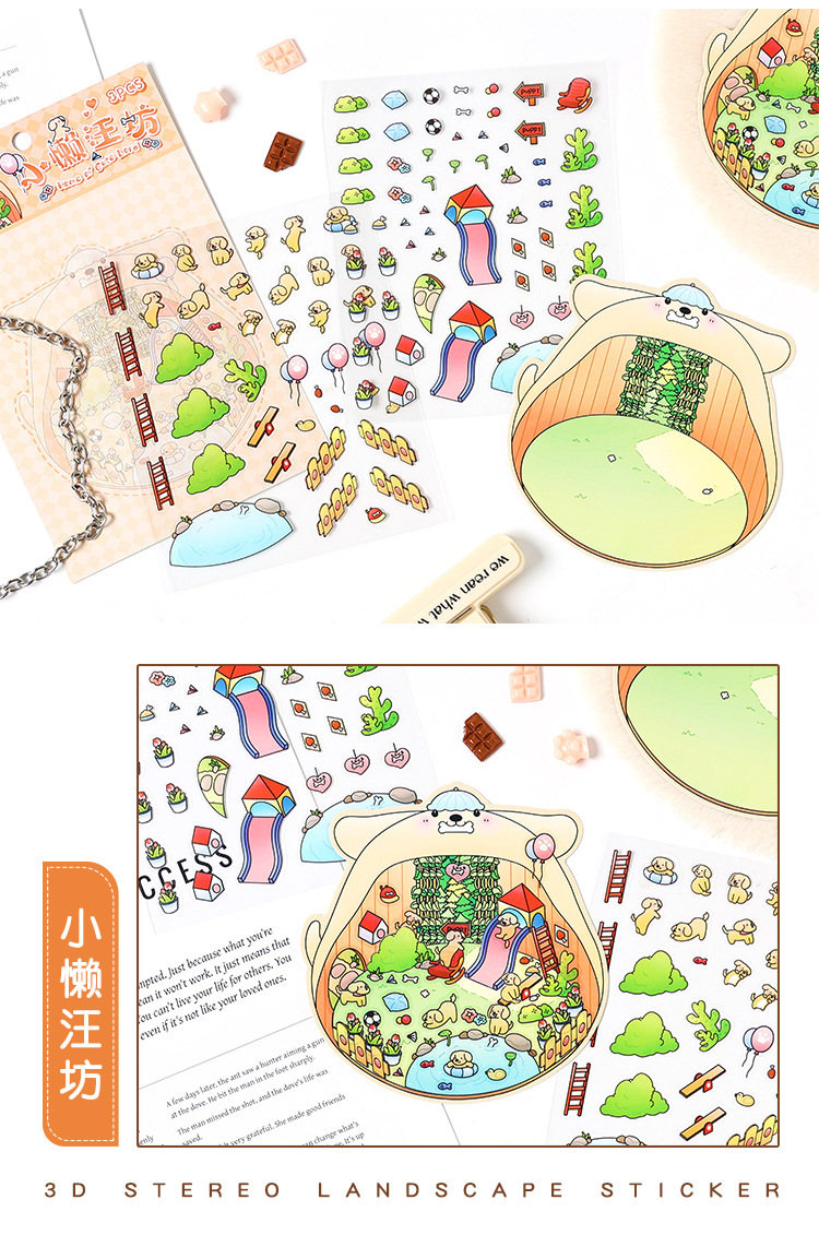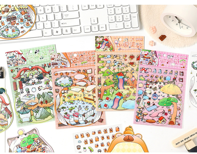 3D estereoscópico transparente pegatinas de mascotas impermeables para niños pegatinas paisajísticas de dibujos animados pegatinas de escena en miniatura