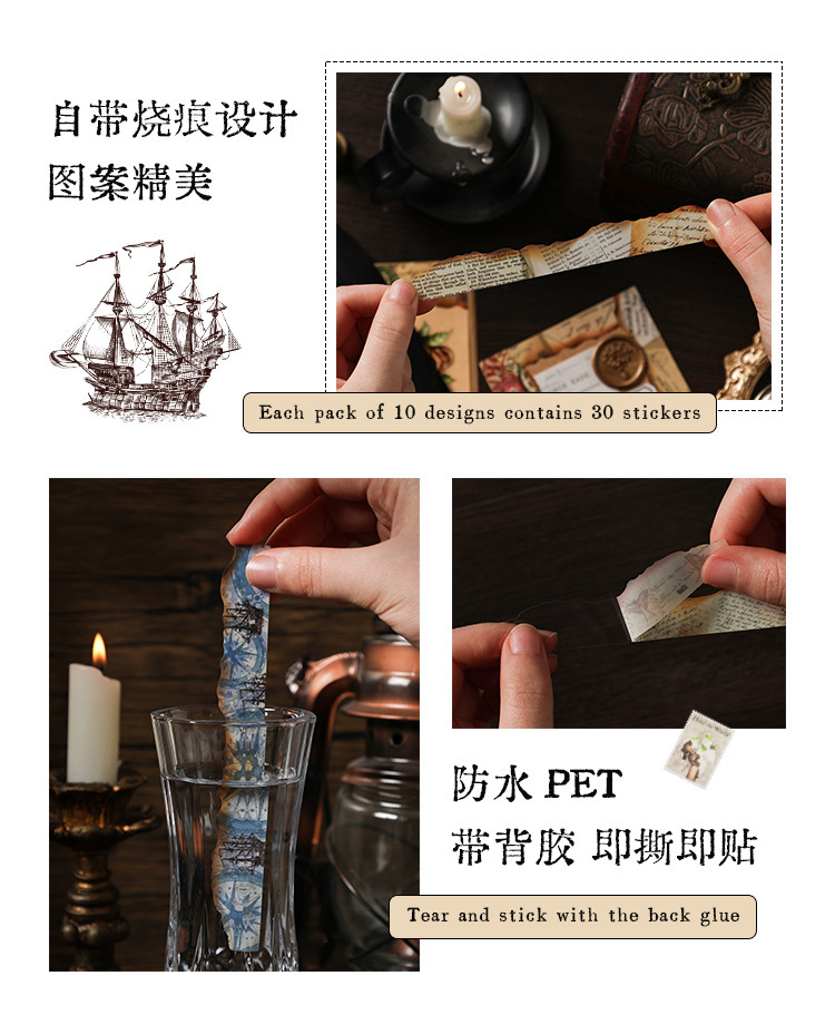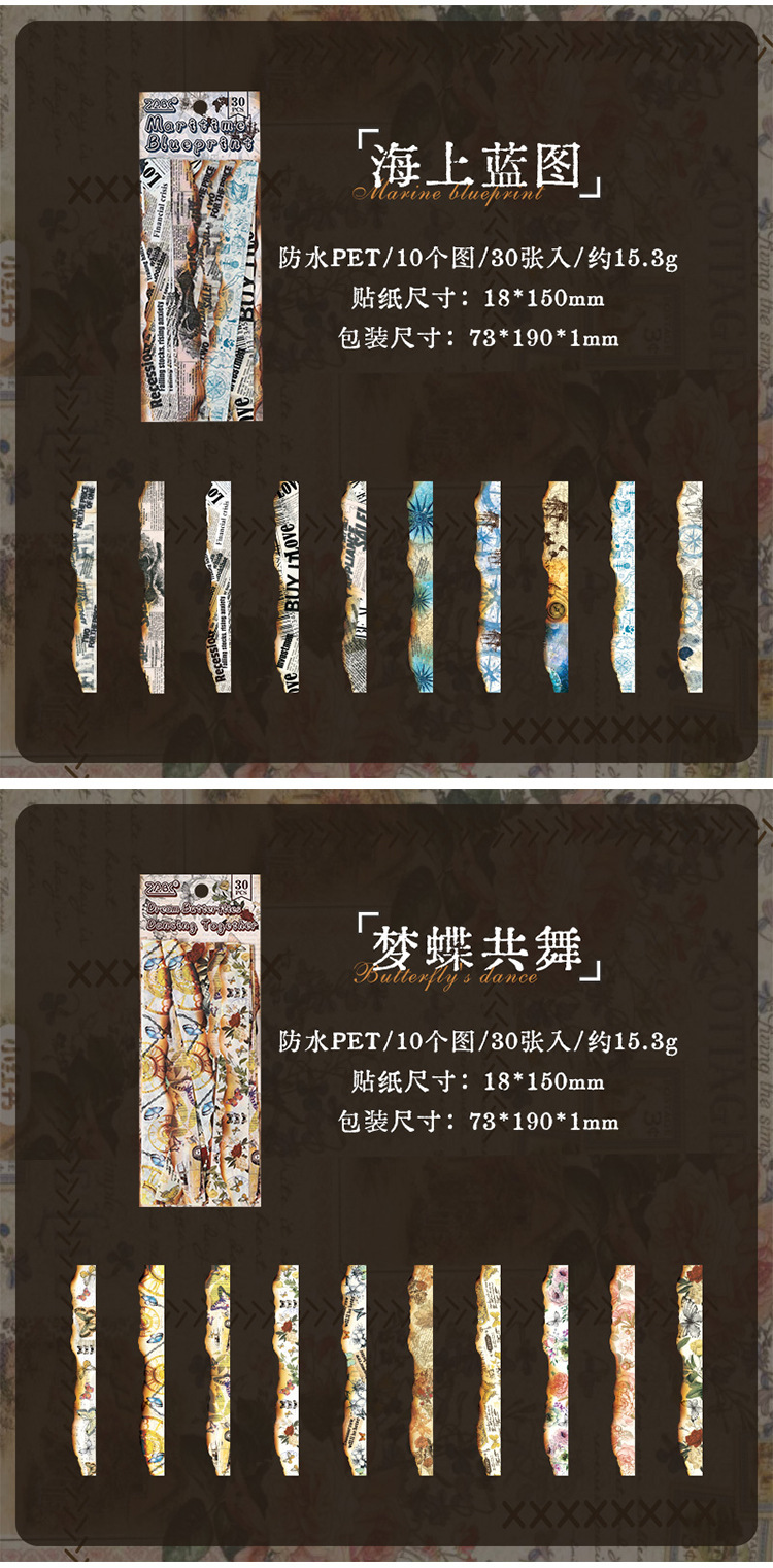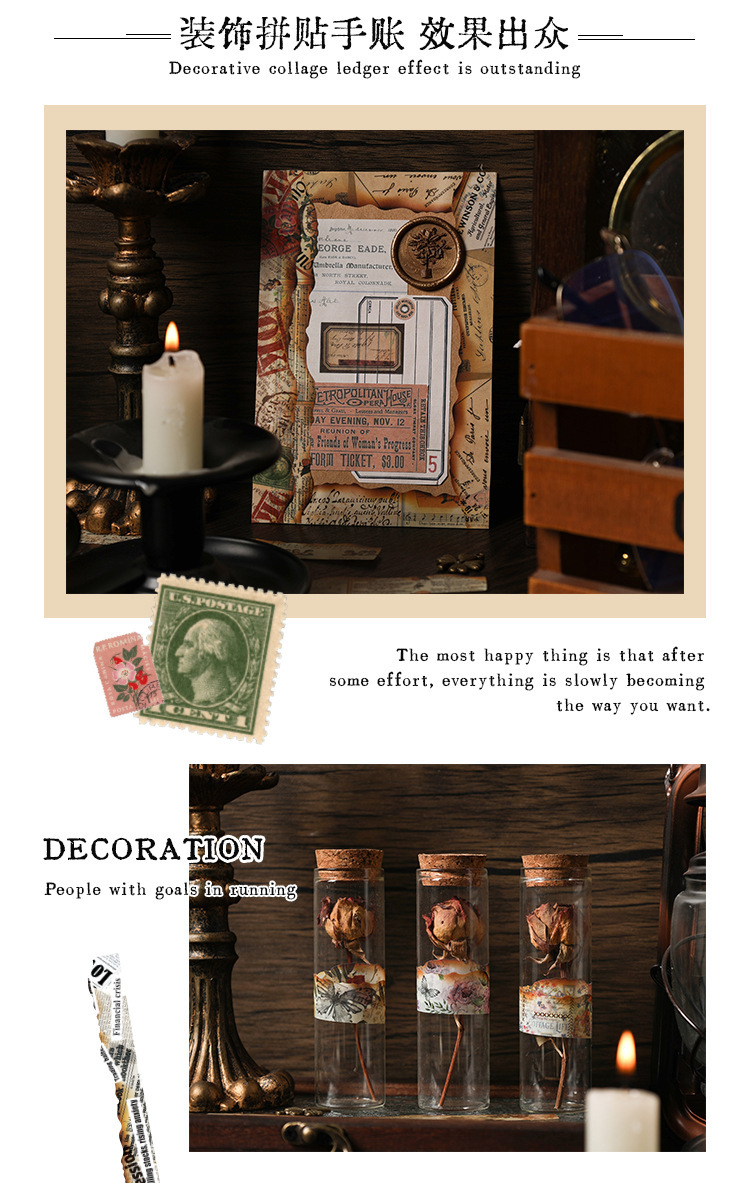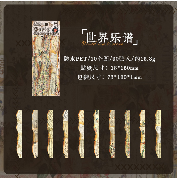 Diario manuscrito pegatinas impermeables pet diy pegatinas de diario retro transfronterizas hacer viejas tiras pegatinas decorativas artísticas