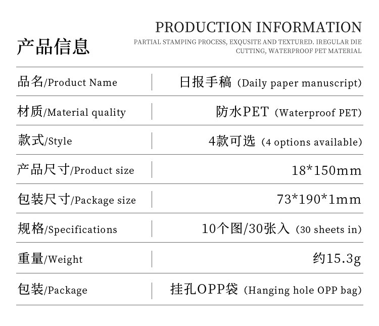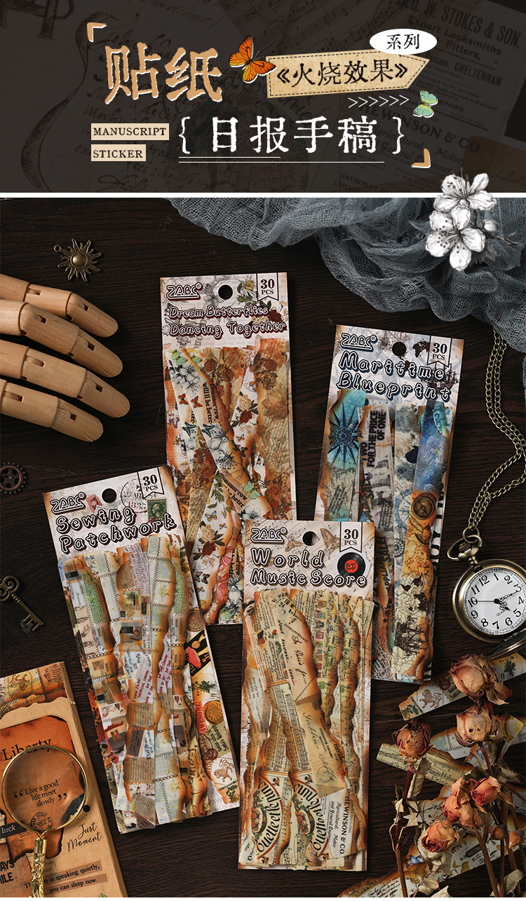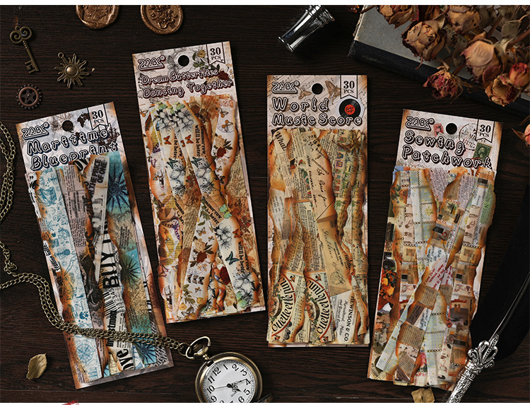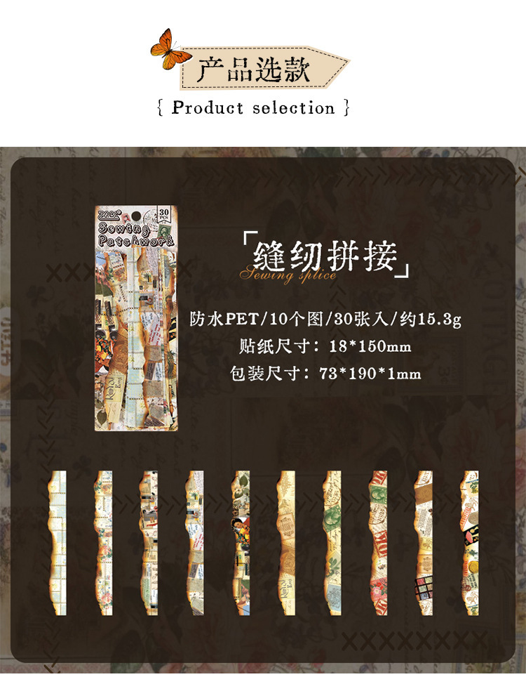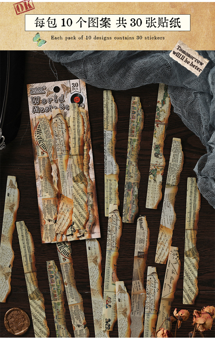 Diario manuscrito pegatinas impermeables pet diy pegatinas de diario retro transfronterizas hacer viejas tiras pegatinas decorativas artísticas
