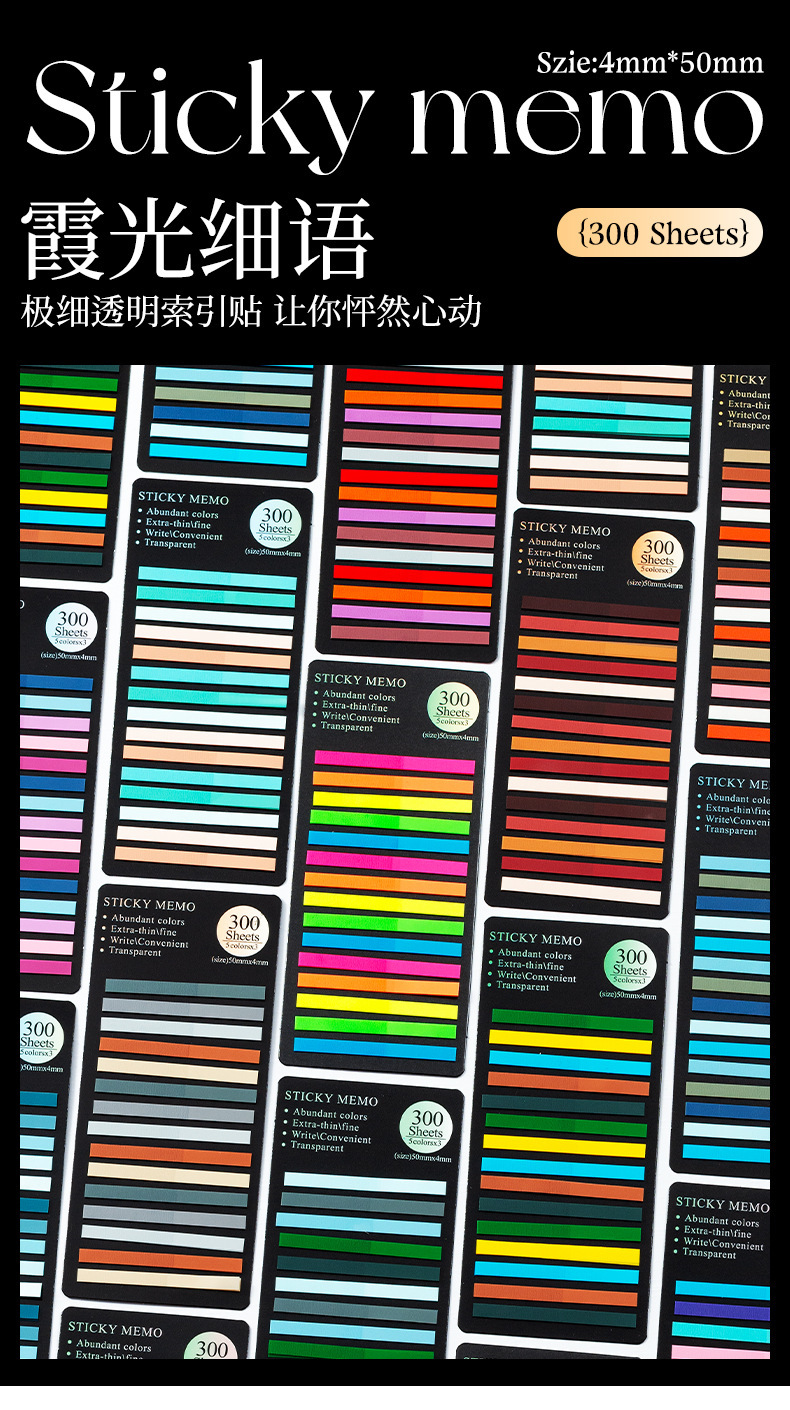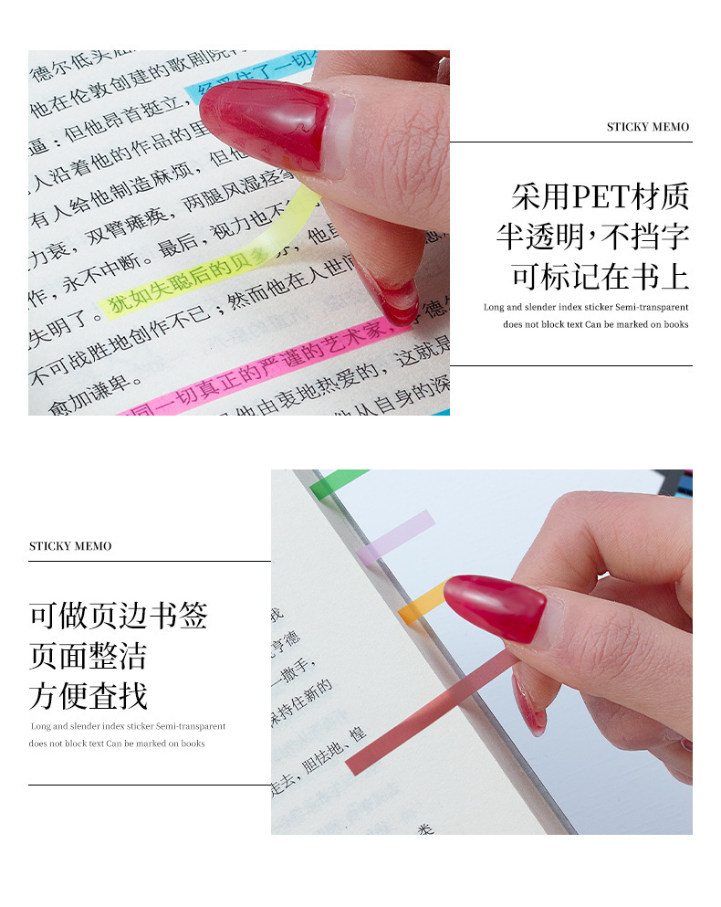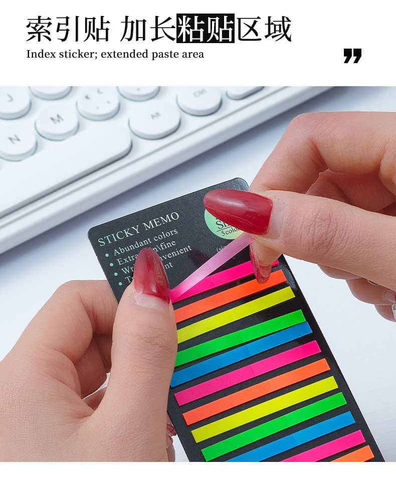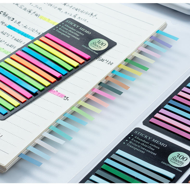 Glare susurro pastillas transparentes muy delgadas etiquetas de índice largas 300 etiquetas de índice de color fluorescente PET impermeable