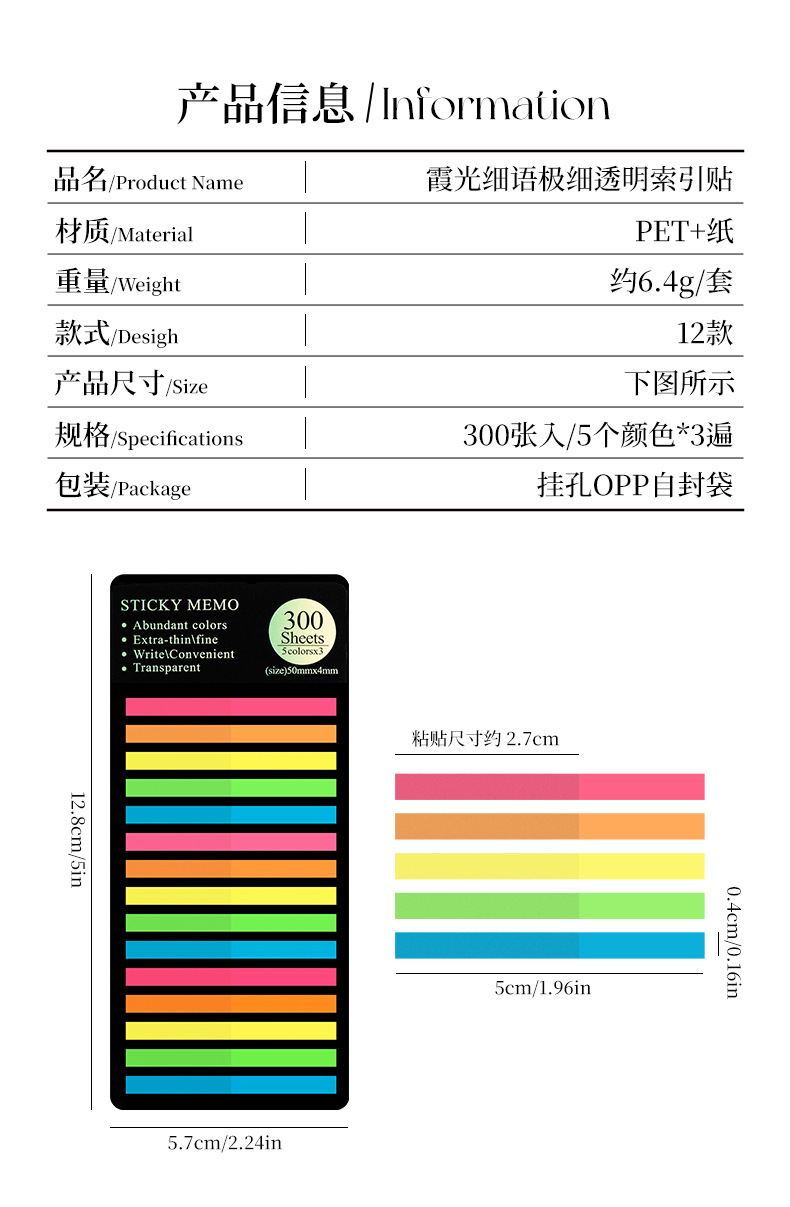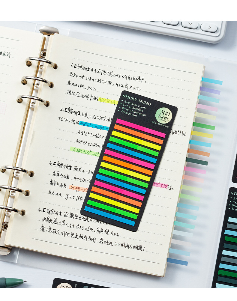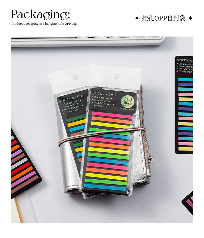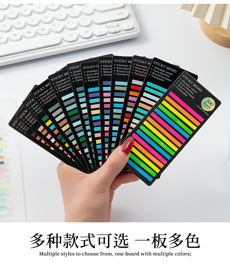 Glare susurro pastillas transparentes muy delgadas etiquetas de índice largas 300 etiquetas de índice de color fluorescente PET impermeable