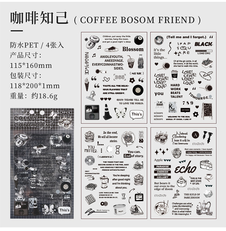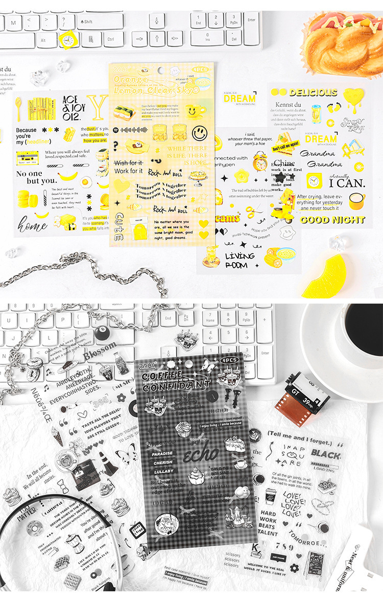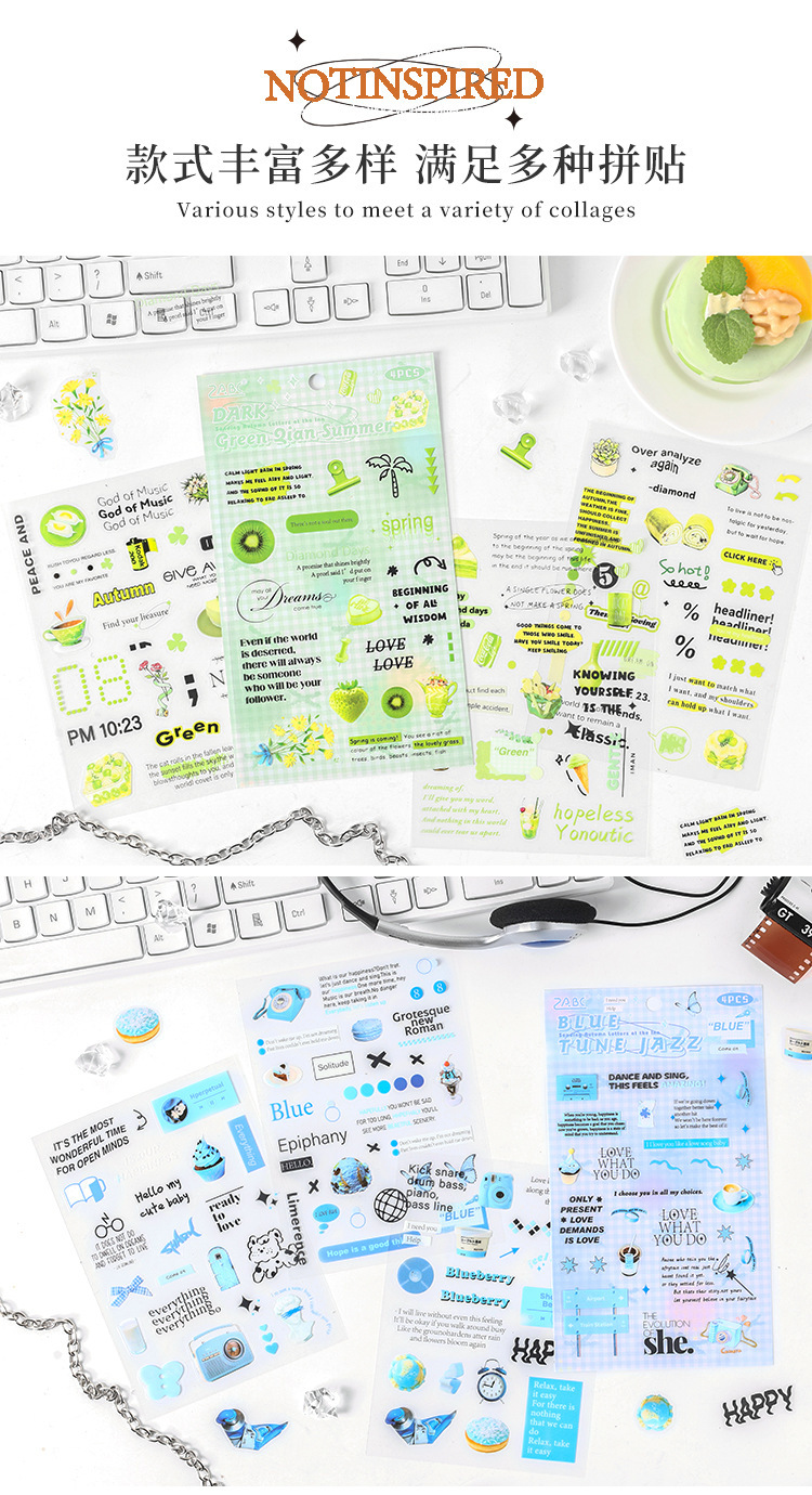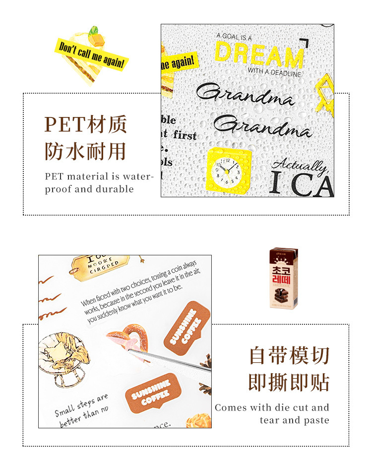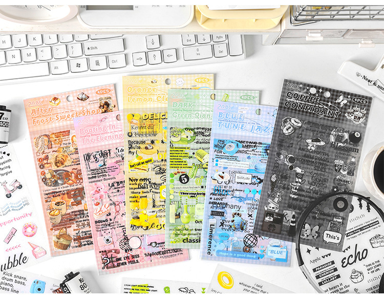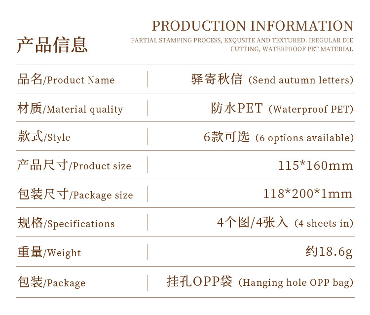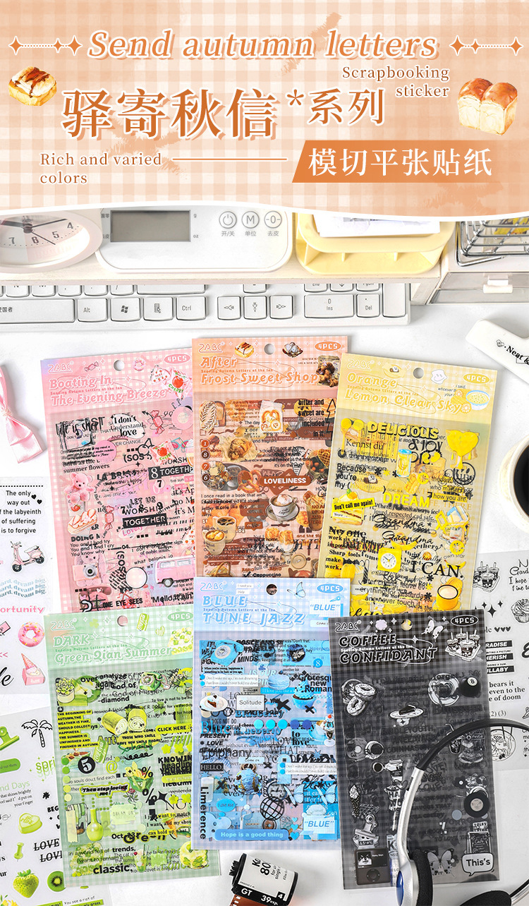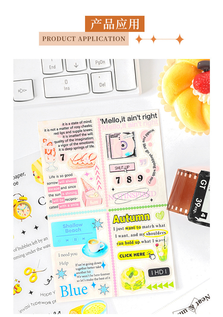 Carta de otoño transparente pegatinas impermeables para mascotas diy pegatinas de diario de contabilidad de mano pegatinas de objetos pequeños en inglés retro transfronterizos
