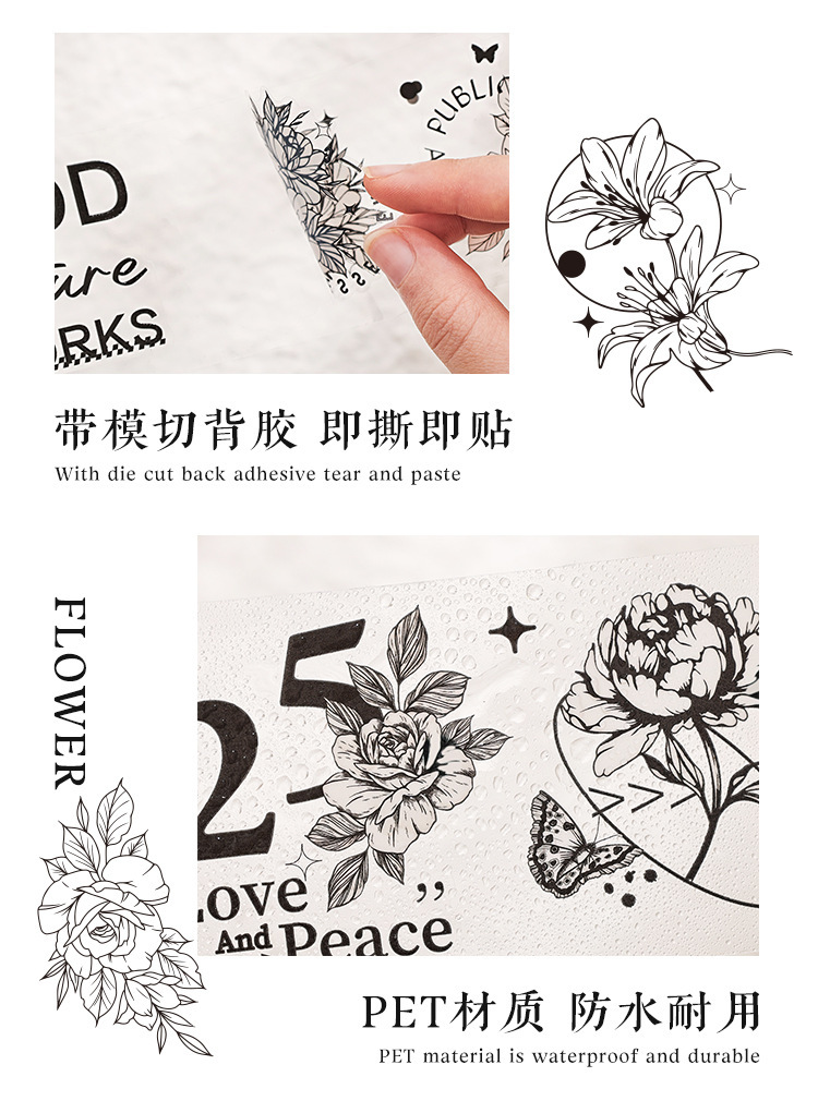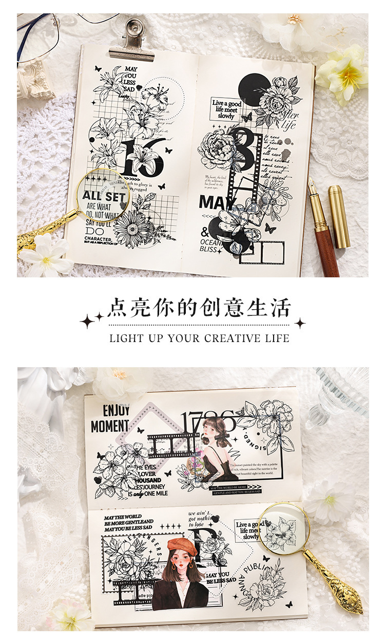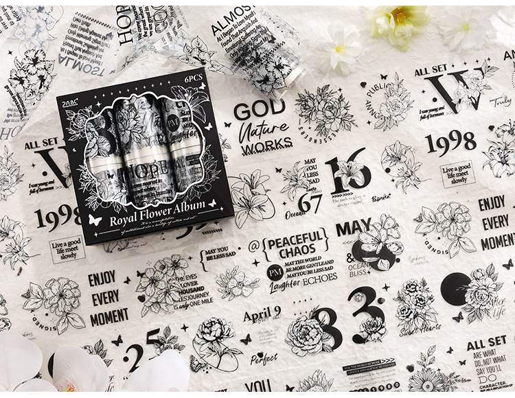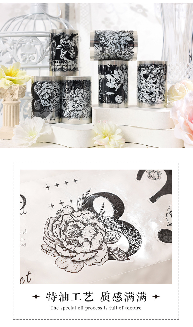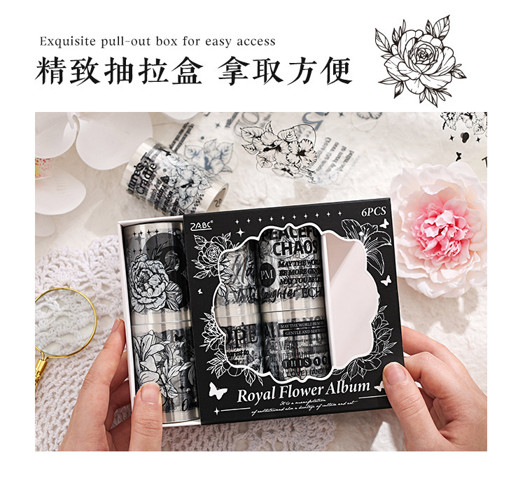Palacio floral transparente impermeable pet cinta adhesiva caja diy libro de mano diario pegatinas retro transfronterizas flores pegatinas británicas