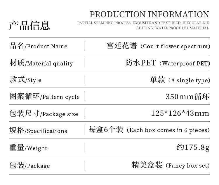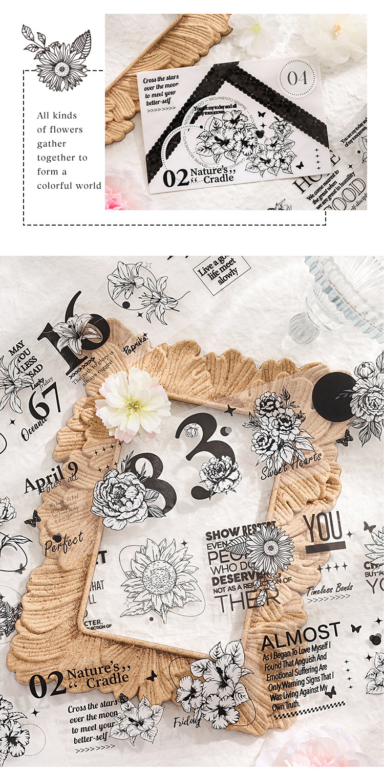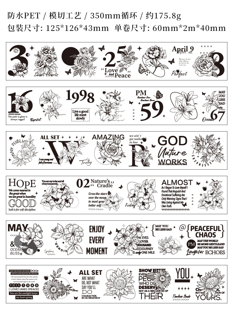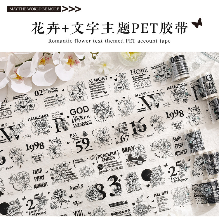 Palacio floral transparente impermeable pet cinta adhesiva caja diy libro de mano diario pegatinas retro transfronterizas flores pegatinas británicas